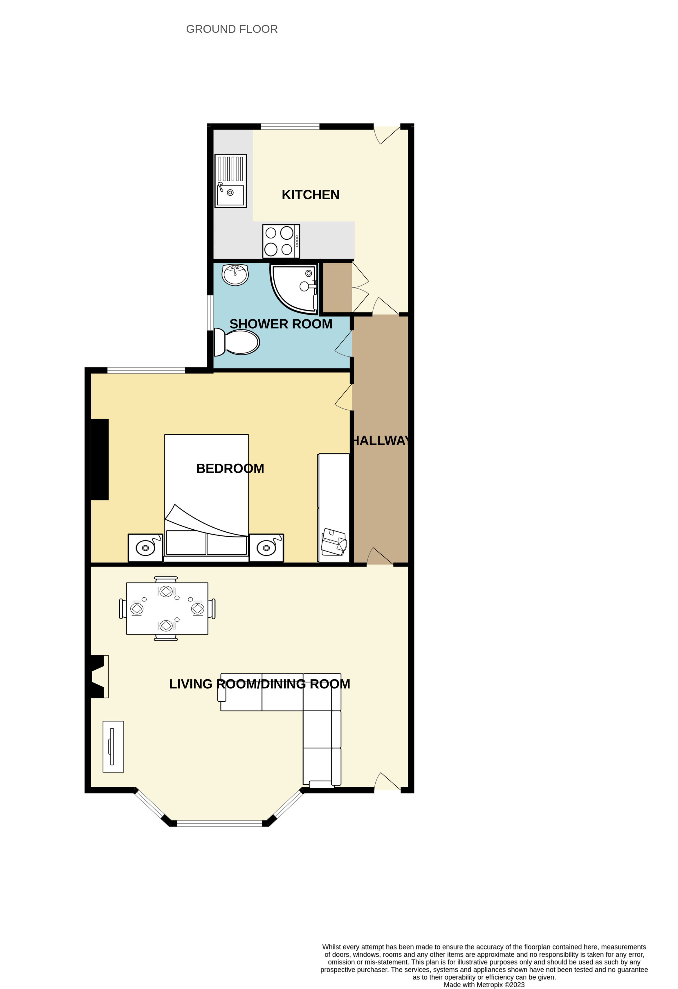 As you enter the property via your own private entrance, you are greeted by the spacious living room/dining room with its double glazed bay window to the front allowing a lot of natural light into the room and a feature fireplace with surround. From here, you lead into the inner hallway with access into the bedroom, shower room and kitchen.