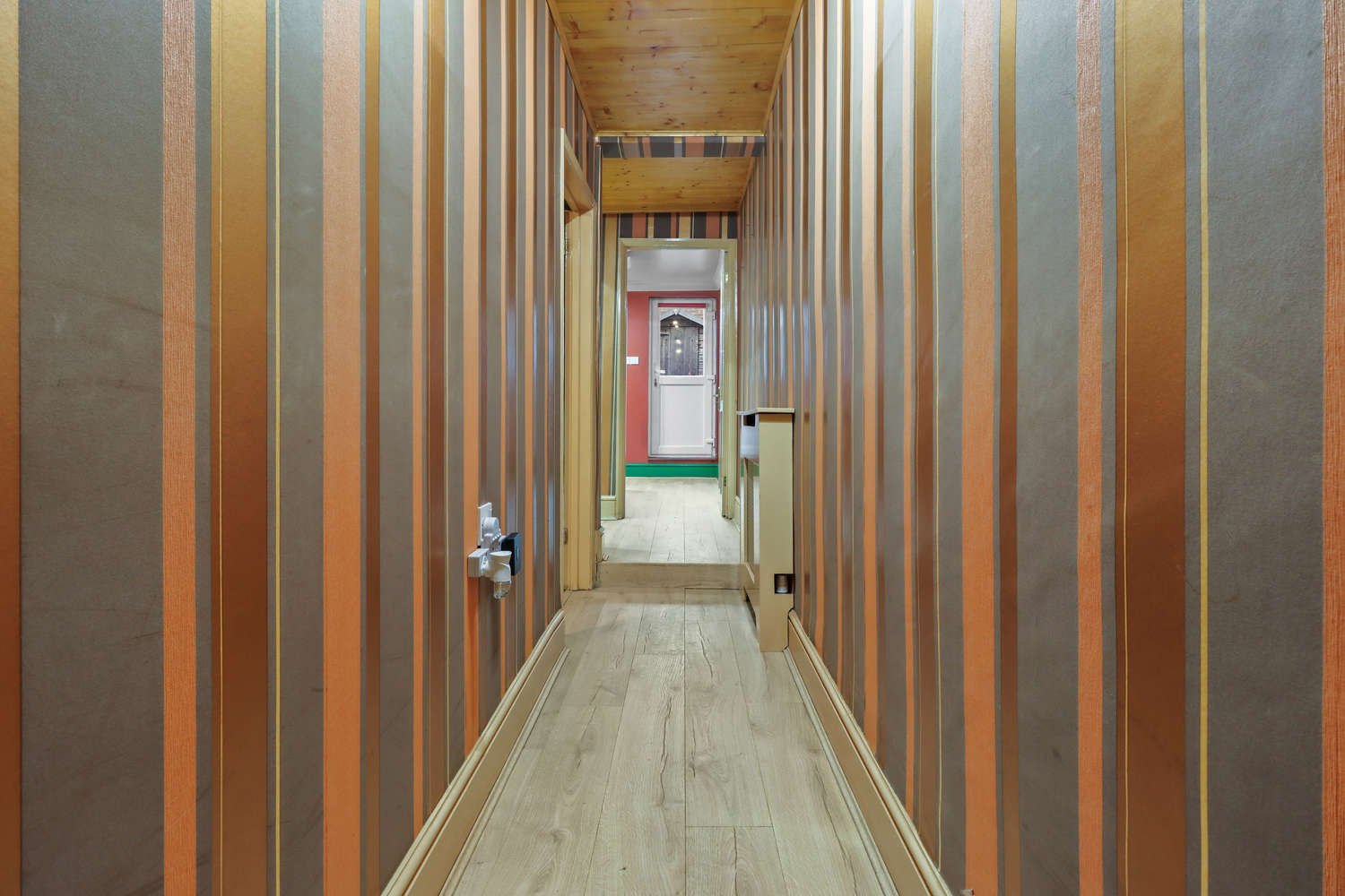 The kitchen is at the back and offers direct access into the private garden. The kitchen is fitted with a range of wall mounted and base units with work surface over. It comes with a stainless steel single drainer sink unit with mixer taps, built in electric oven with four ring electric hob and space for washing machine and under work surface fridge.