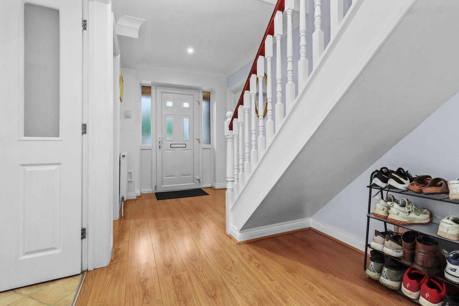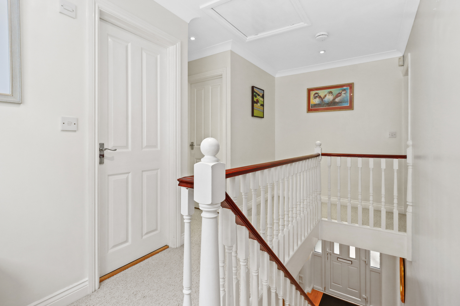Leading up the stairs to the first floor landing is four bedrooms and the family bathroom. Bedroom one is double aspect with fitted bedroom suite and access to the ensuite shower room which is fitted in a three piece suite. Bedroom two also benefits from a double aspect outlook. The modern bathroom is fitted in a three piece white suite.