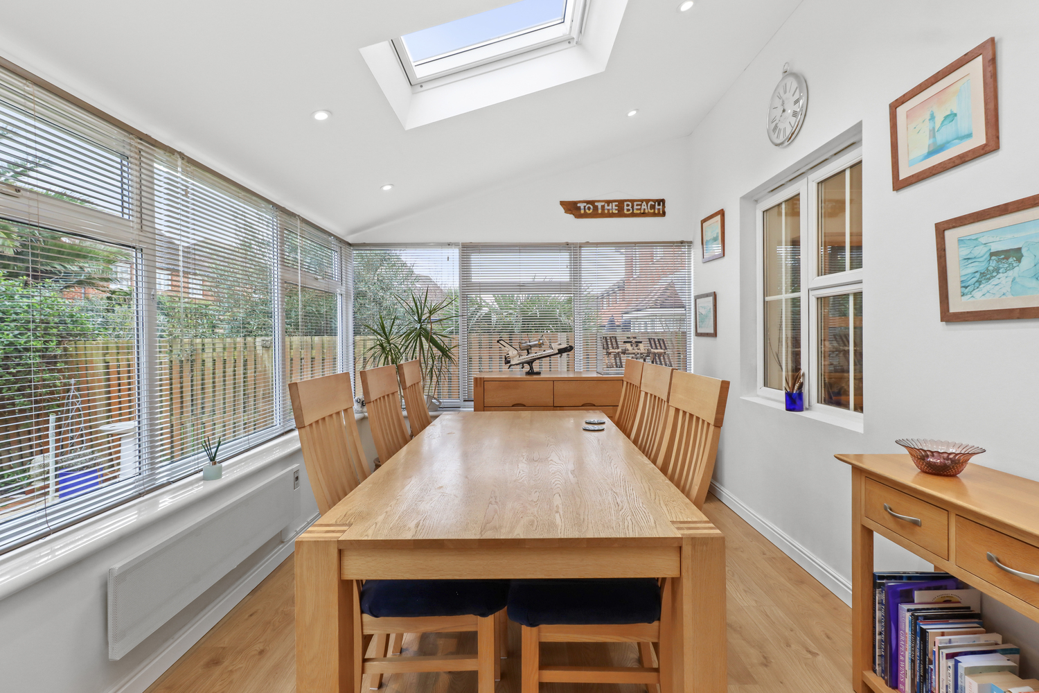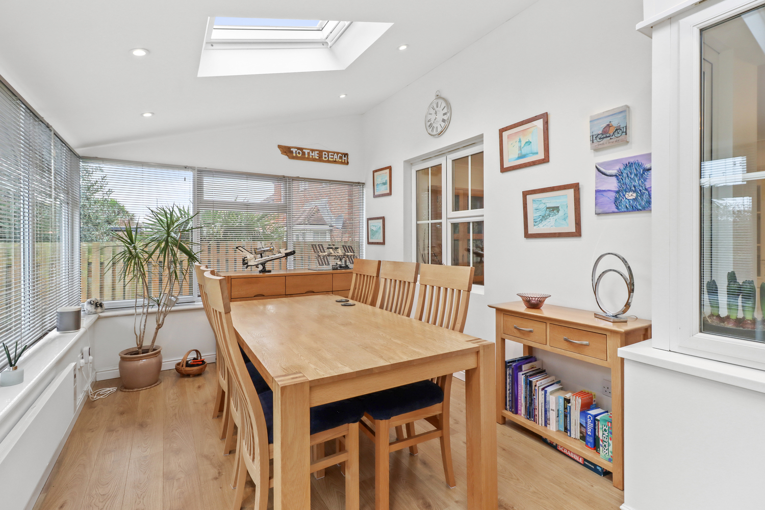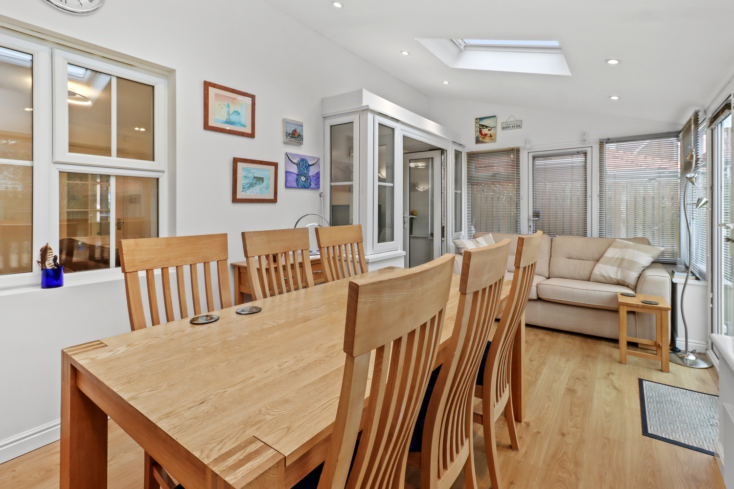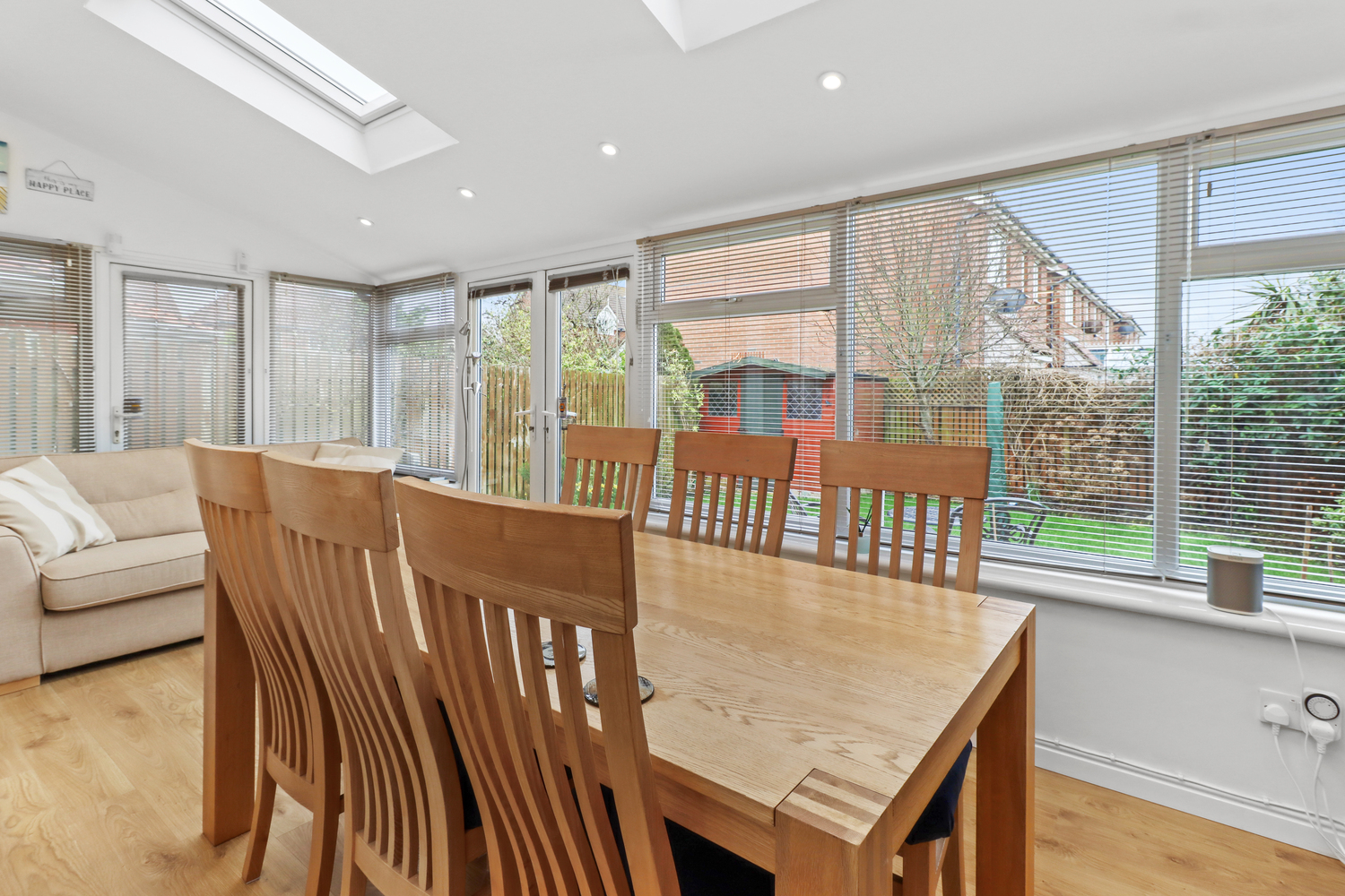 The spacious living room/dining room which offers plenty of space for living room furniture and a dining room table with a set of double glazed double doors through to the delightful conservatory with velux style windows and direct access to the rear garden.