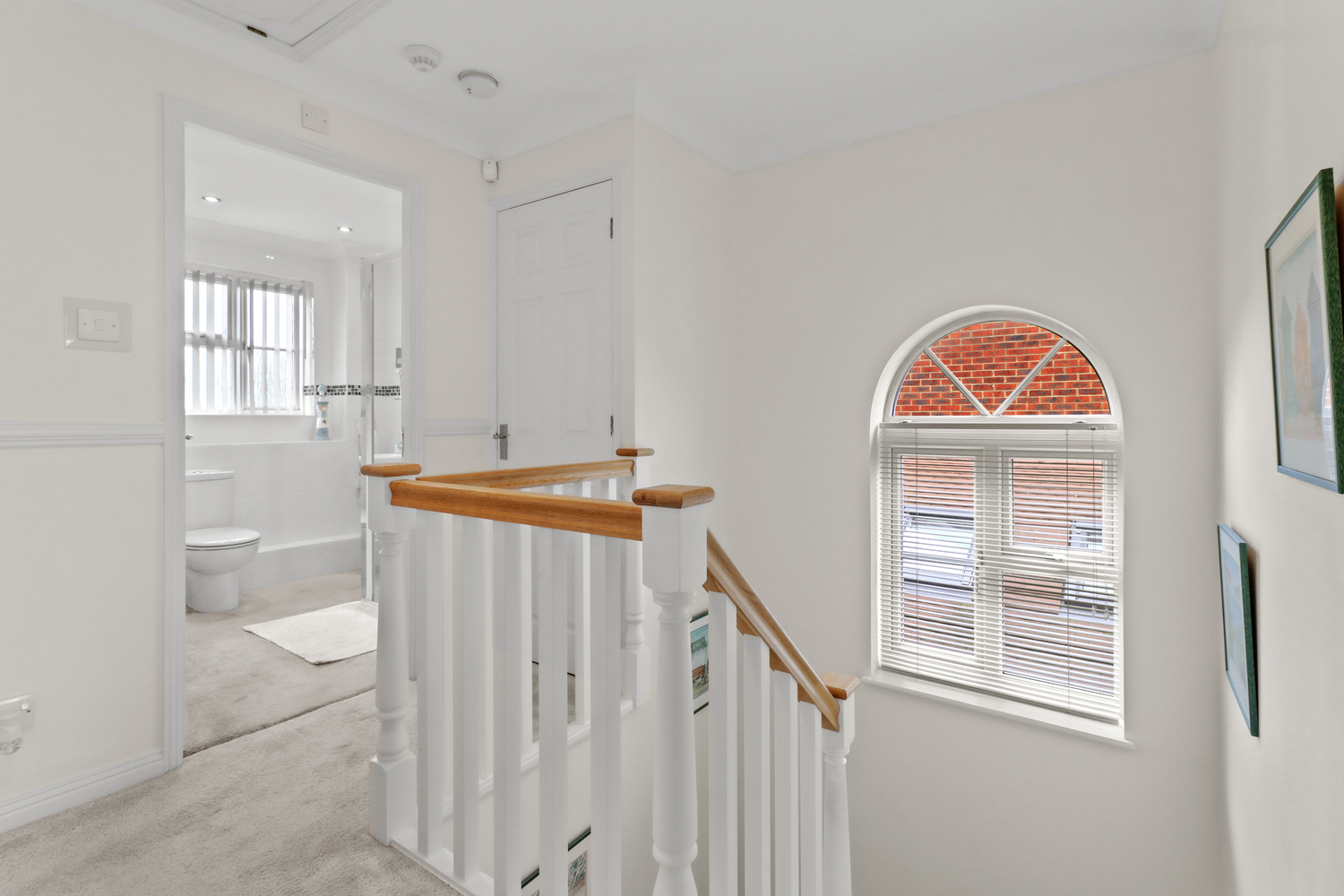 Leading up the stairs to the first floor landing are three bedrooms and the family shower room. The master bedroom is rear facing with built in wardrobe and benefits from an ensuite shower room. Bedroom two with a built in wardrobe and bedroom three are both front facing. The modern family shower room is fitted in a three piece suite.