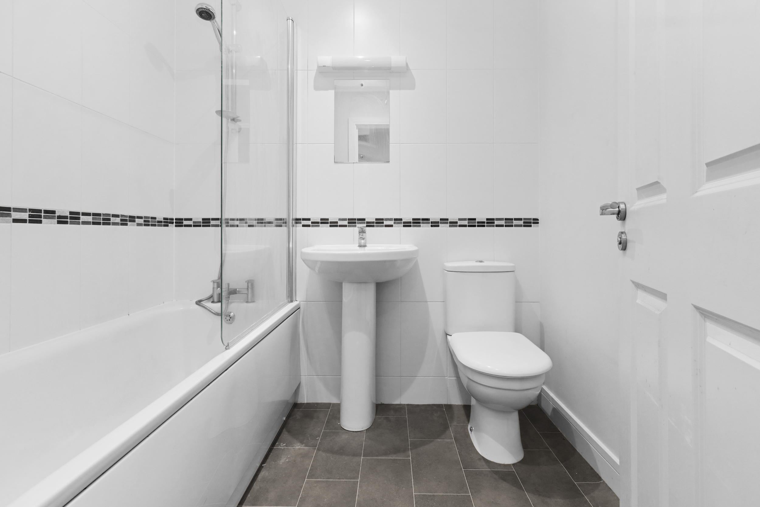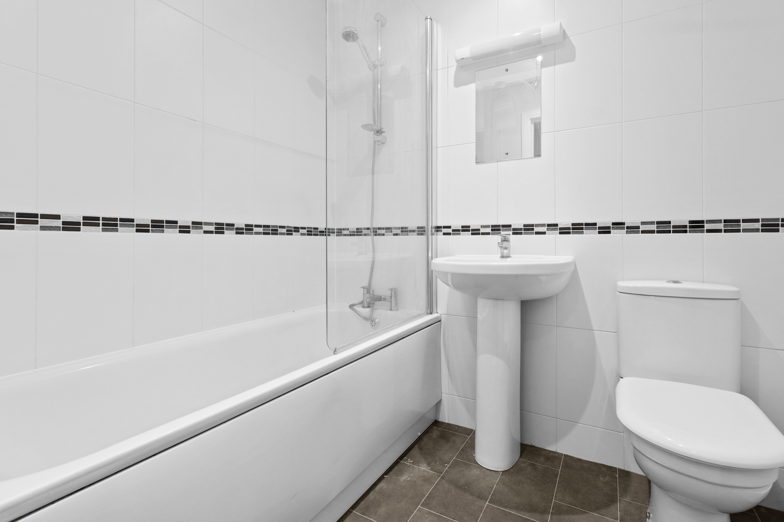 The modern bathroom is fitted with a three piece white suite comprising of a panelled enclosed bath, close coupled wc and a wash hand basin.