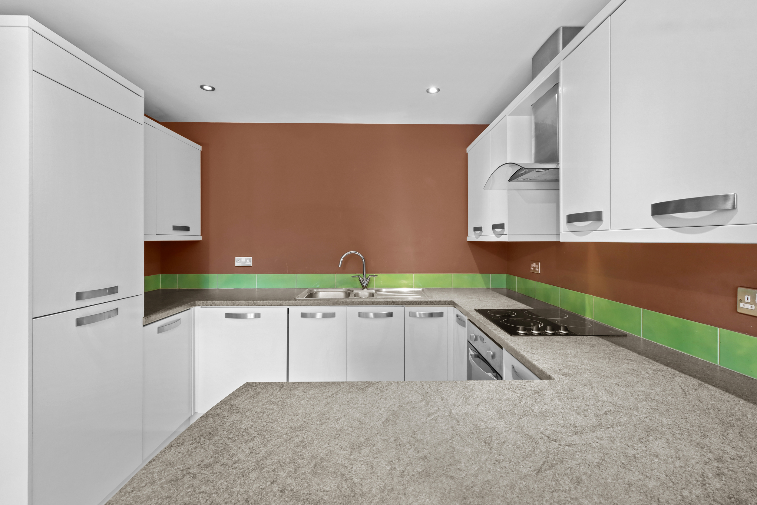 The modern kitchen is fitted with a range of wall mounted and matching base units with work surface over and comes complete with a one a half bowl stainless steel single drainer sink unit with mixer taps, built in electric oven with a four ring electric hob and extractor hood over along with an integrated fridge, freezer and washing machine. There is also a breakfast area providing additional area for eating or entertaining.