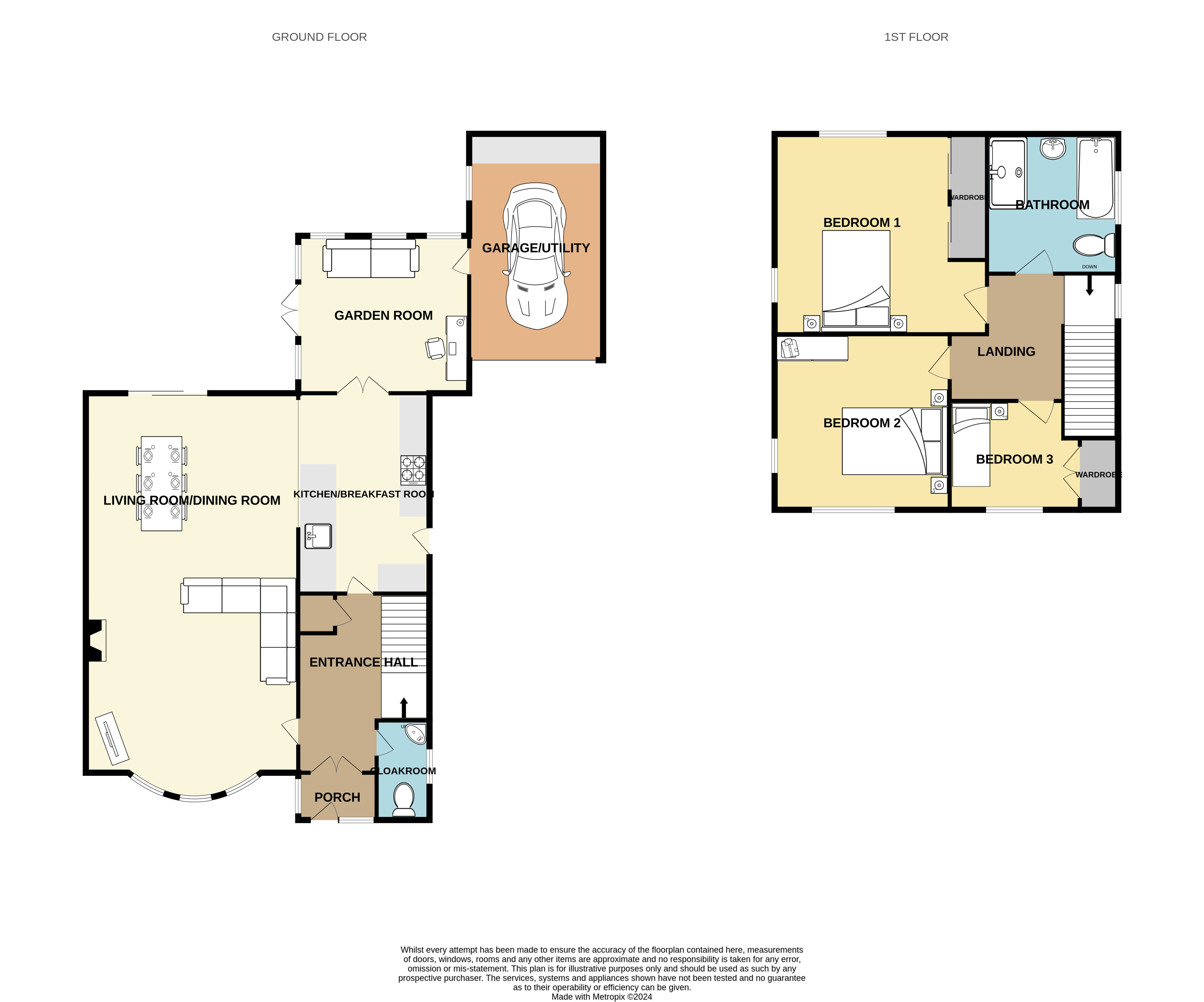 Approaching the entrance porch which leads into the welcoming entrance hall with access to the ground floor accommodation and stairs leading to the first floor landing. The cloakroom is fitted with a modern two piece suite.