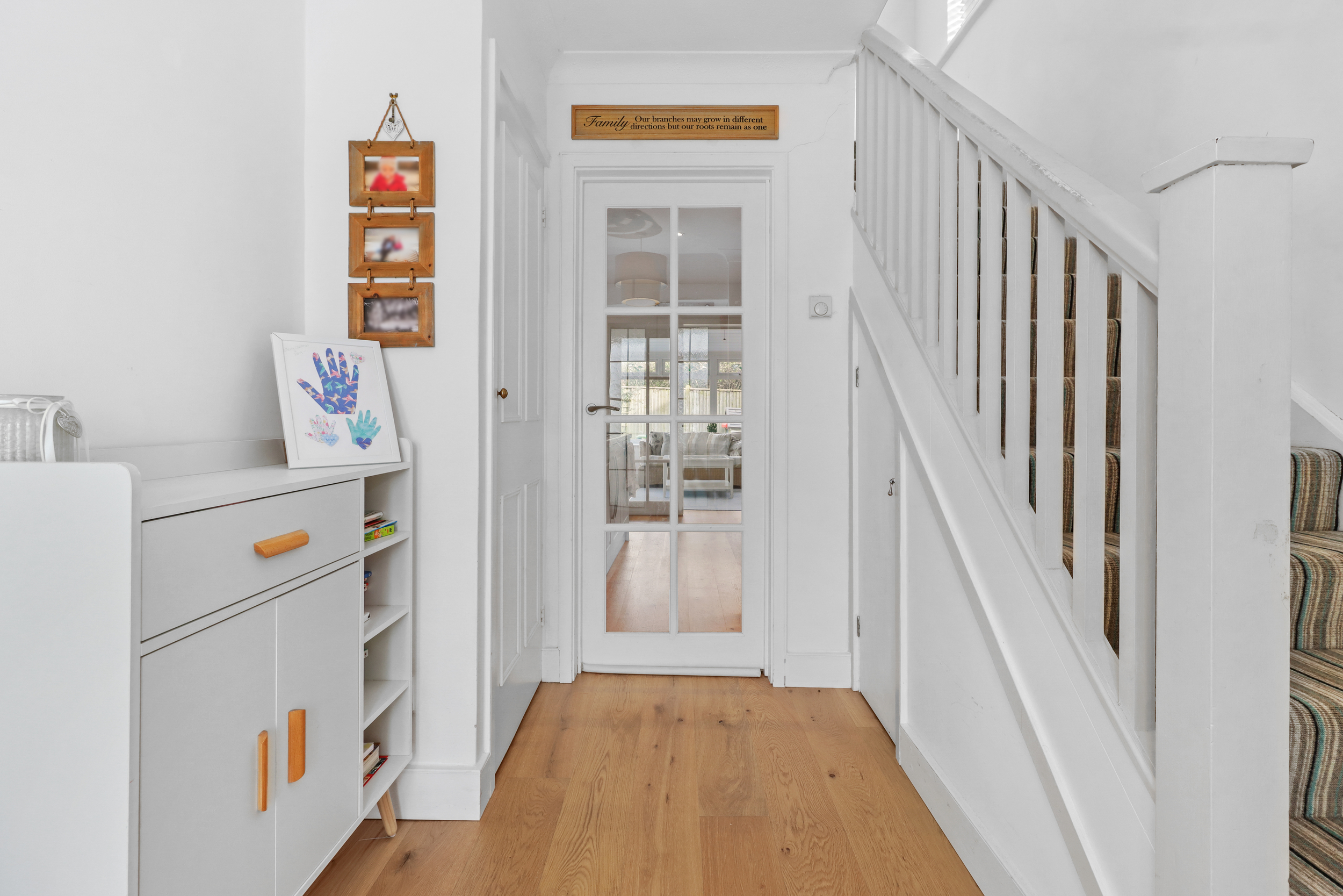 Leading up the stairs to the first floor landing is three bedrooms and the family bathroom. Bedroom one is rear facing with built in wardrobes whilst bedroom two and three are front facing. The modern bathroom has underfloor heating and is fitted in a four piece suite with a panelled enclosed bath and walk in shower cubicle.