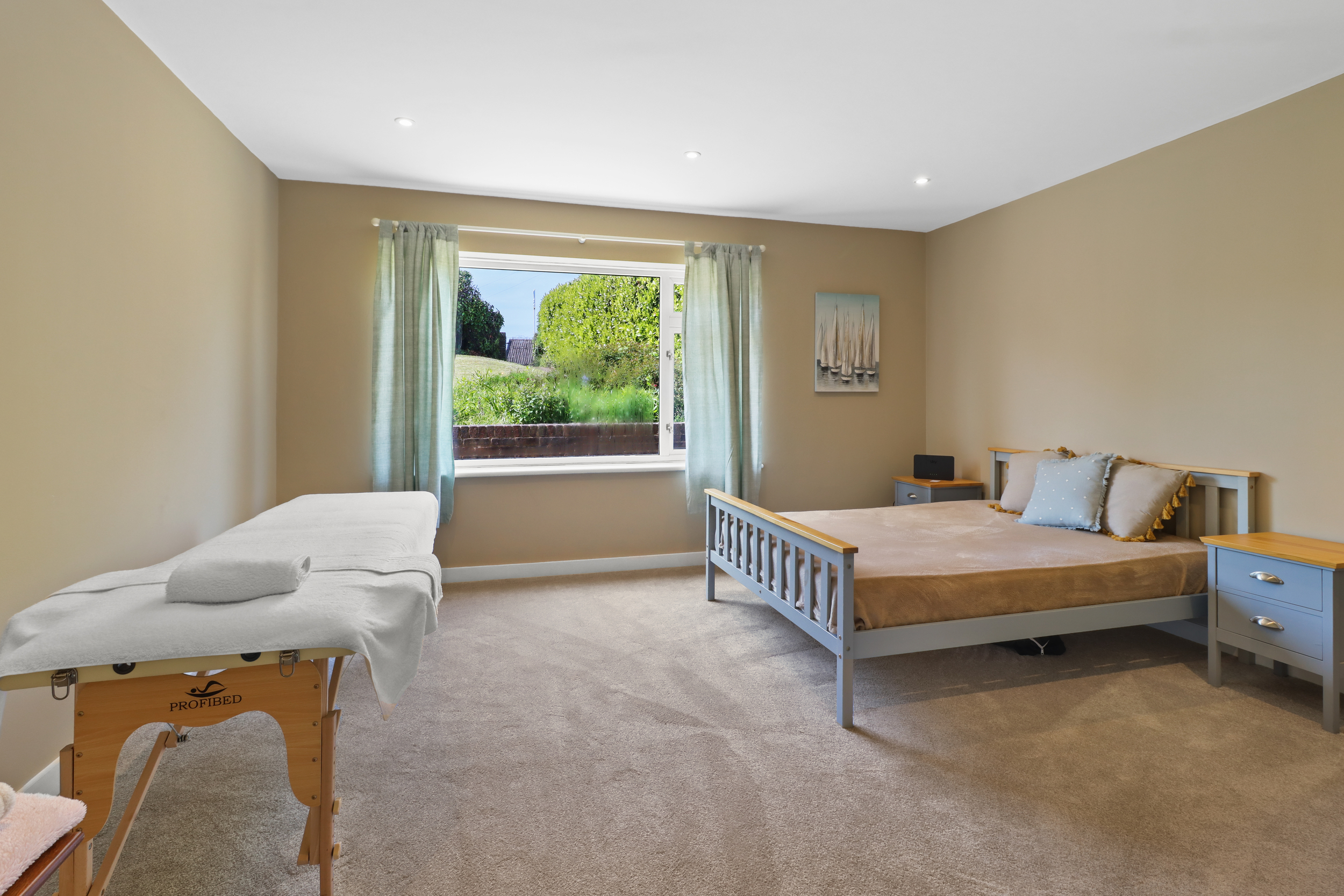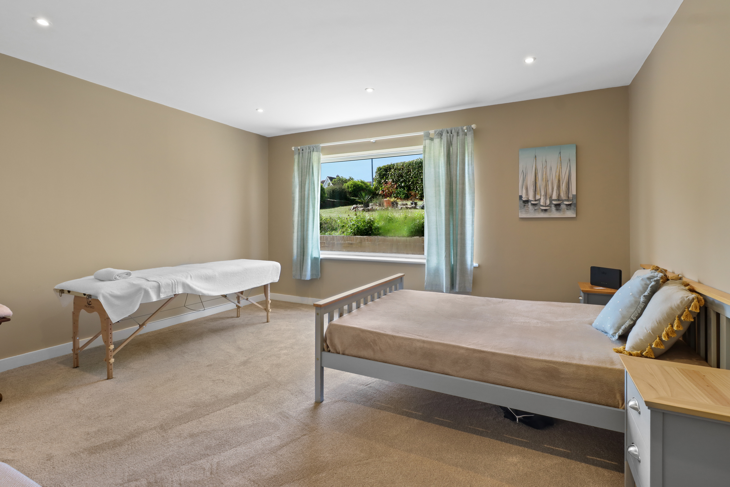 Bedroom four, which offers convenience and flexibility for guests or household members seeking privacy and comfort. Adjacent is the his and hers bathroom, a luxurious retreat featuring contemporary fixtures and finishes, providing the ultimate indulgence for relaxation and rejuvenation.