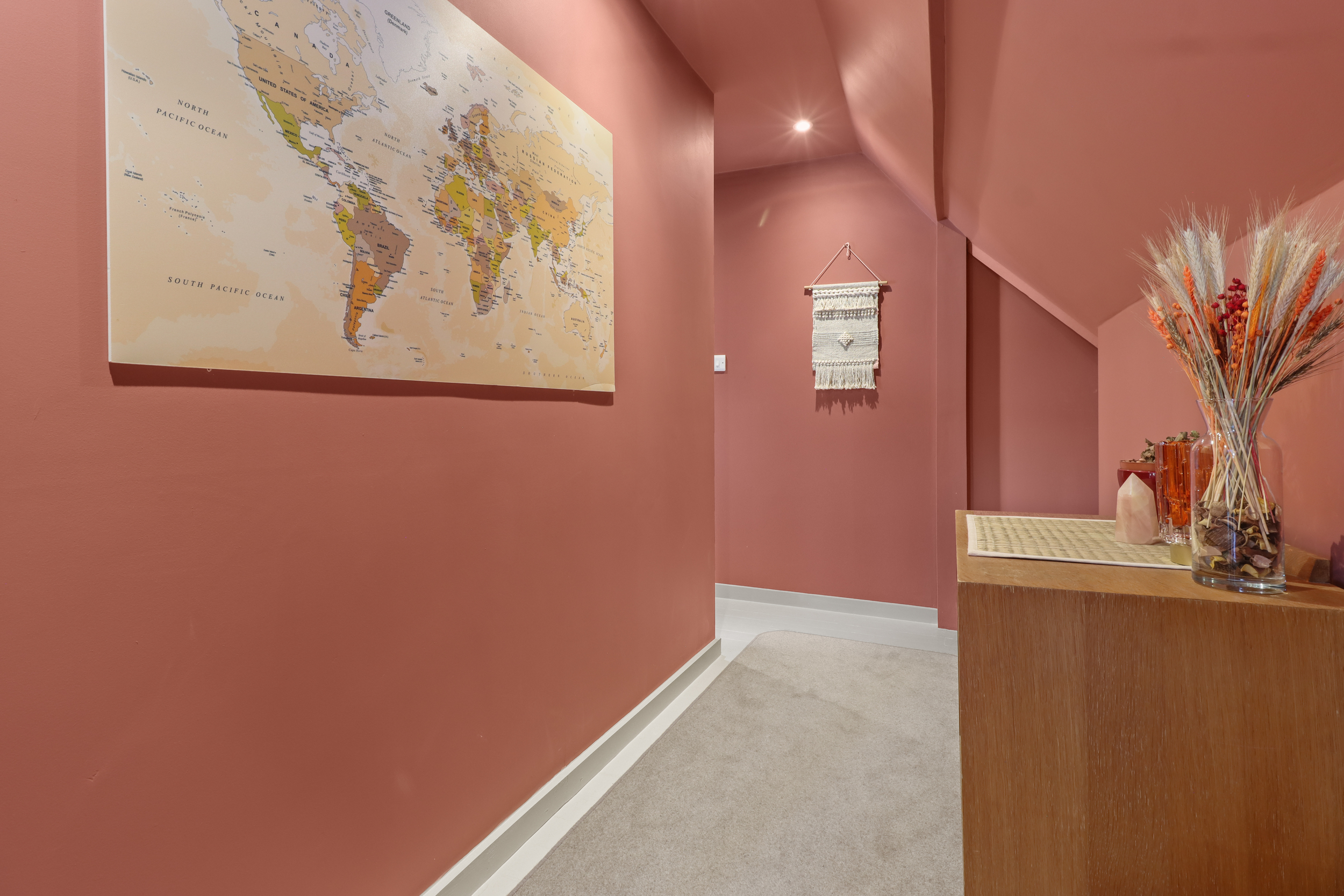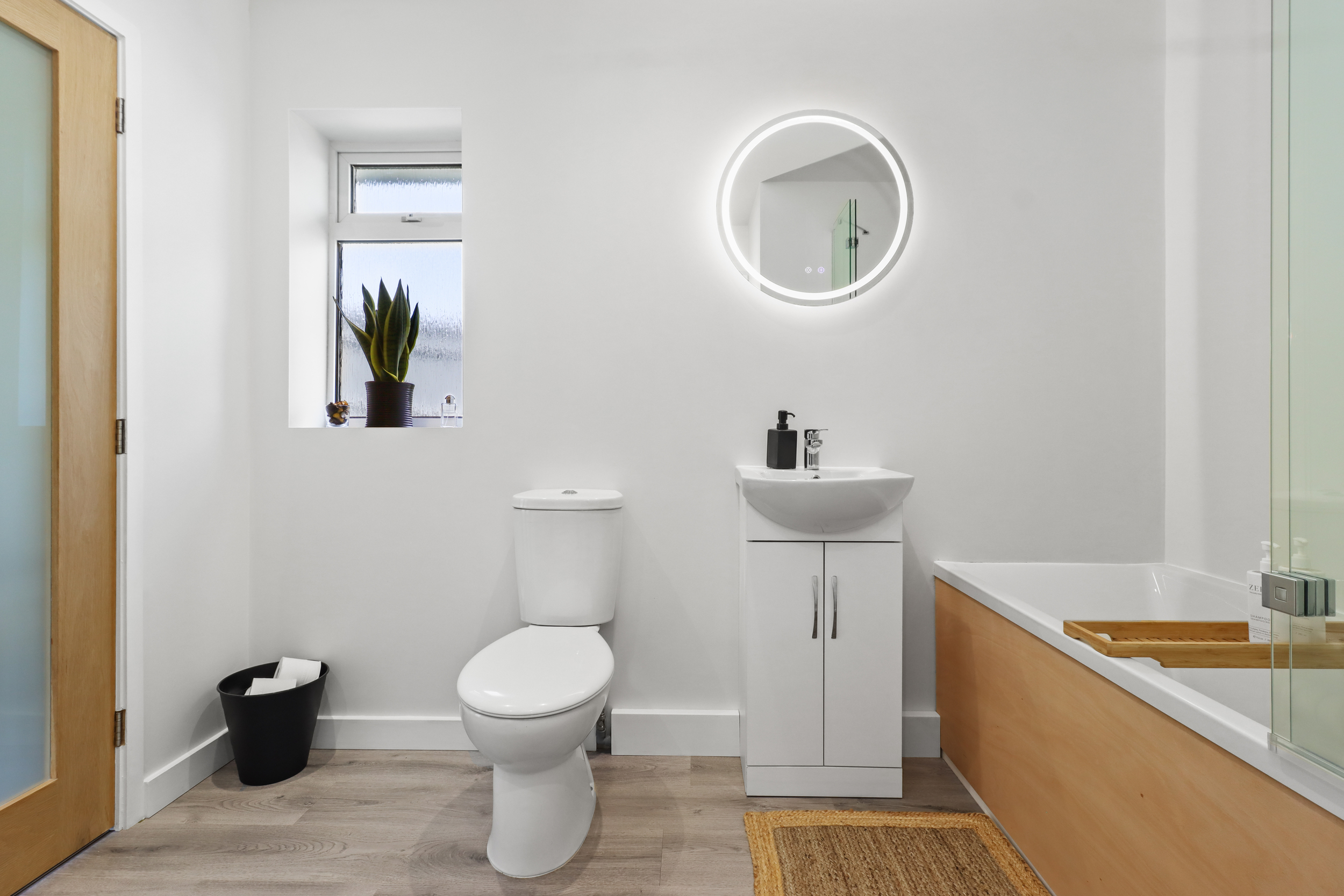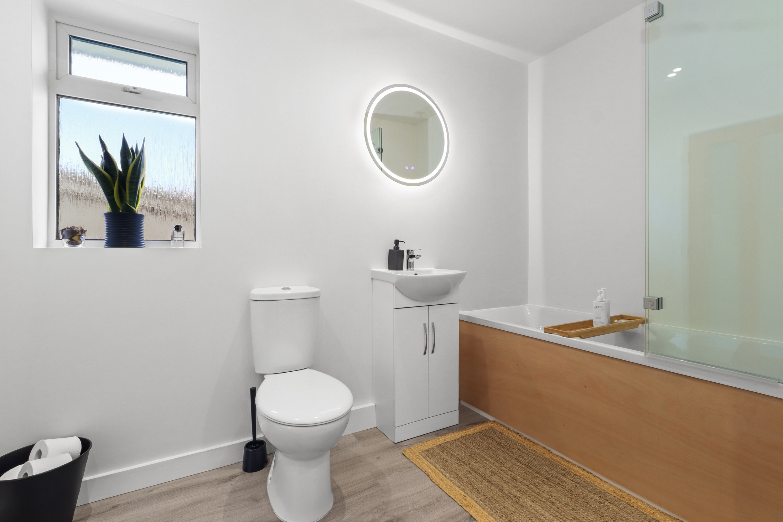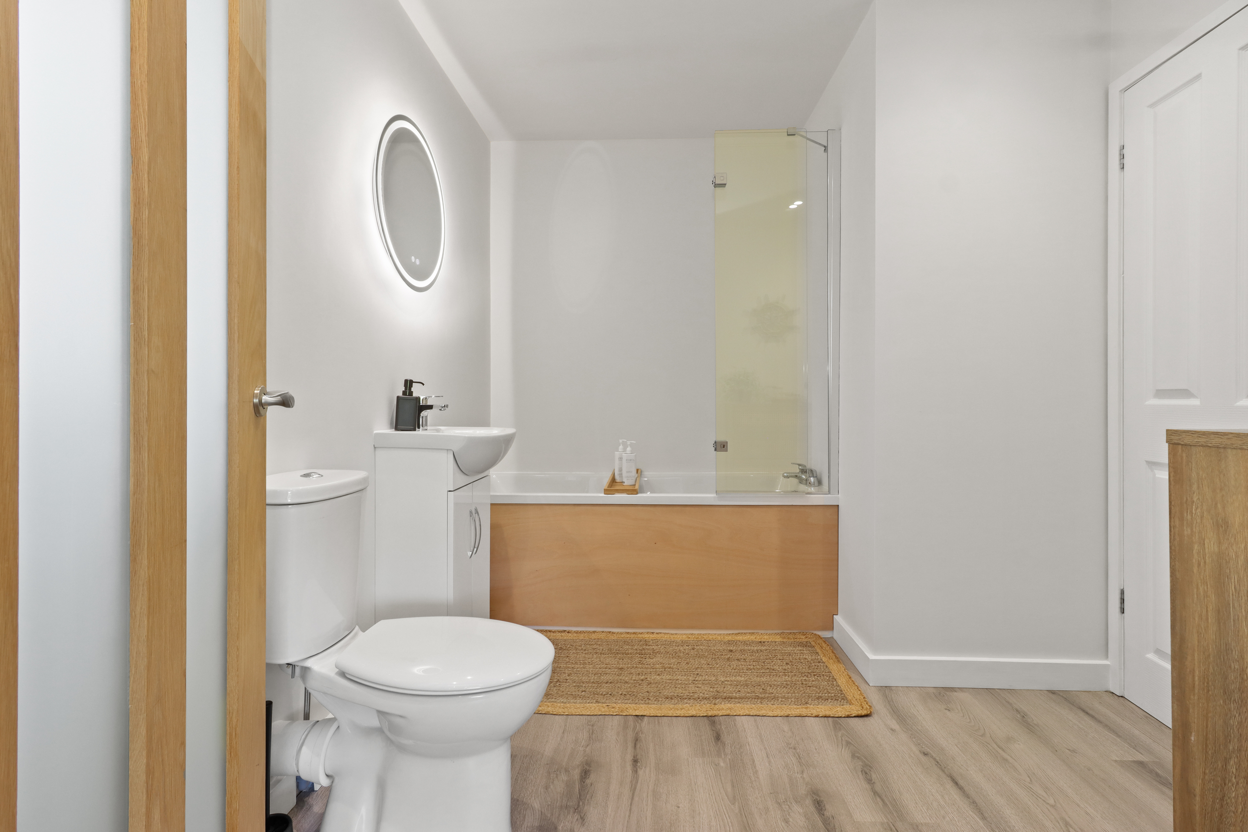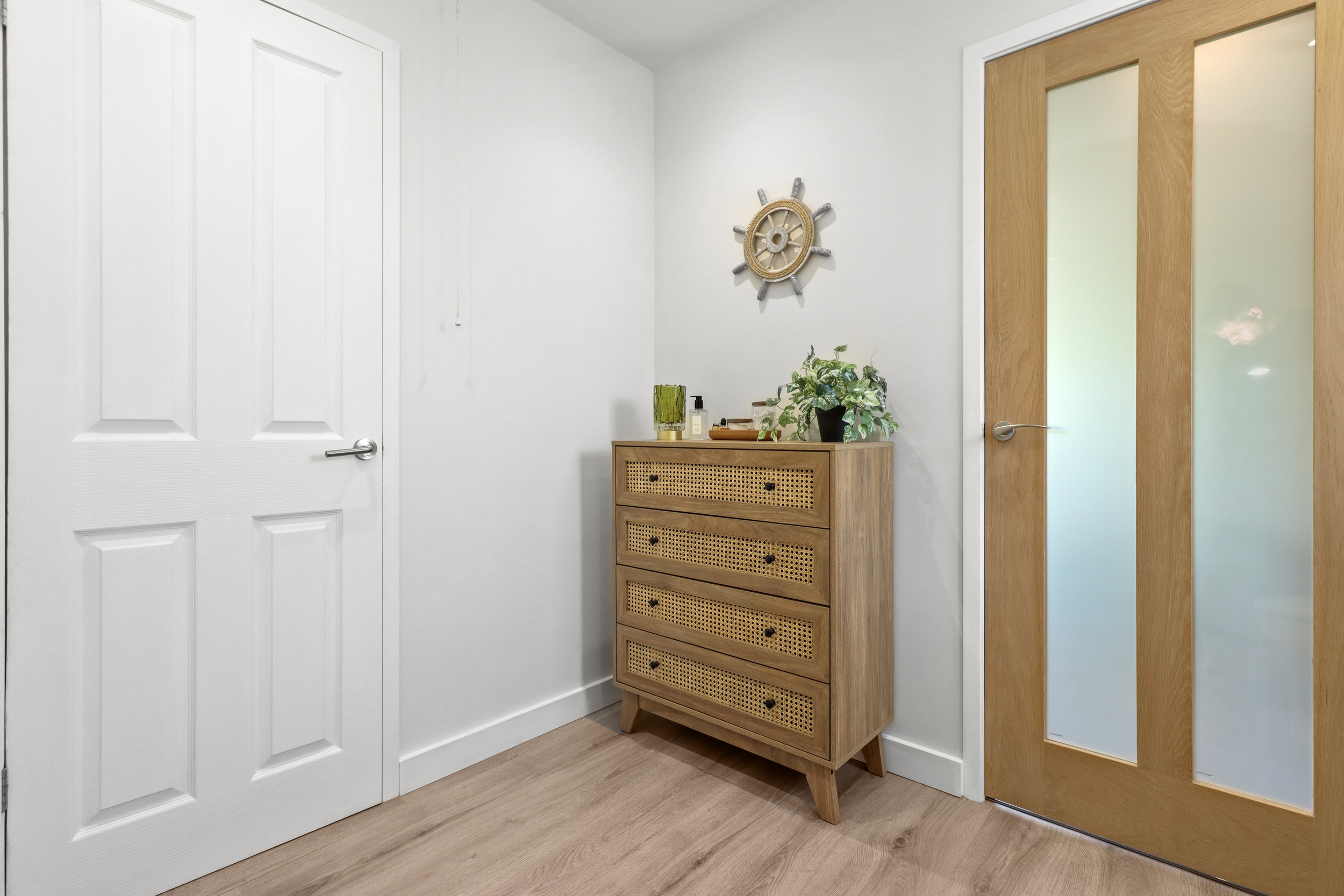 Adjacent is the family bathroom, a lavish retreat designed for ultimate comfort. Featuring a separate bath and shower cubicle, this elegant space offers the perfect balance of indulgence and practicality, providing a spa-like experience for residents to unwind and rejuvenate.