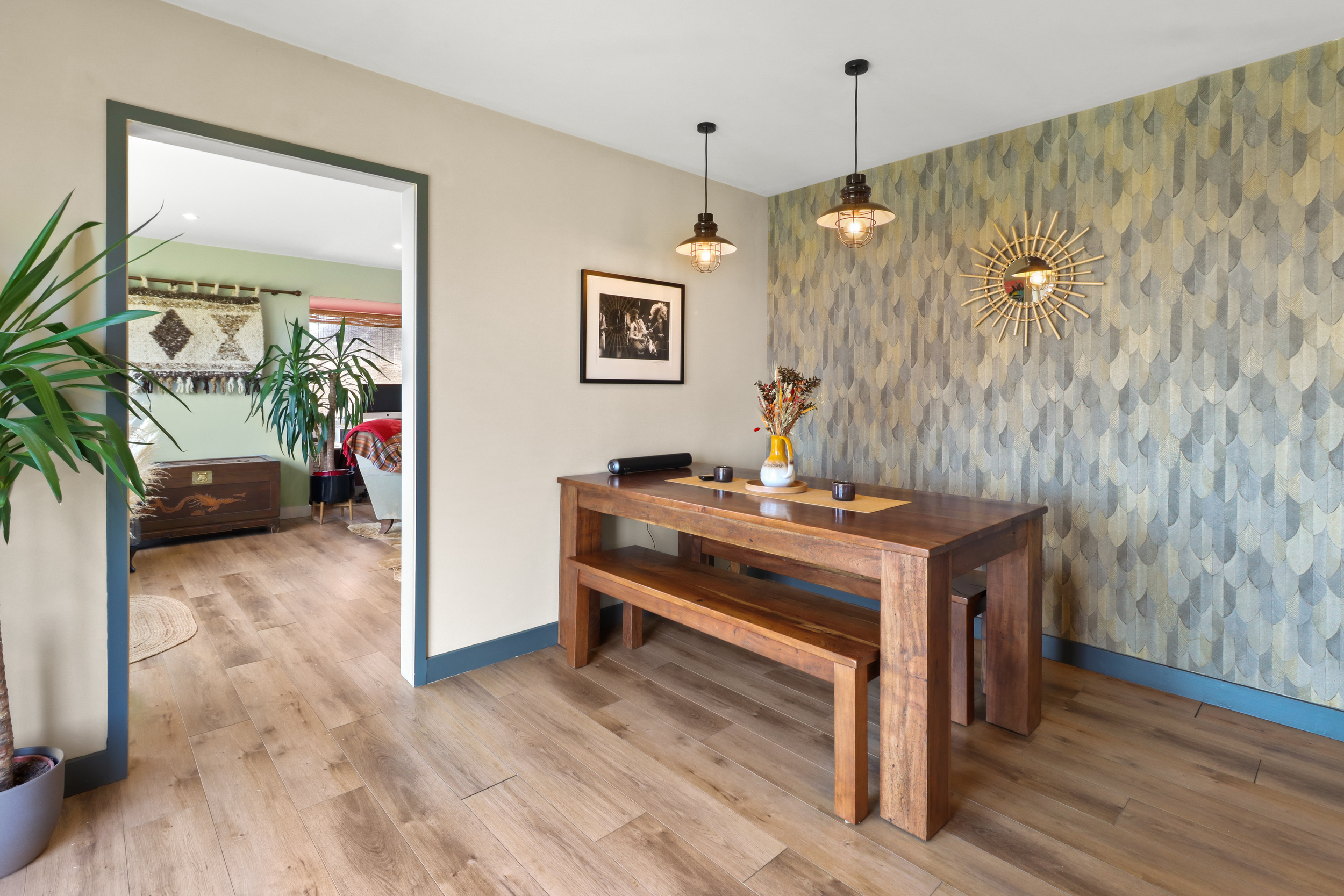 Venture into the heart of the home, where the stunning kitchen/dining room awaits. Designed for both culinary excellence and convivial dining experience, this space exudes modern sophistication, boasting sleek countertops, premium appliances, and ample room for entertaining guests or enjoying family meals.