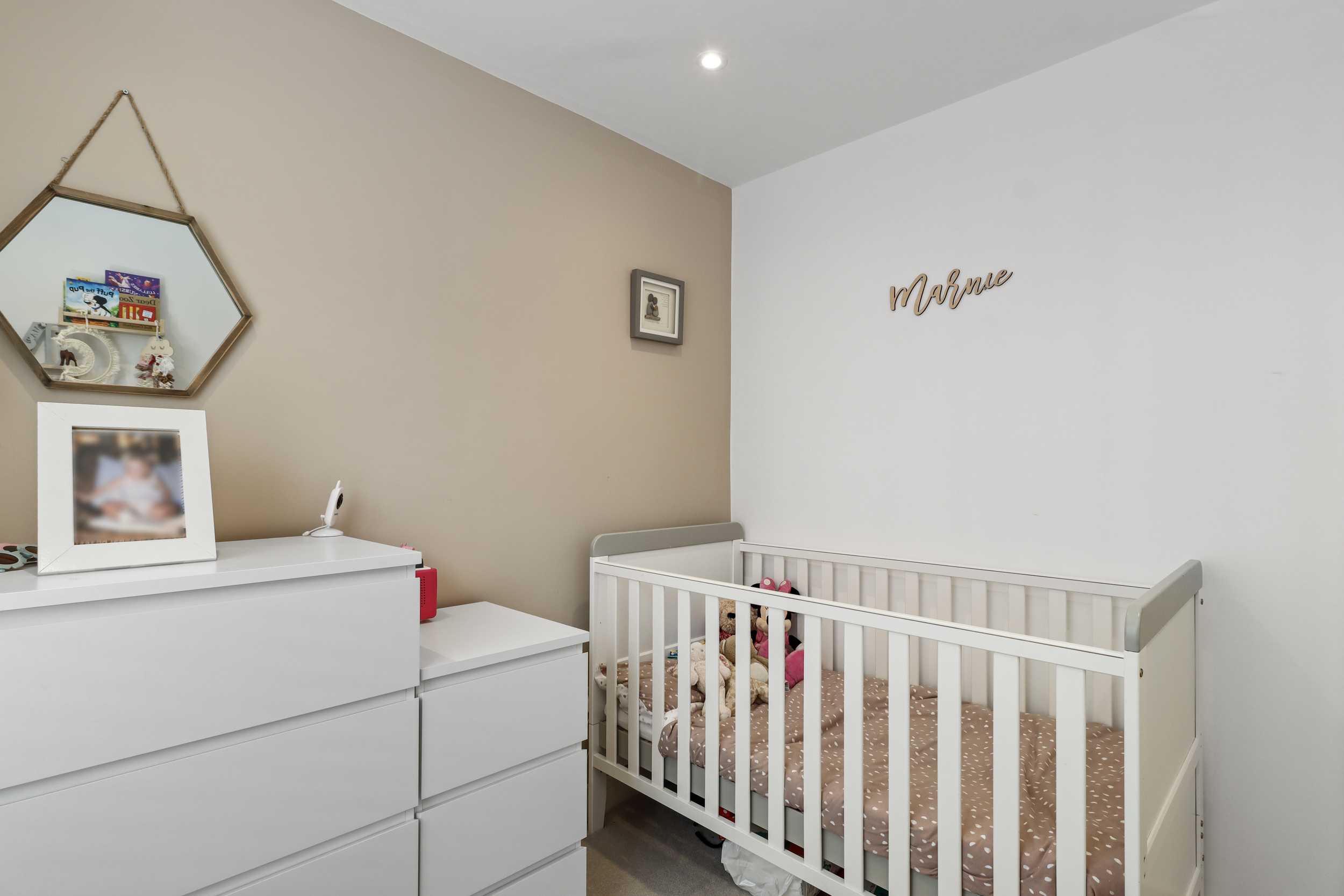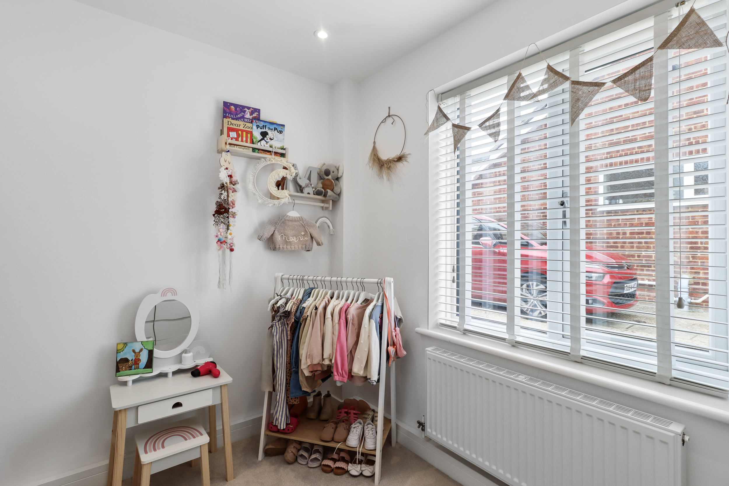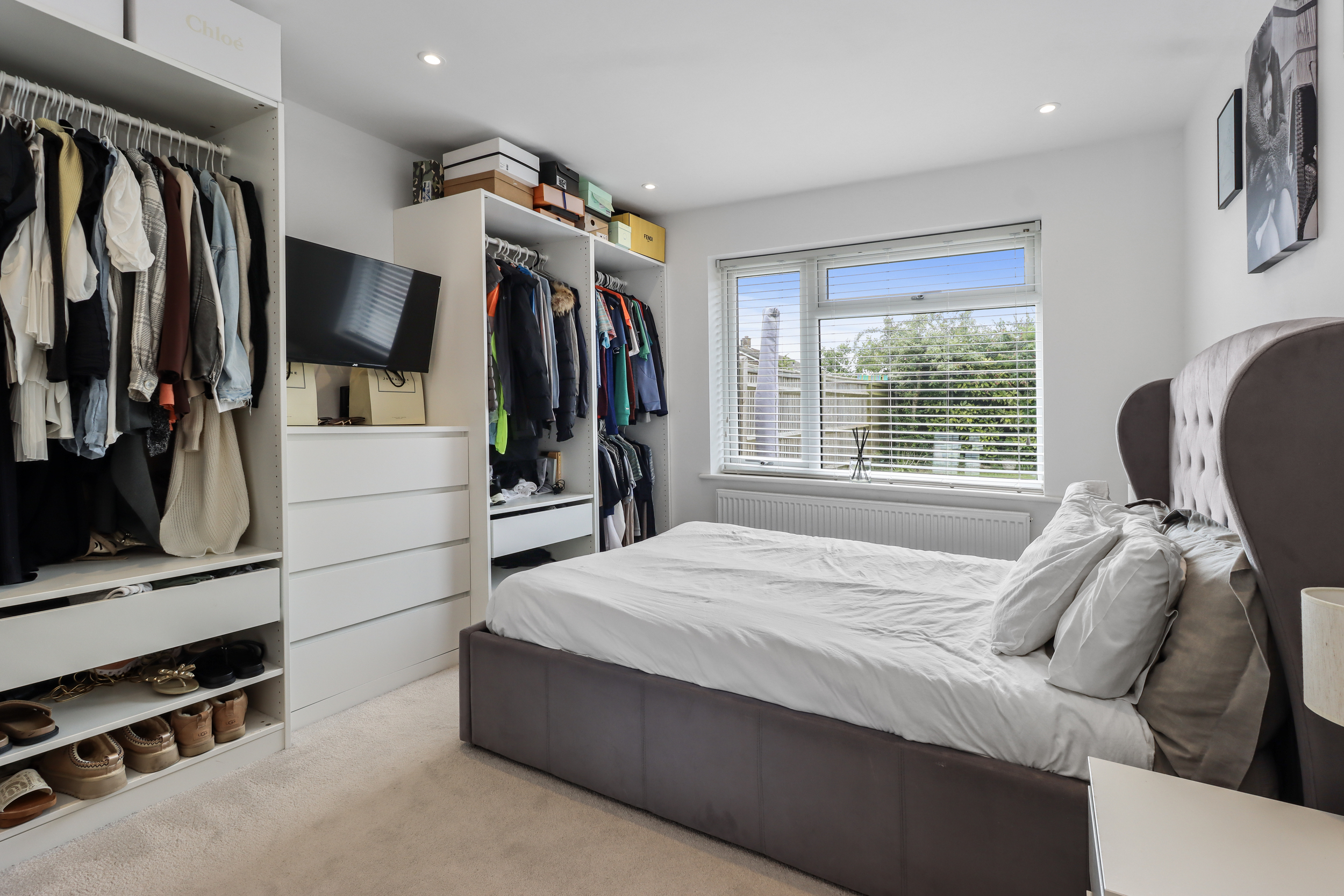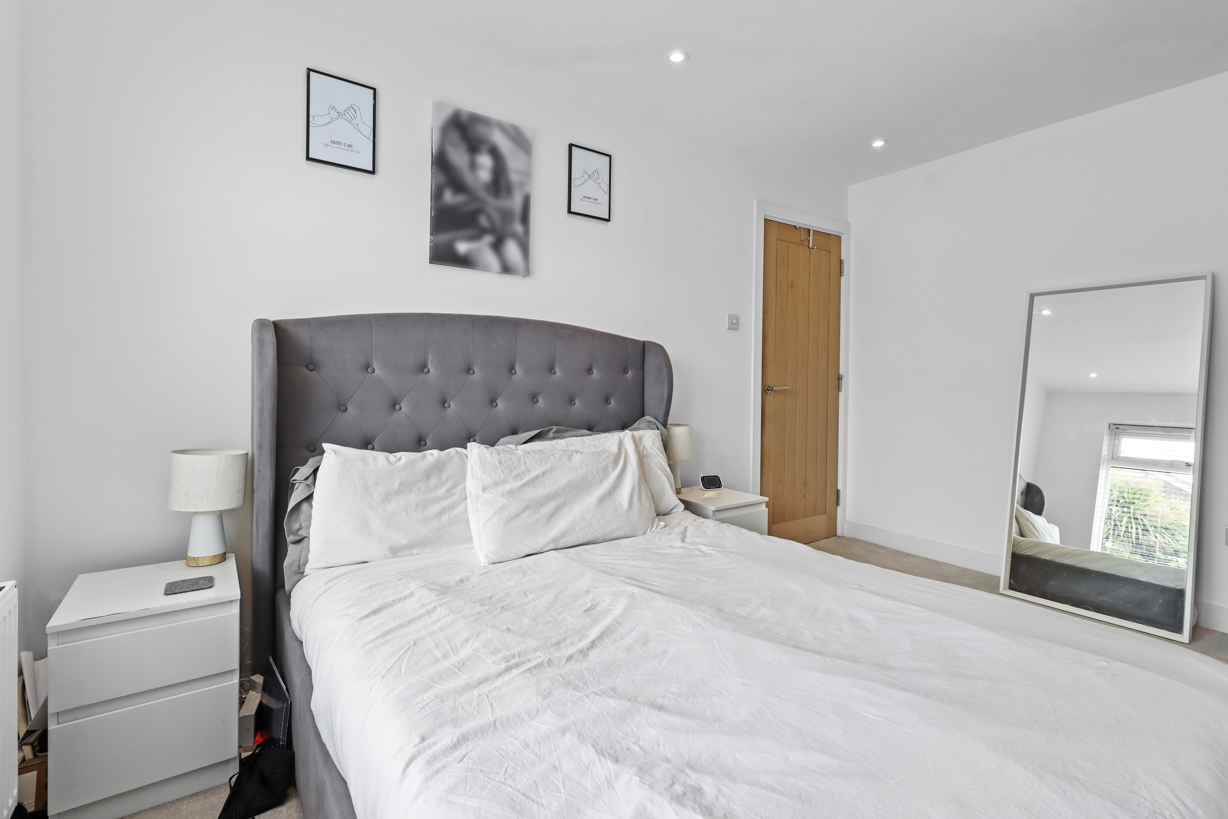 Bedroom one is rear-facing and includes fitted hanging rails, offering ample storage space while maintaining a sleek and tidy appearance.