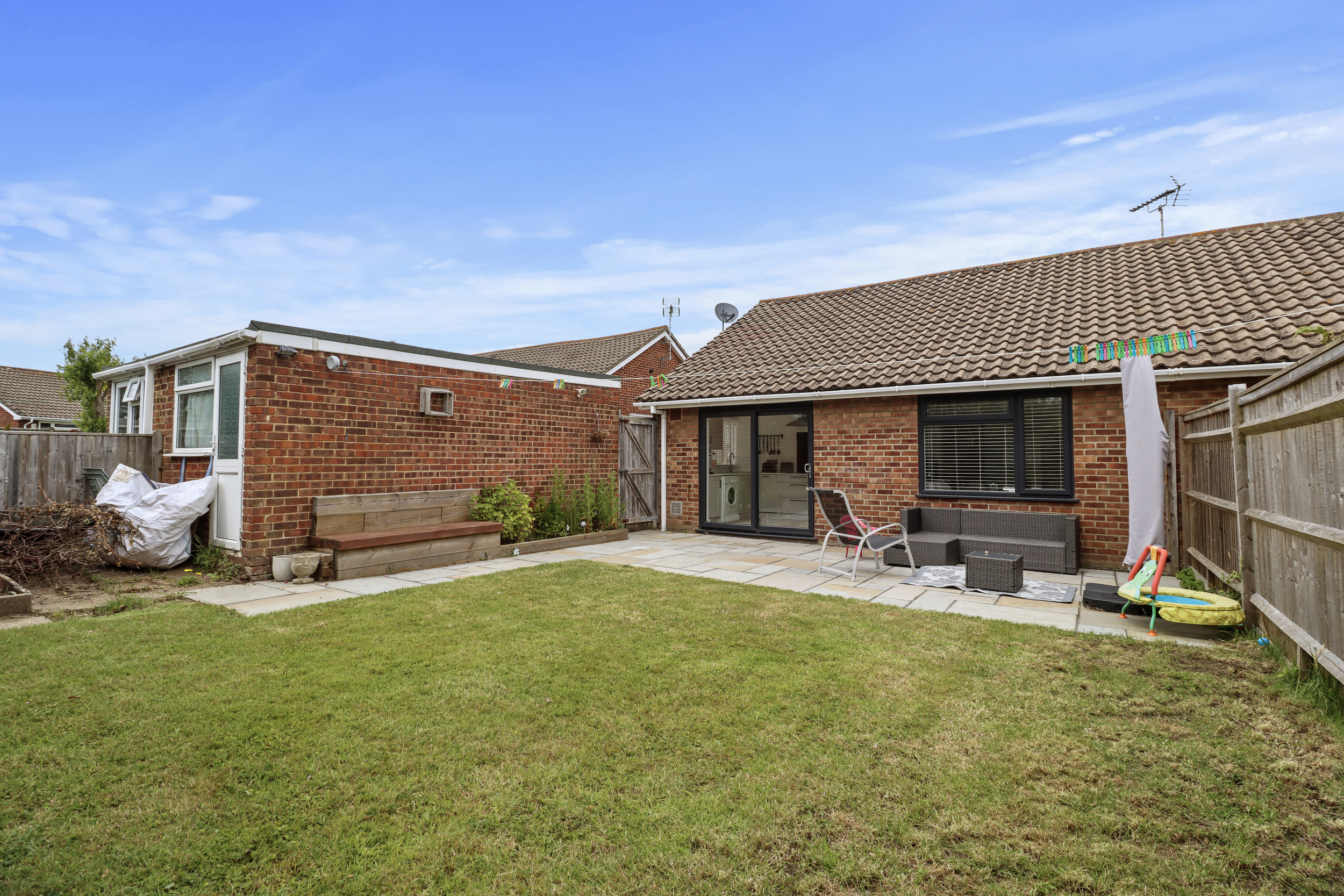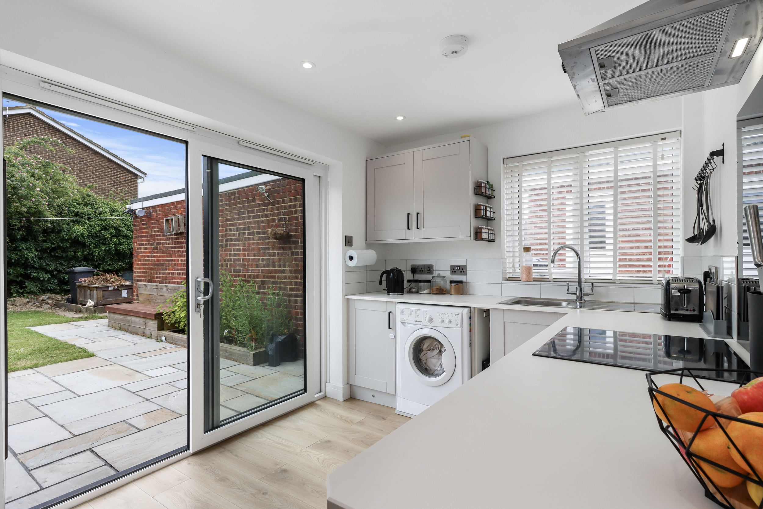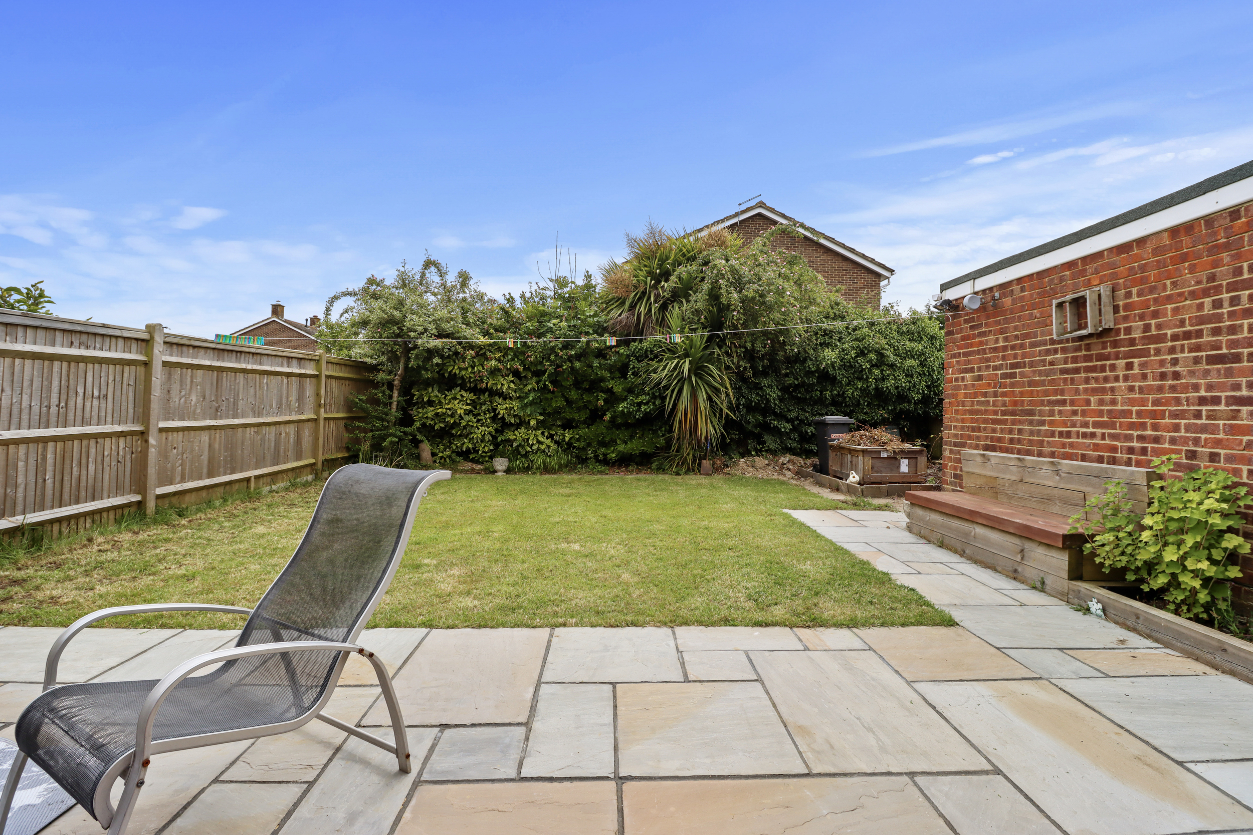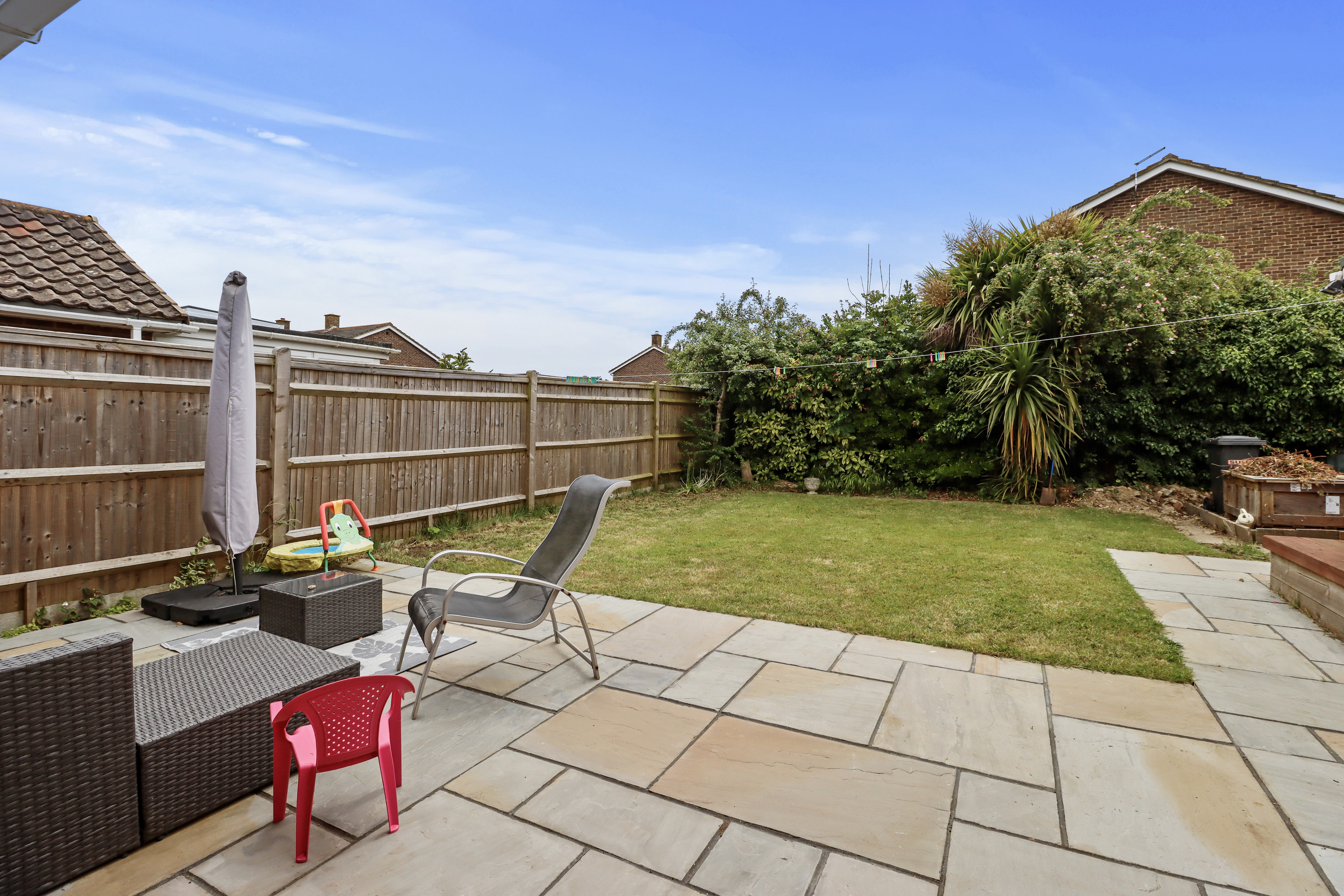 The rear garden is a serene retreat with a paved patio area adjoining the property, perfect for outdoor dining and relaxation. Beyond the patio lies a well-maintained lawn provides a green space for children to play or for gardening enthusiasts to indulge in their hobby , and a side access gate leading to the drive.