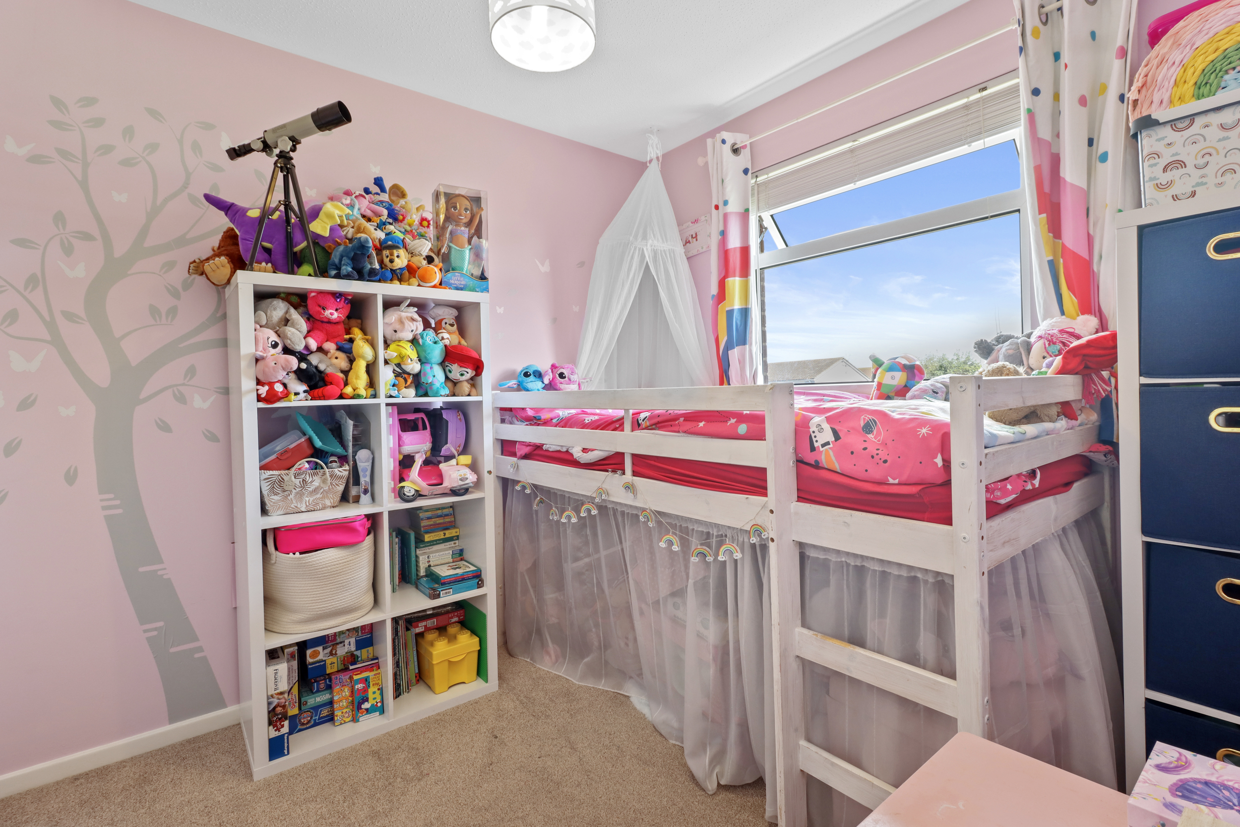 The master bedroom is a serene and spacious rear-facing room, designed for ultimate comfort and features built-in triple wardrobes. Bedroom two is front facing with built in over stairs storage cupboard.