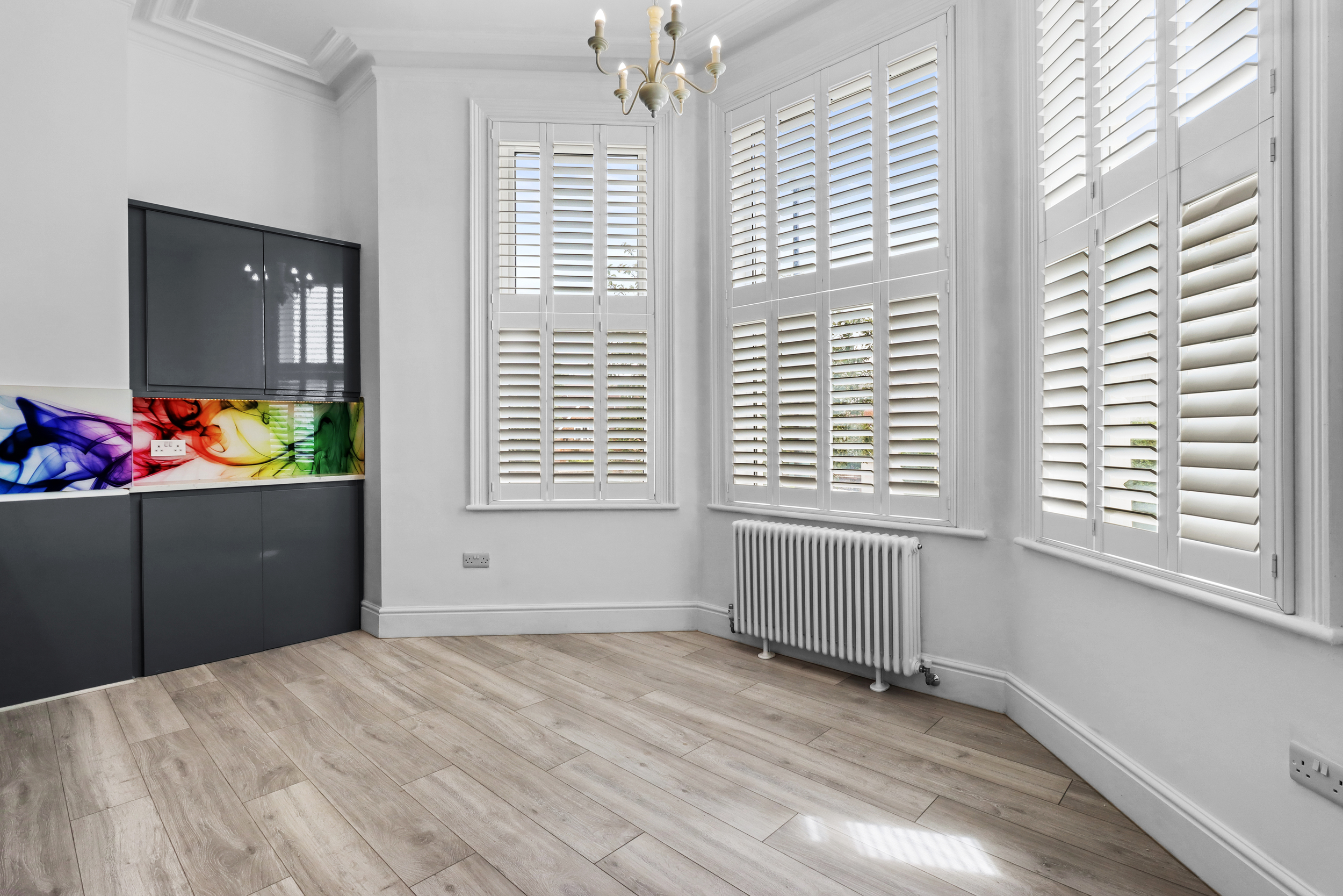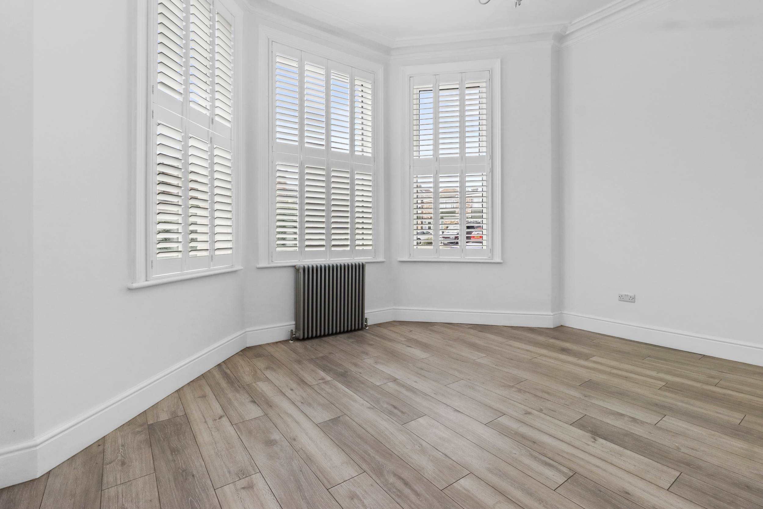 Bedroom One: The front-facing master bedroom is a spacious and serene retreat. It features a large bay window with shutters, creating a bright and airy ambiance. The generous size of the room allows for various furnishing options, ensuring comfort and flexibility.