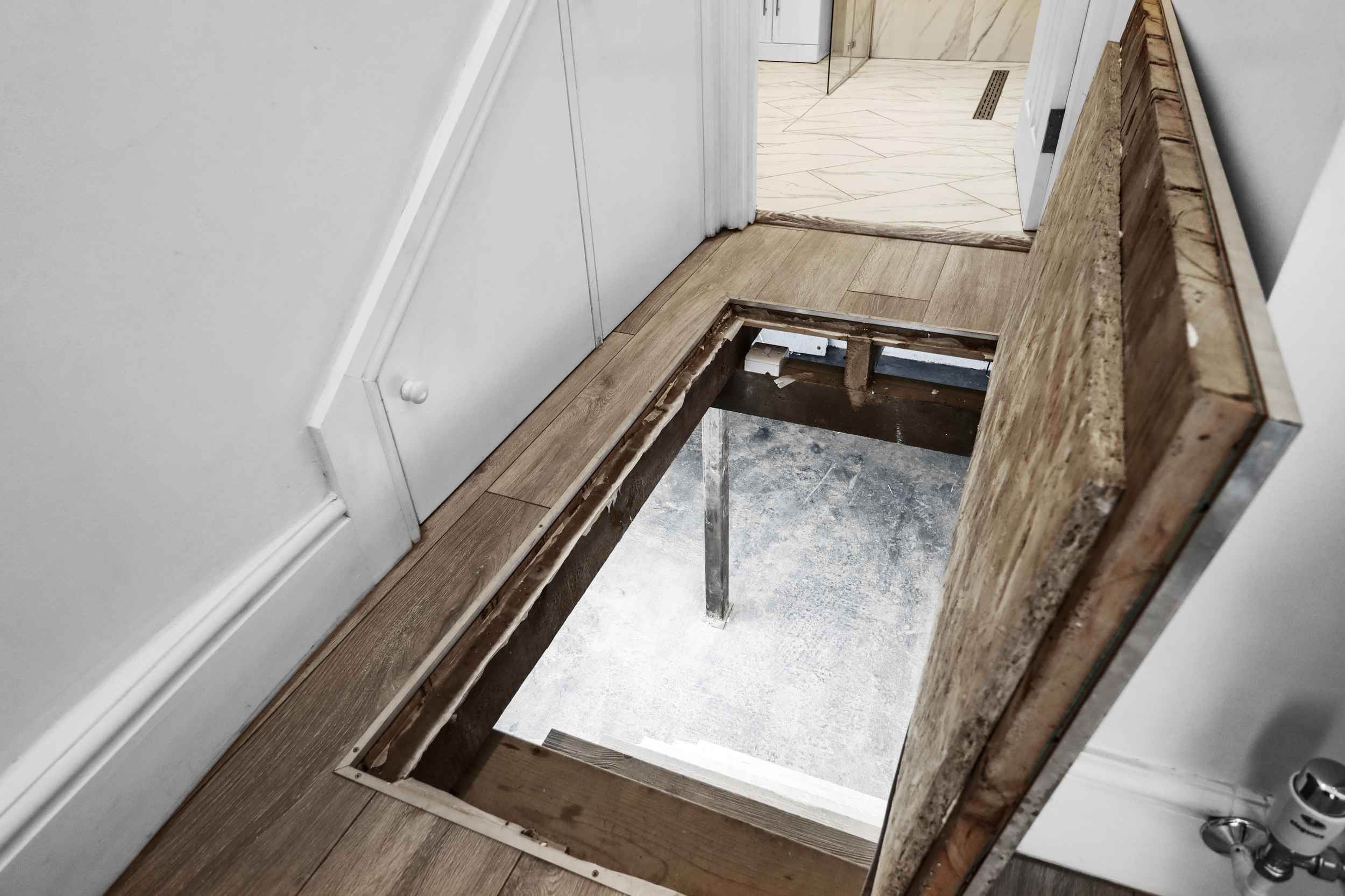 As you step into the property, you are welcomed by an inviting entrance hall. This well-designed space serves as the central hub of the apartment, providing seamless access to each room. The entrance hall also features a pull-up hatch in the floor, which leads to a cellar, offering additional storage space that is both practical and discreet.