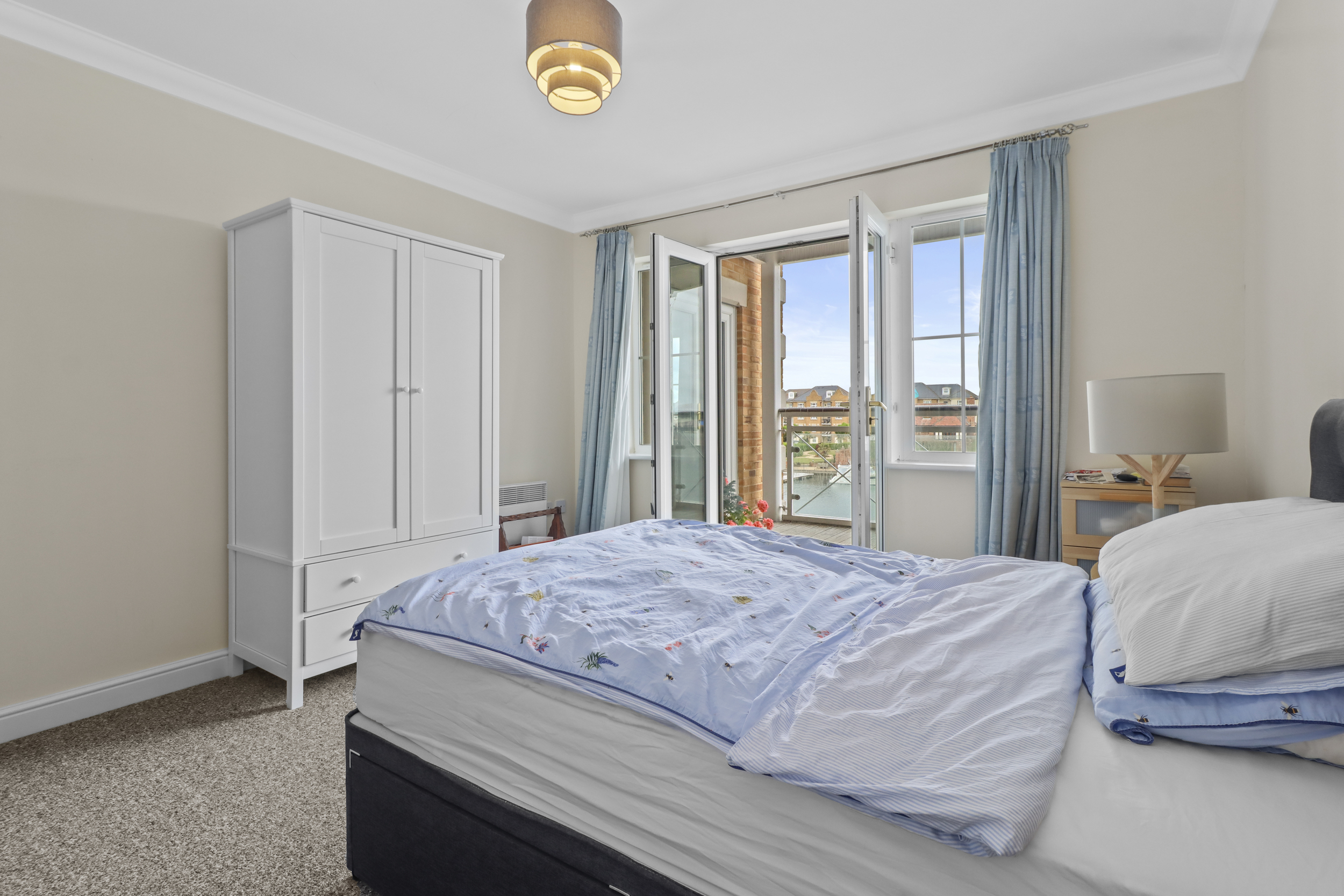 Bedroom one includes an ensuite shower room for added privacy and convenience and double doors lead onto the harbour view balcony, bedroom two is well-proportioned with access to the second side-facing balcony.