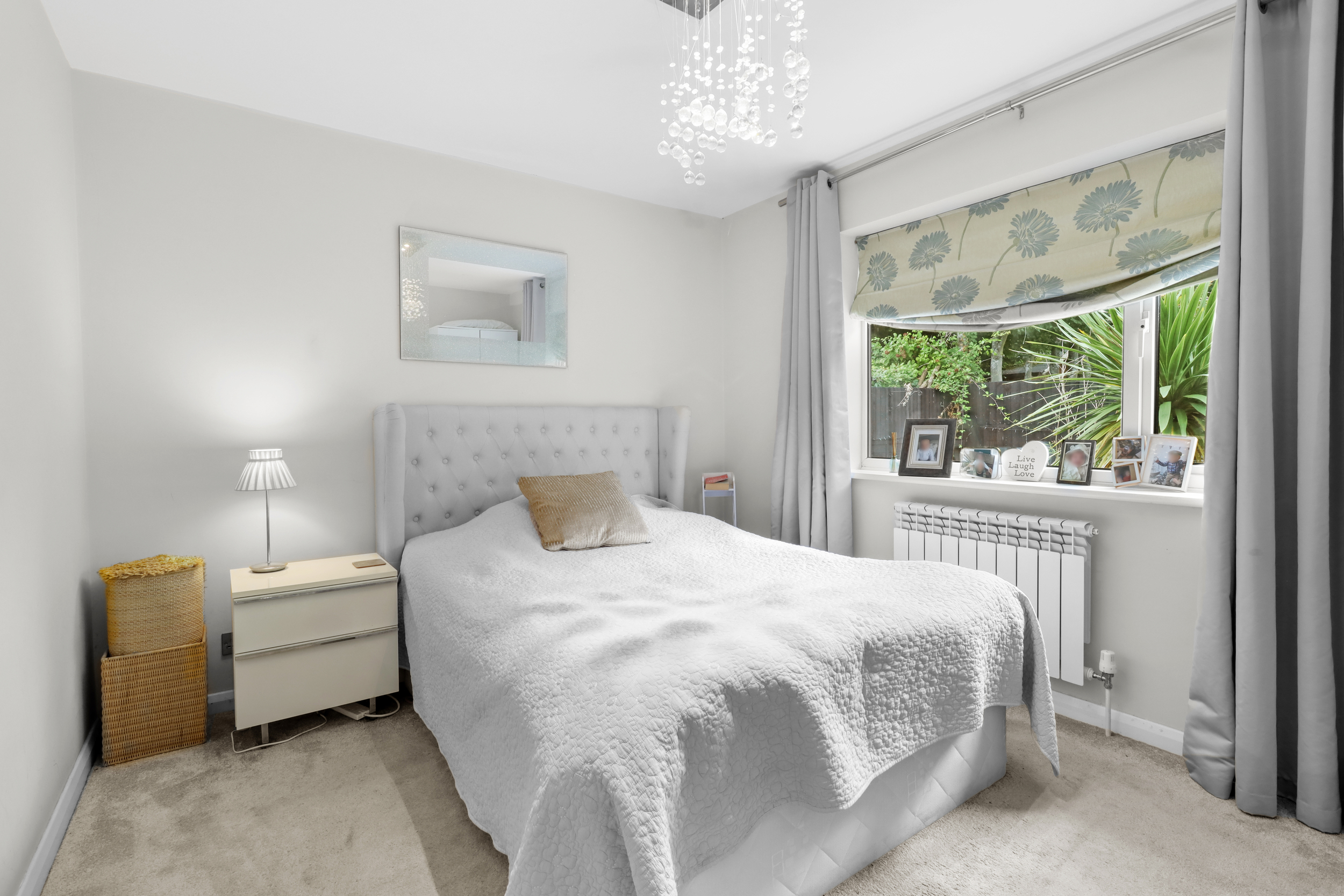 Both bedrooms are generously sized doubles. The front-facing master bedroom boasts fitted wardrobes, offering ample storage space, while the second bedroom, positioned at the rear of the property, enjoys tranquil views over the garden.