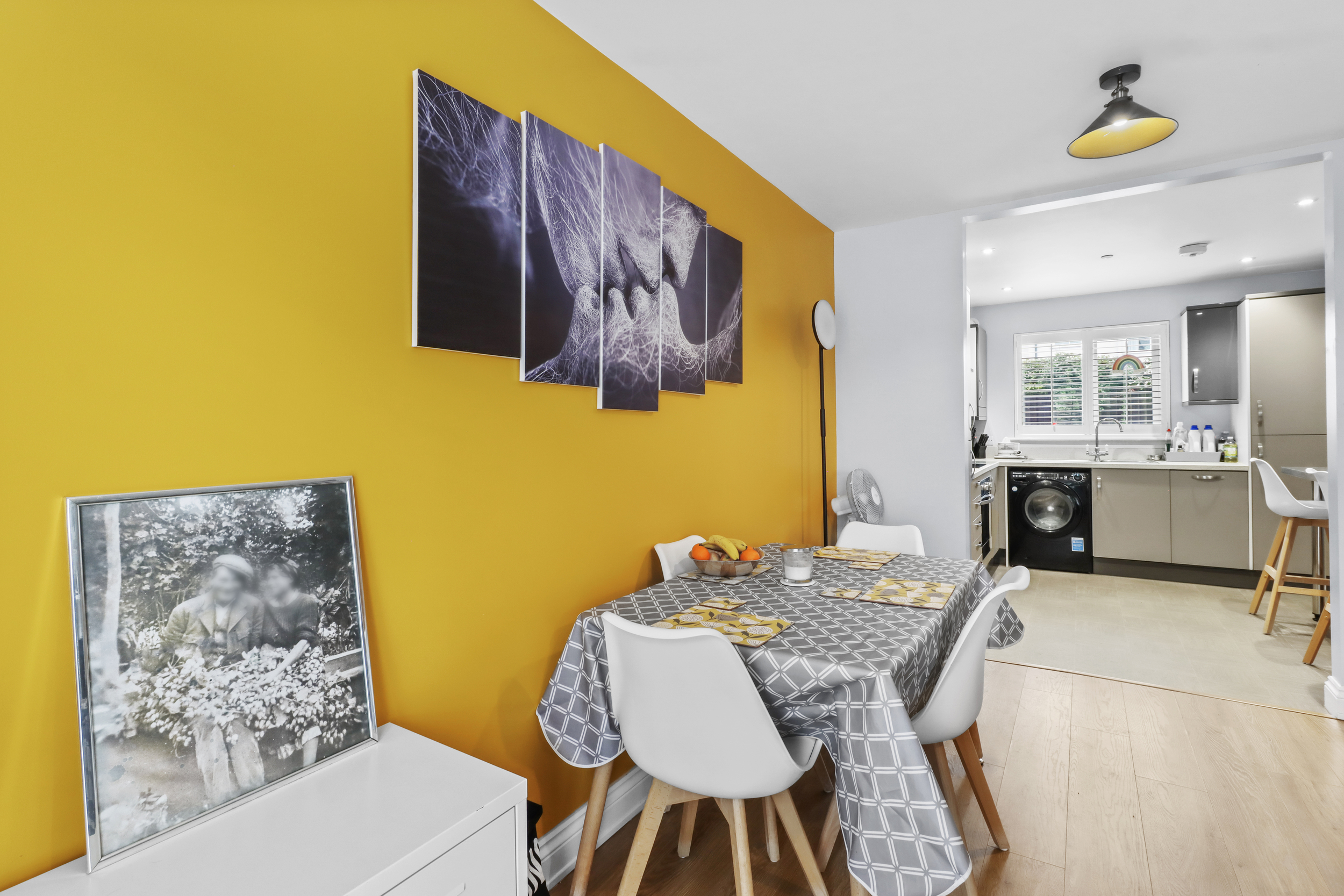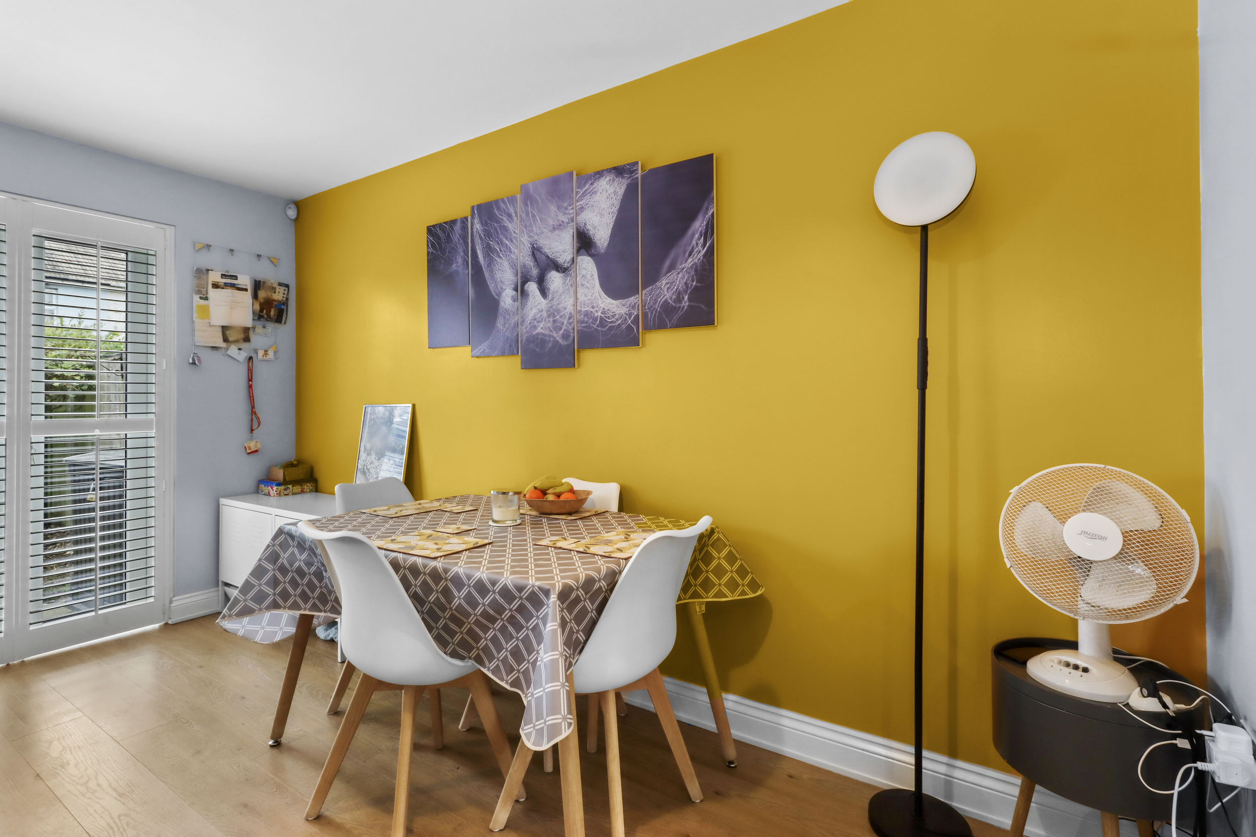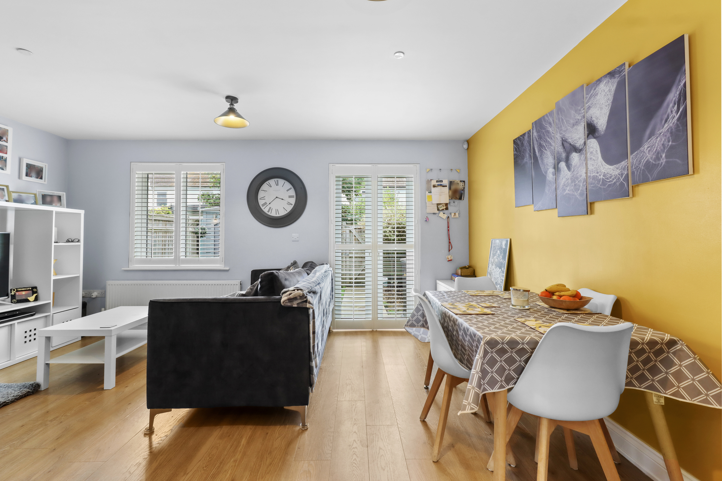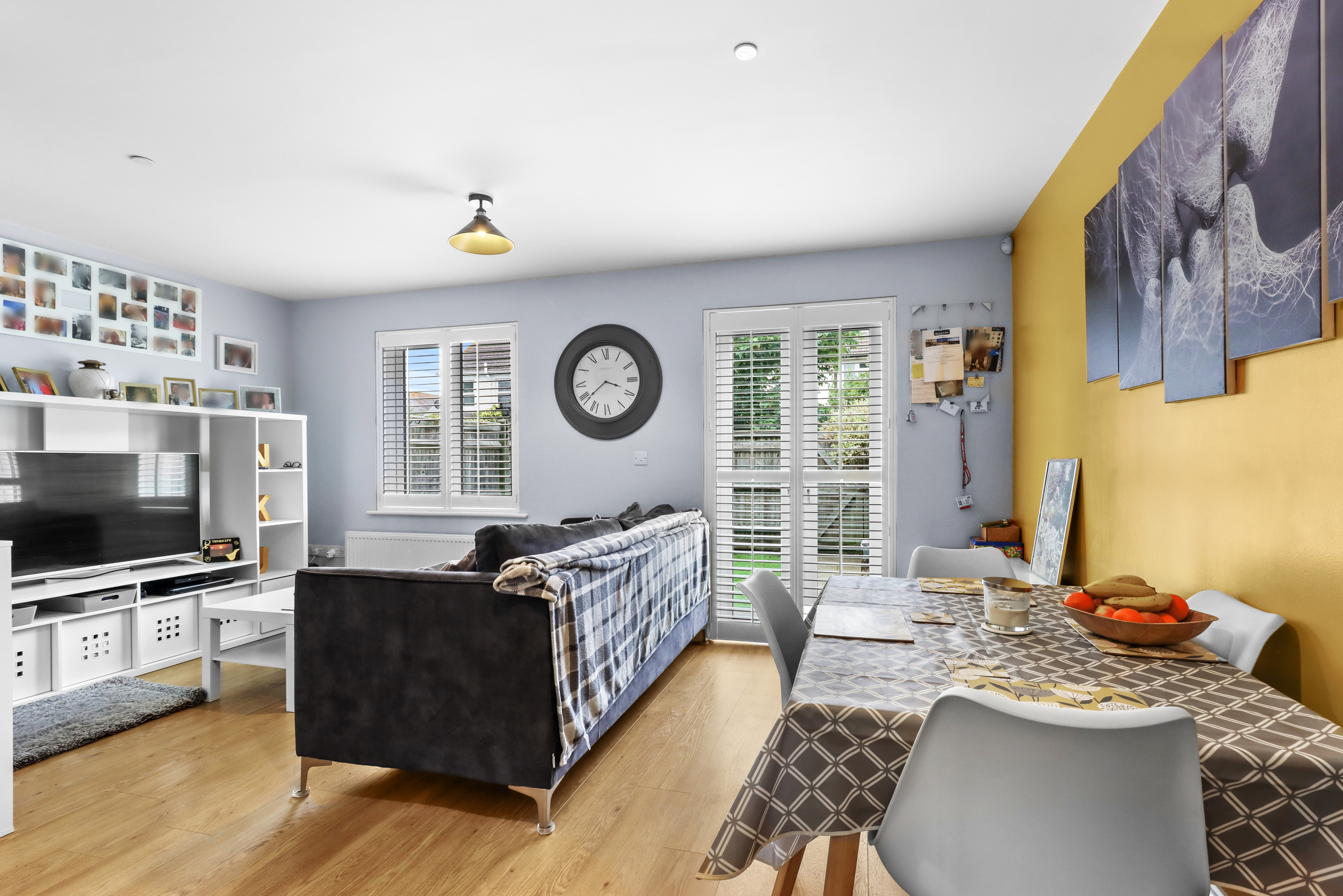The ground floor unfolds into a generously sized open-plan living and dining area, which forms the heart of the home. This expansive space is thoughtfully designed to cater to both relaxation and entertainment, offering ample room for a variety of furniture configurations. Natural light floods the room, courtesy of large windows and French doors that lead directly to the rear garden, creating a seamless connection between indoor and outdoor living spaces.