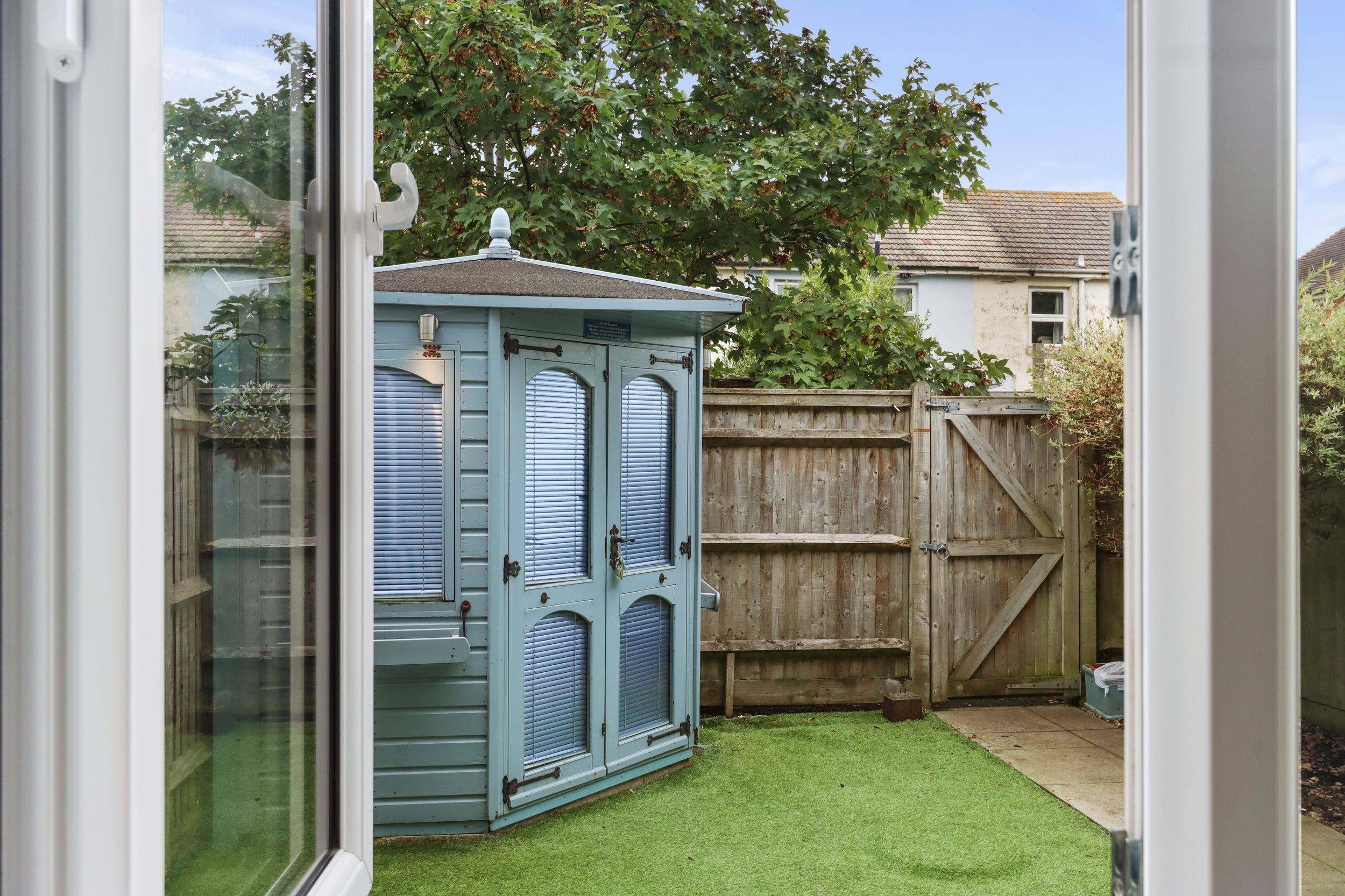 The rear garden of Sandwich Mews is a private and fully enclosed oasis, designed for low-maintenance enjoyment. The garden features a paved patio area that adjoins the property, providing an ideal space for outdoor dining, entertaining, or simply relaxing in the sun. To one side of the garden, a section of artificial grass adds a touch of greenery without the upkeep, making it perfect for busy lifestyles.