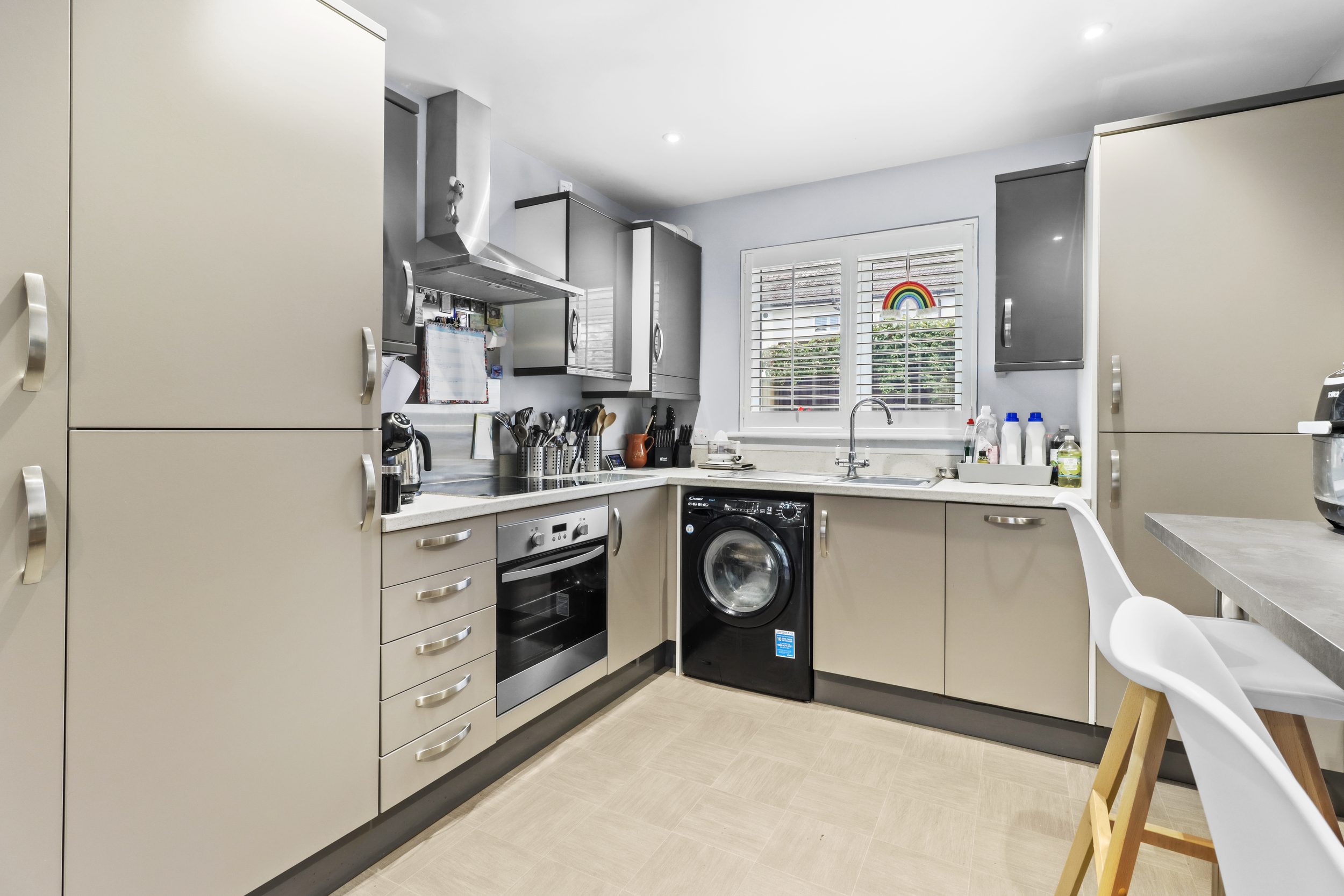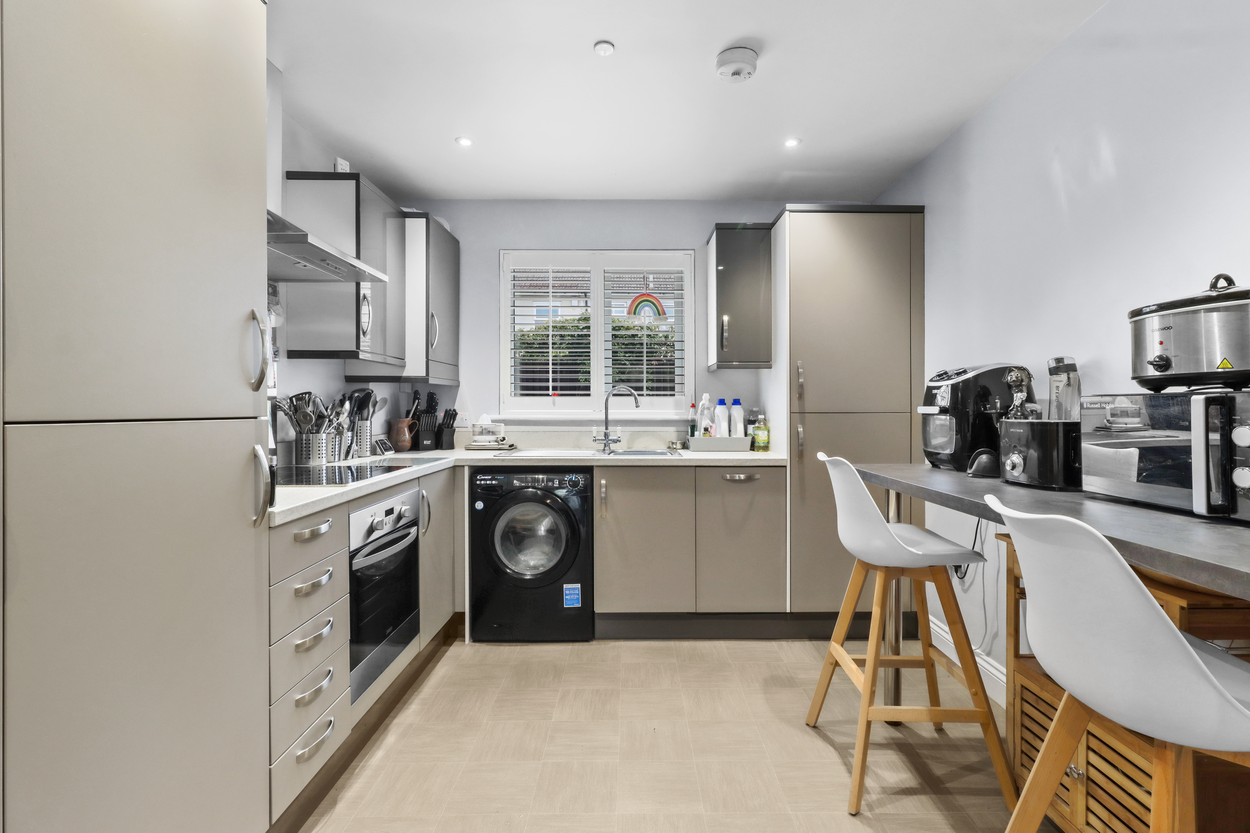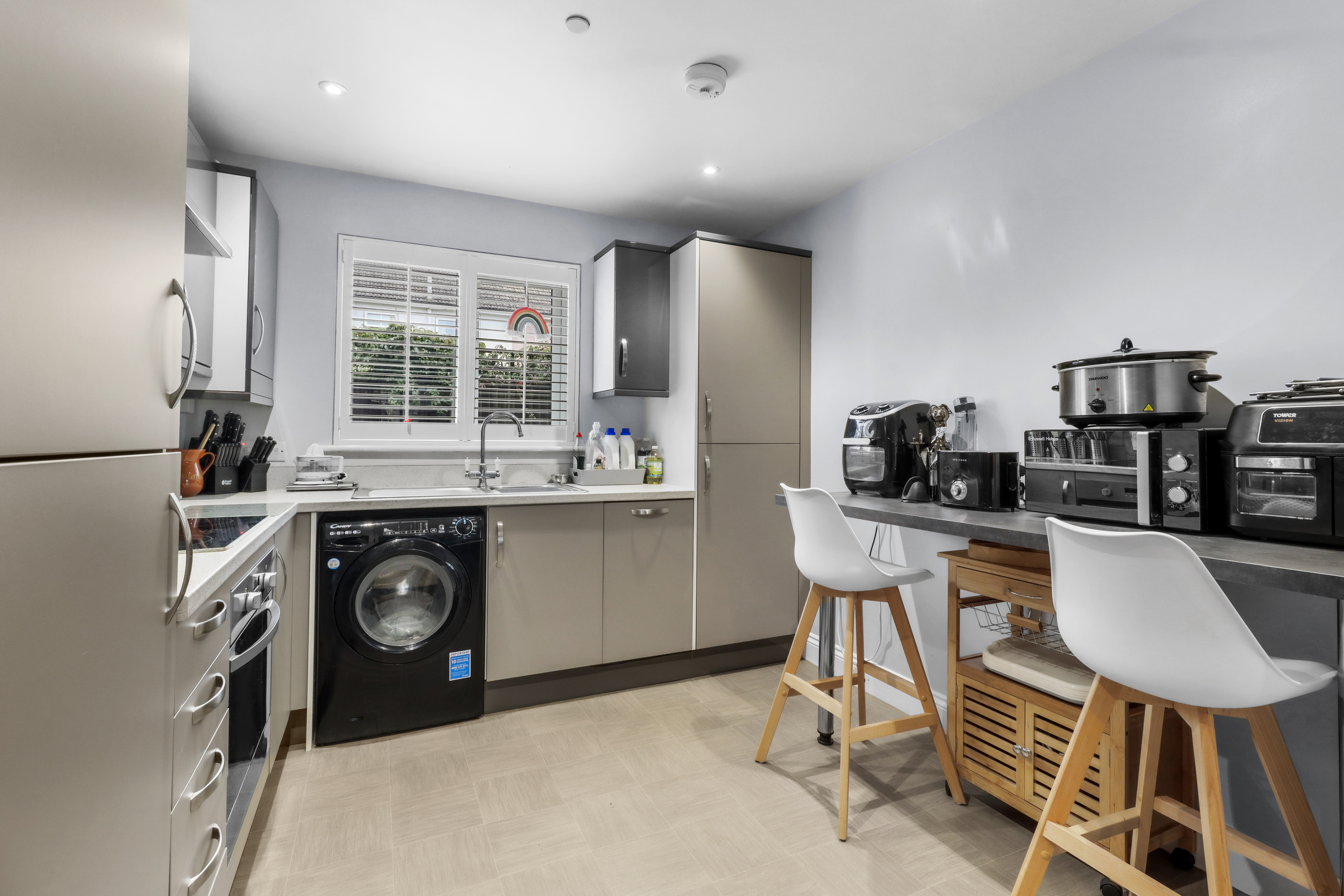 A feature opening from the dining area leads into the contemporary kitchen, a culinary haven that will delight any home chef. The kitchen is fitted with a comprehensive range of wall-mounted and matching base units, offering ample storage and a sleek, modern aesthetic. The design is both functional and stylish, with clean lines and high-quality finishes throughout.