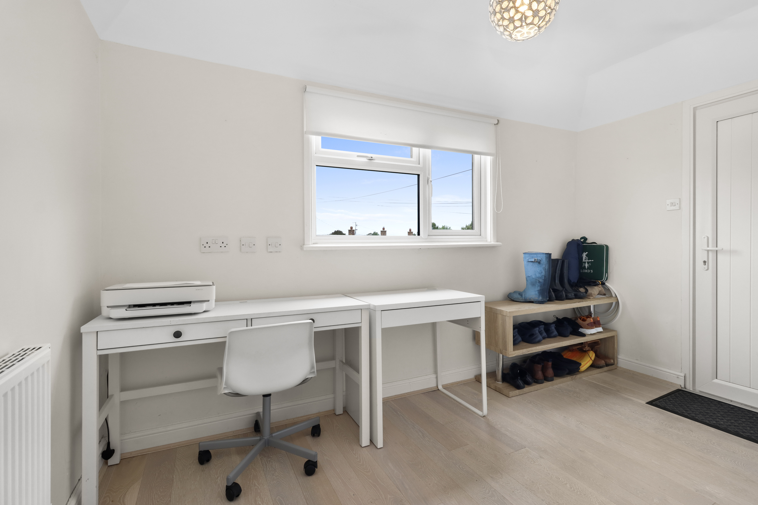 Bedroom one, located at the rear of the property, boasts panoramic sea views and features a private ensuite shower room. Bedrooms two and three are situated at the front of the property, offering ample space and comfort. The study, which could serve as a fourth bedroom, provides versatility to suit your needs, whether as a guest room, home office, or hobby space.