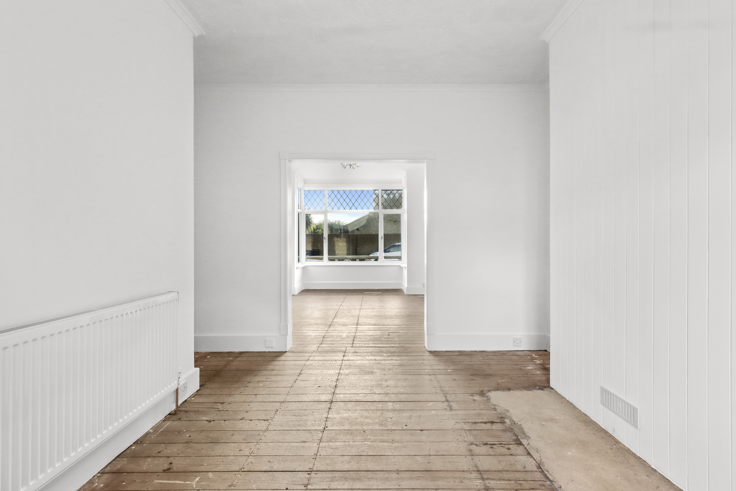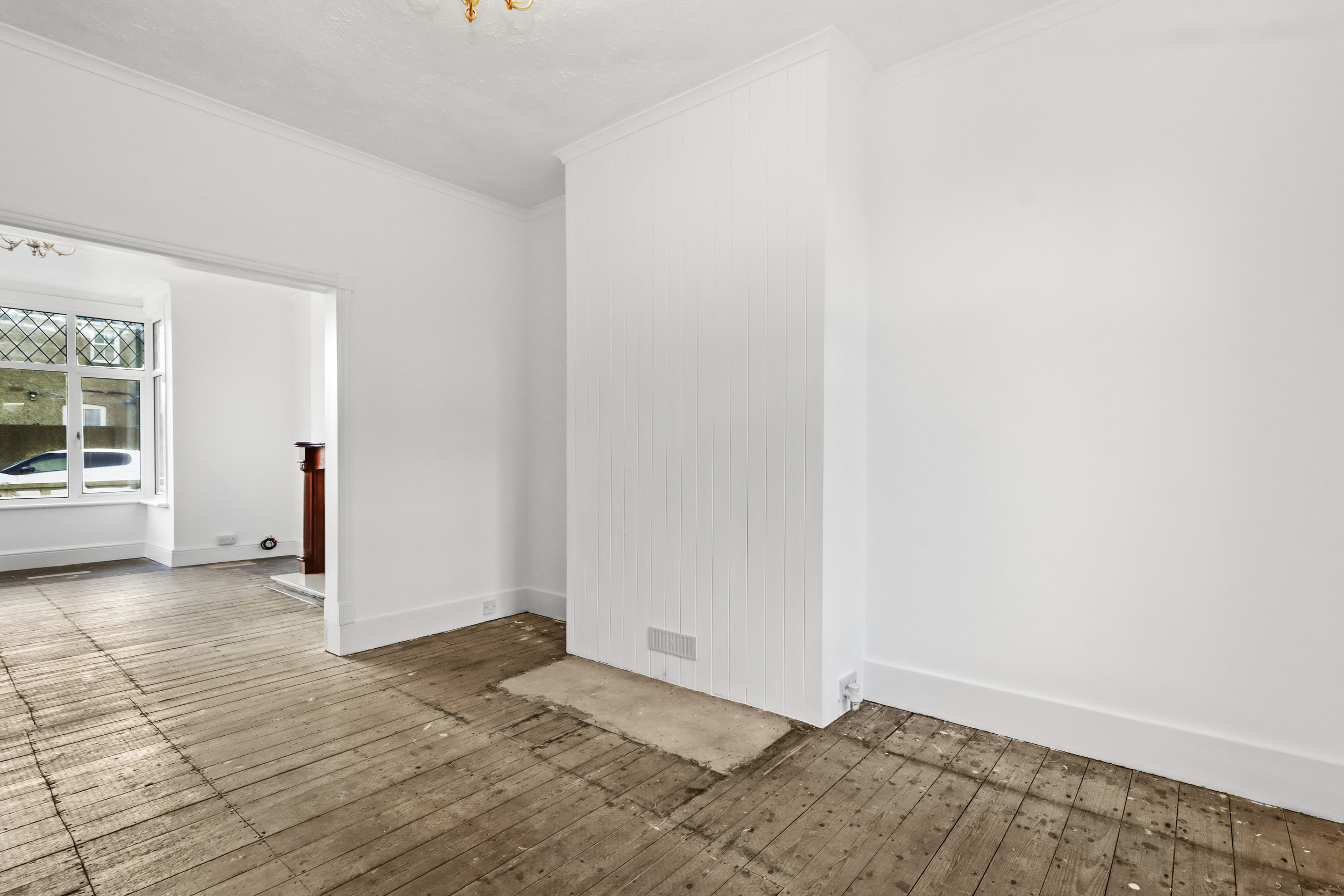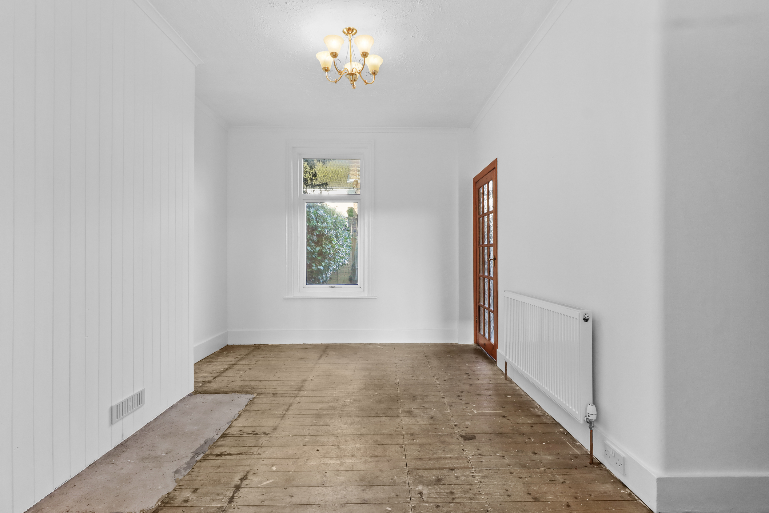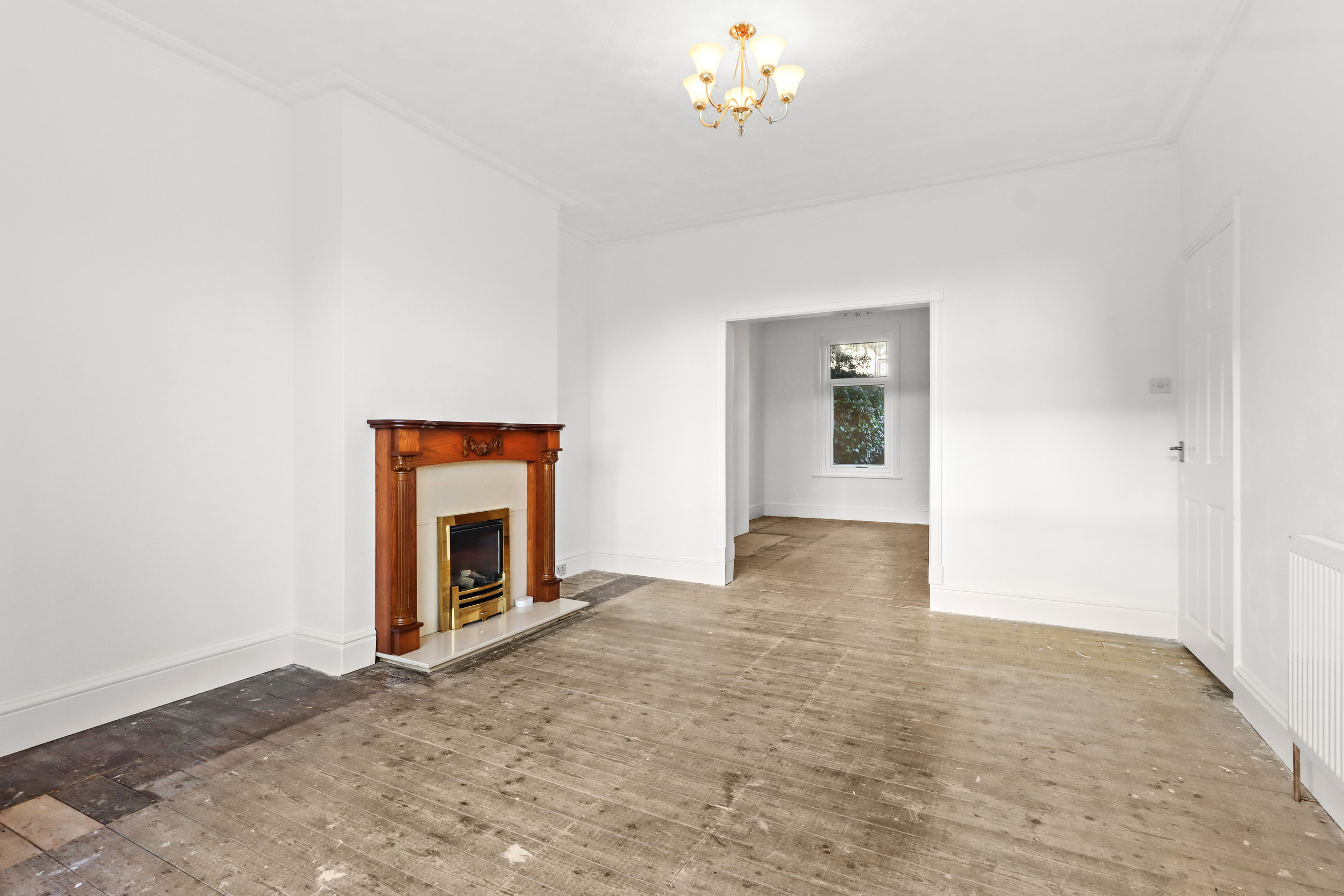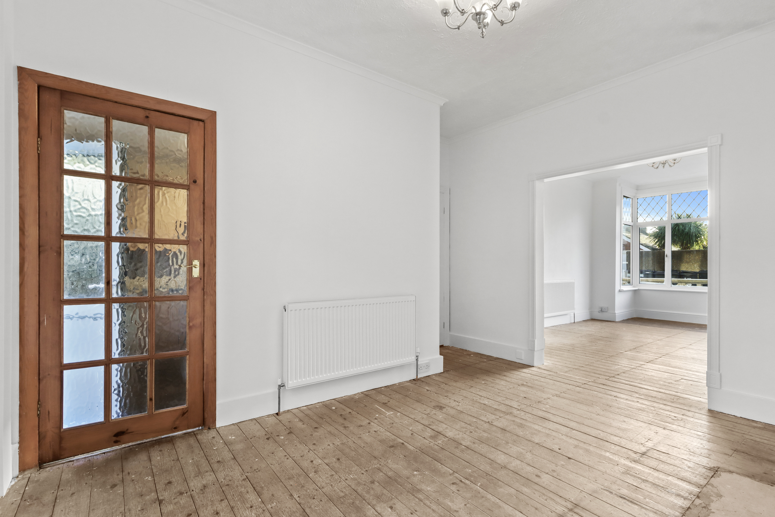 As you step through the front porch, you are greeted by a welcoming entrance hall with stairs leading to the first-floor landing. The hallway provides access to the generously sized living room, which features a charming square bay window and a cosy feature fireplace. A square archway seamlessly connects the living room to the rear-facing dining room, creating an open yet distinct living space. The dining room enjoys views over the rear garden and offers easy access to both the kitchen and the entrance hall via separate doors.