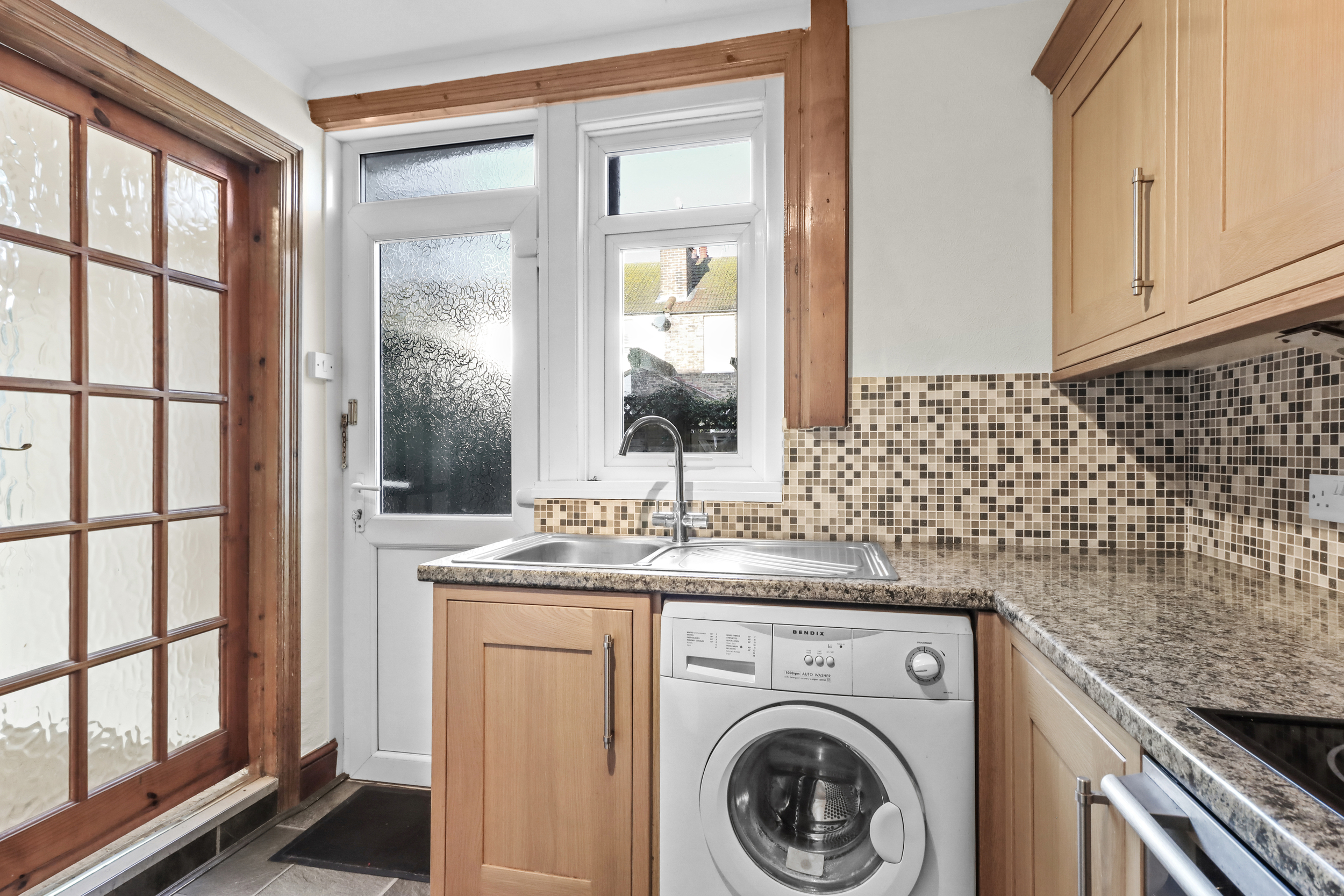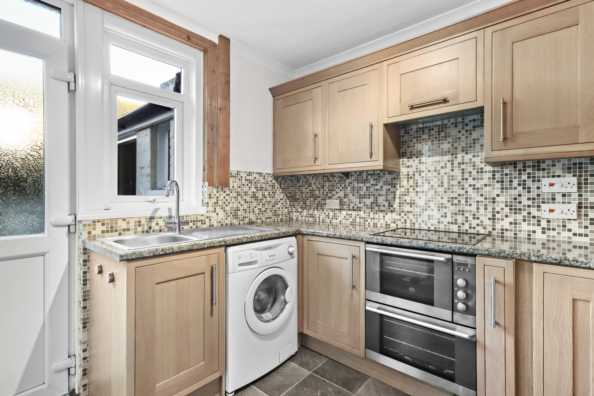 The well-equipped kitchen is the heart of the home, featuring a comprehensive range of wall-mounted and matching base units. These offer ample storage and are complemented by expansive work surfaces, ensuring plenty of space for meal preparation. The kitchen includes modern conveniences such as a built-in cooker, hob, and extractor hood. Additionally, there is space for a fridge freezer and other appliances. From the kitchen, there is direct access to the rear garden, making it easy to bring meals or drinks outside for al fresco dining.