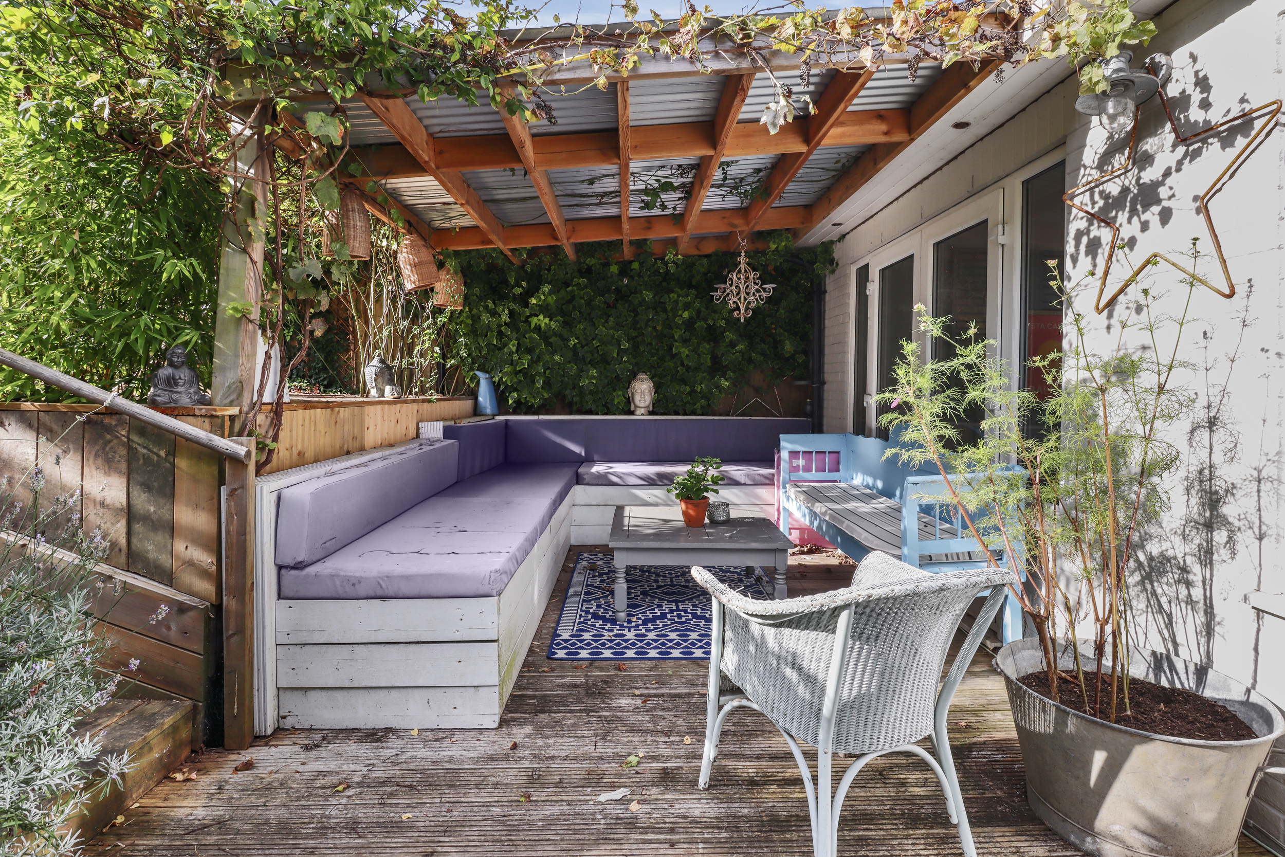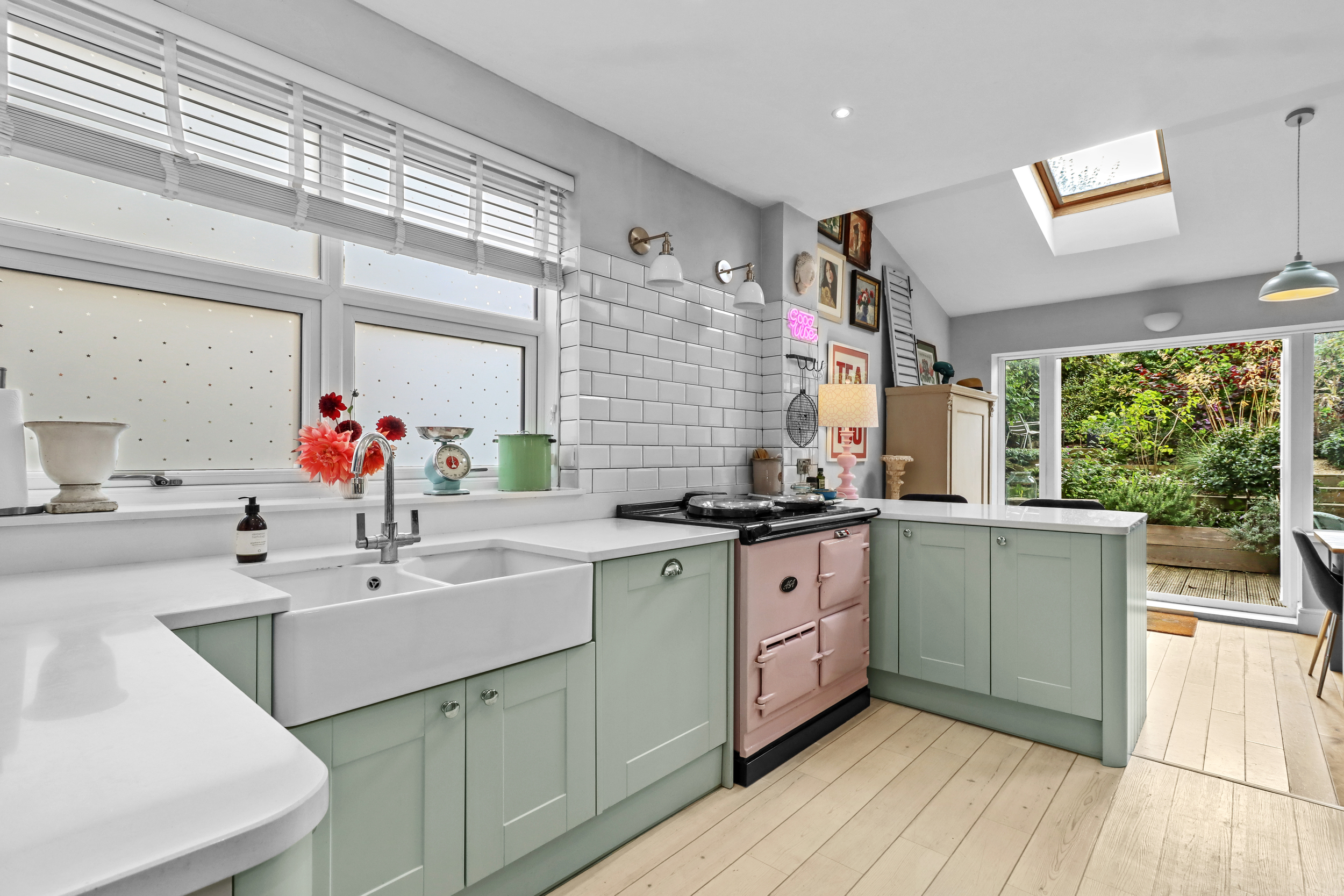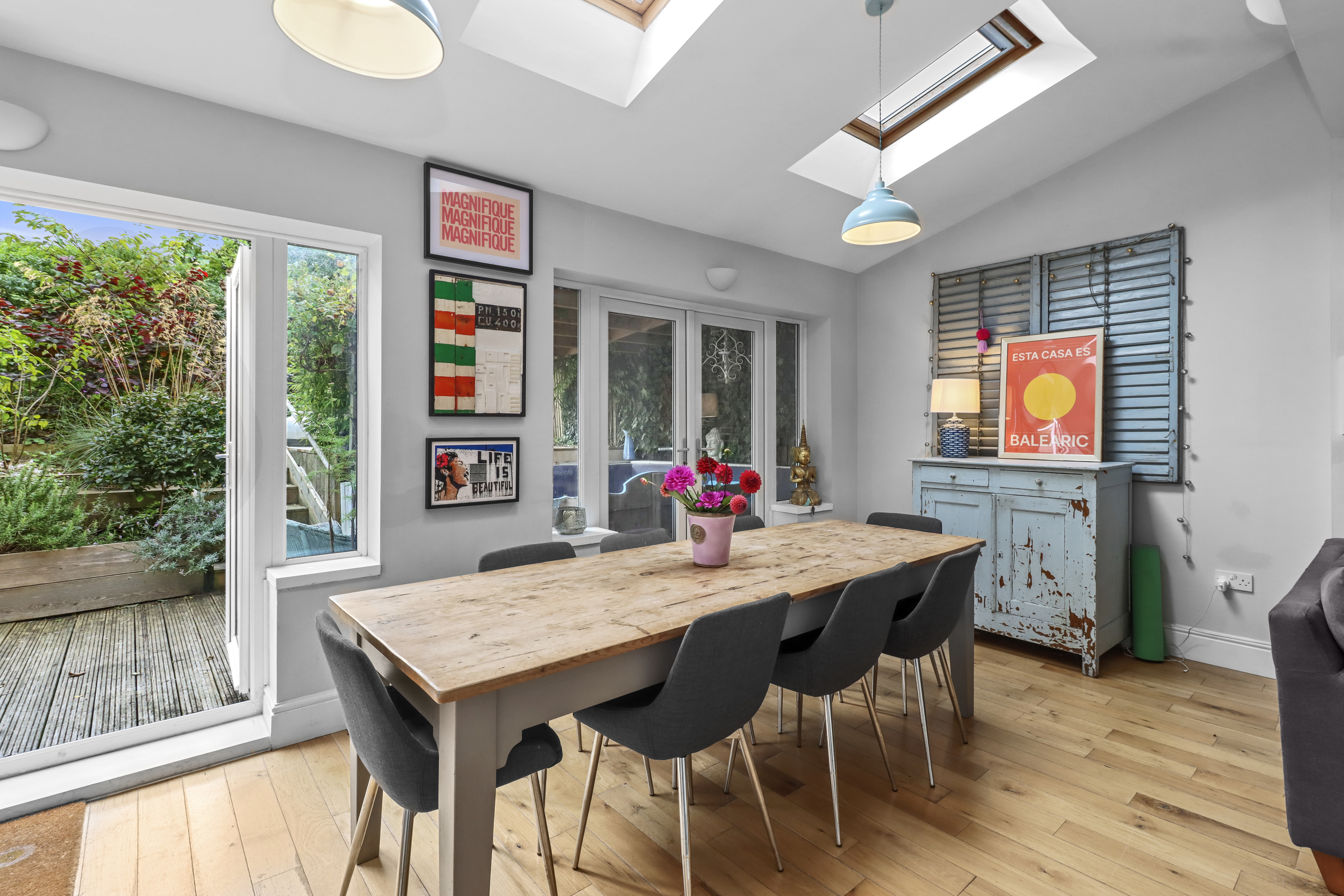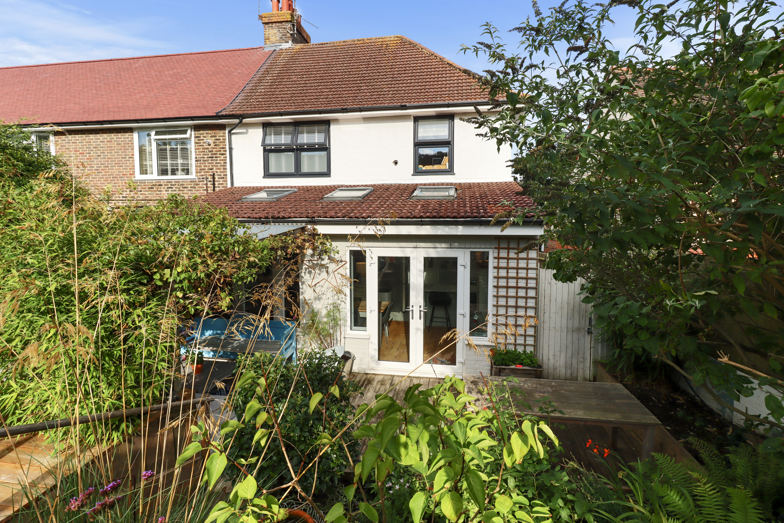 One of the standout features of this property is its expansive, sunny and beautifully designed rear garden. The outdoor space is thoughtfully divided into distinct areas, providing a mix of functionality and charm.