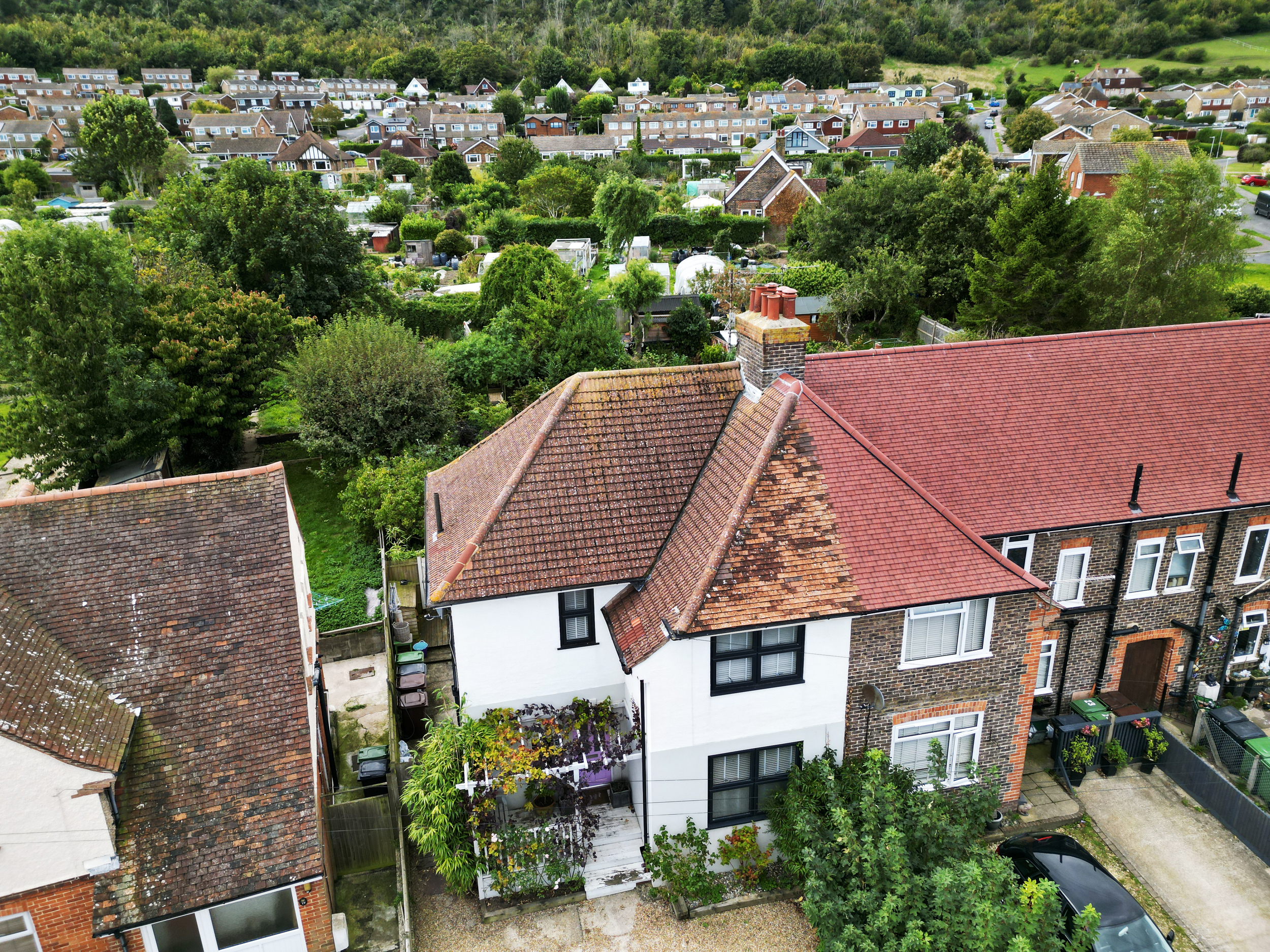 The garden's third section is accessible through a charming archway, leading to an enchanting floral display area. This part of the garden is perfect for those who enjoy gardening, providing a peaceful spot to cultivate and admire flowers and plants. Additionally, a further decked area houses a wooden shed, ideal for garden tools or outdoor storage. The rear garden backs onto allotments, ensuring a large amount of peace and privacy, with a host of wildlife for nature enthusiasts.