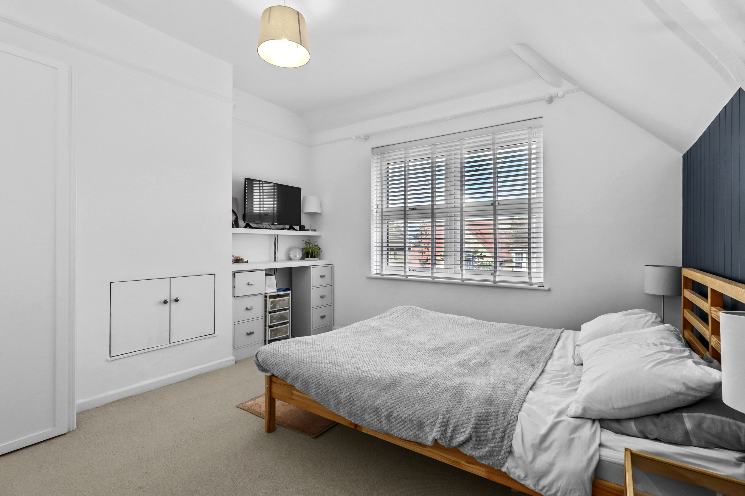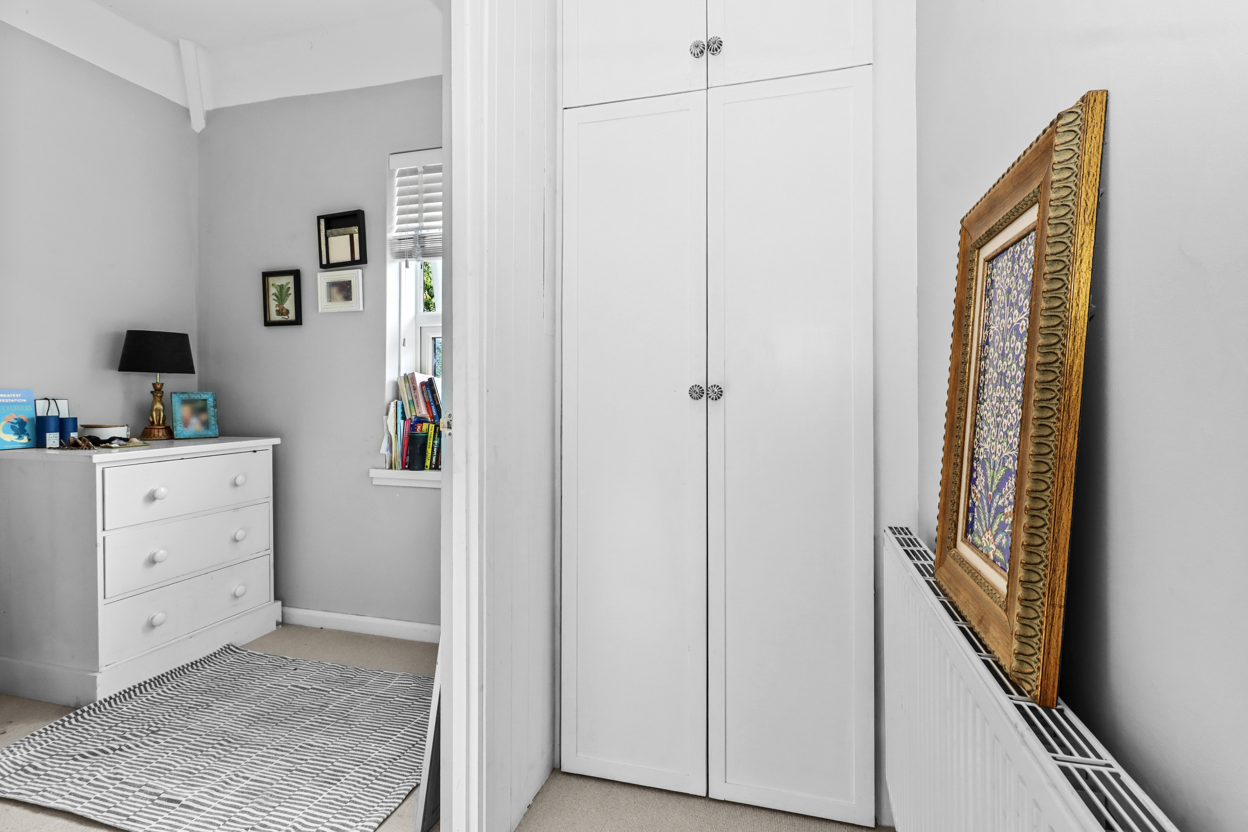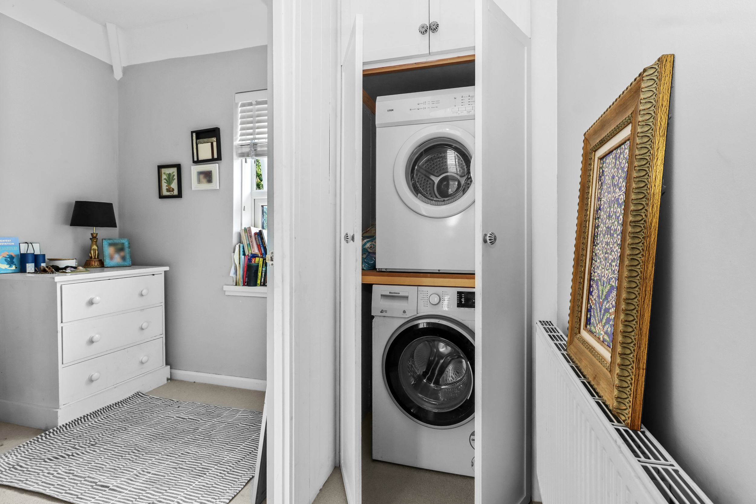 The first floor presents three well-proportioned bedrooms and a modern family bathroom. Bedroom one and bedroom two both have fitted wardrobes, while the third bedroom cleverly incorporates a laundry cupboard, housing both the washing machine and tumble dryer.