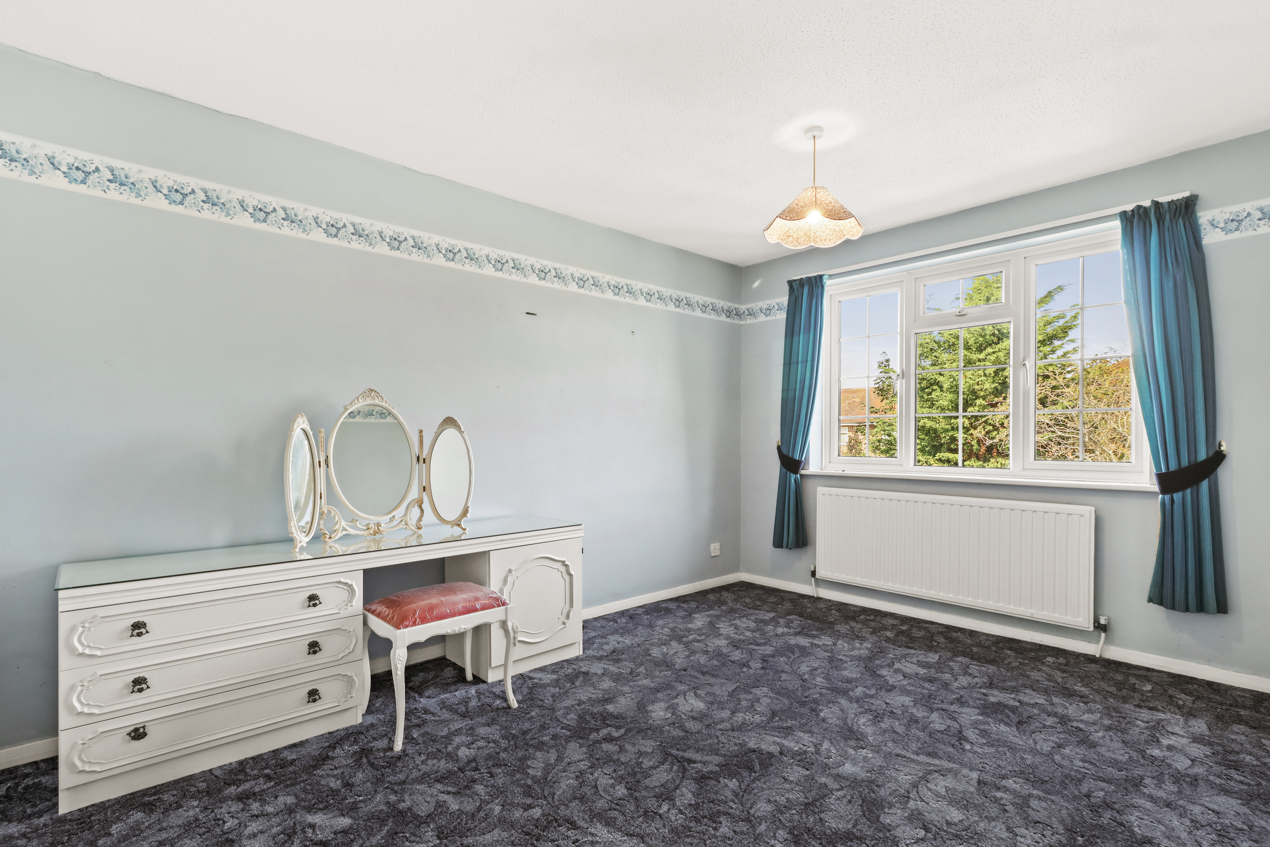 The living room is a generously proportioned space, ideal for both relaxation and entertaining. A large double-glazed window allows ample natural light to flow in, creating a bright and airy ambiance.