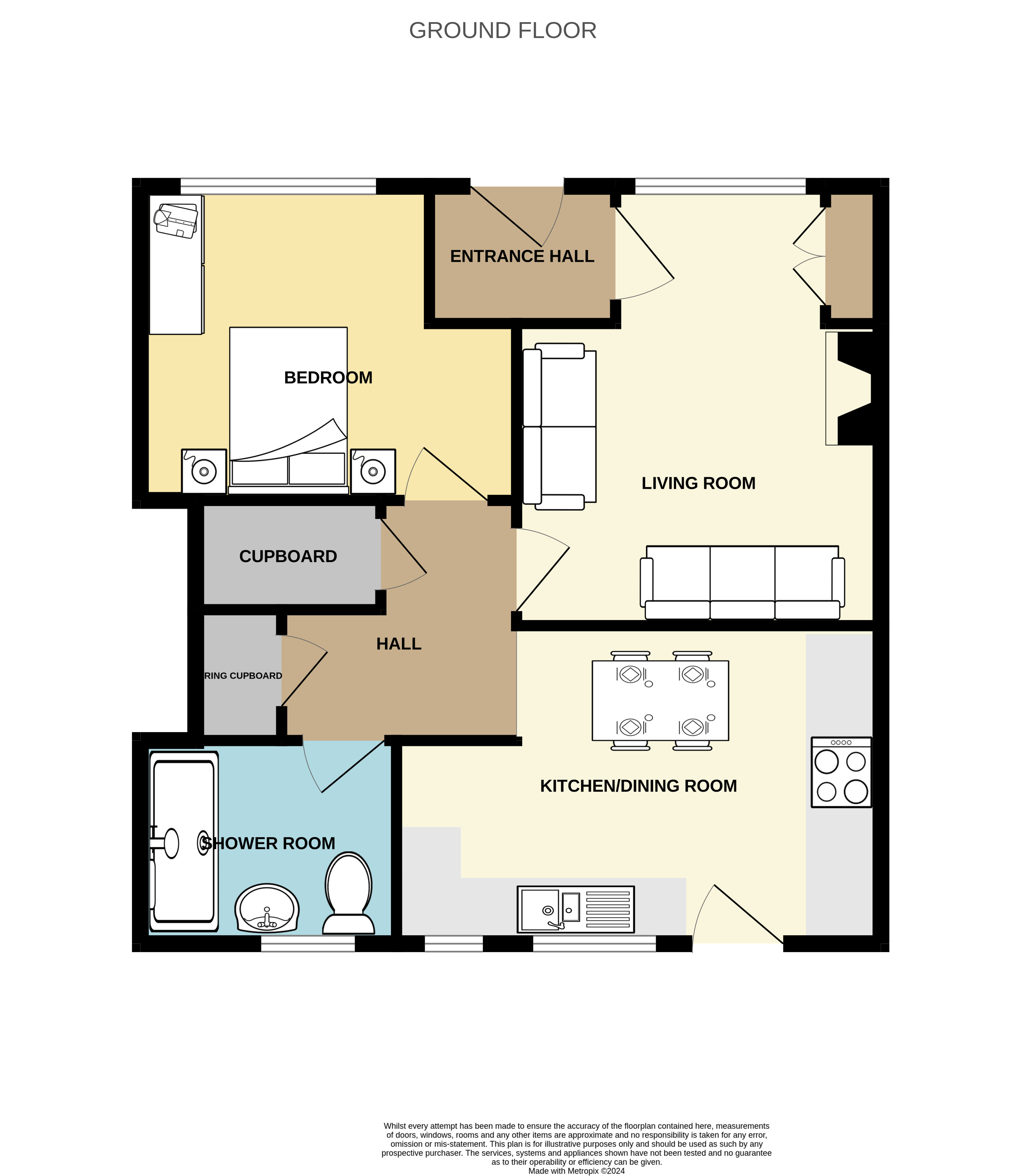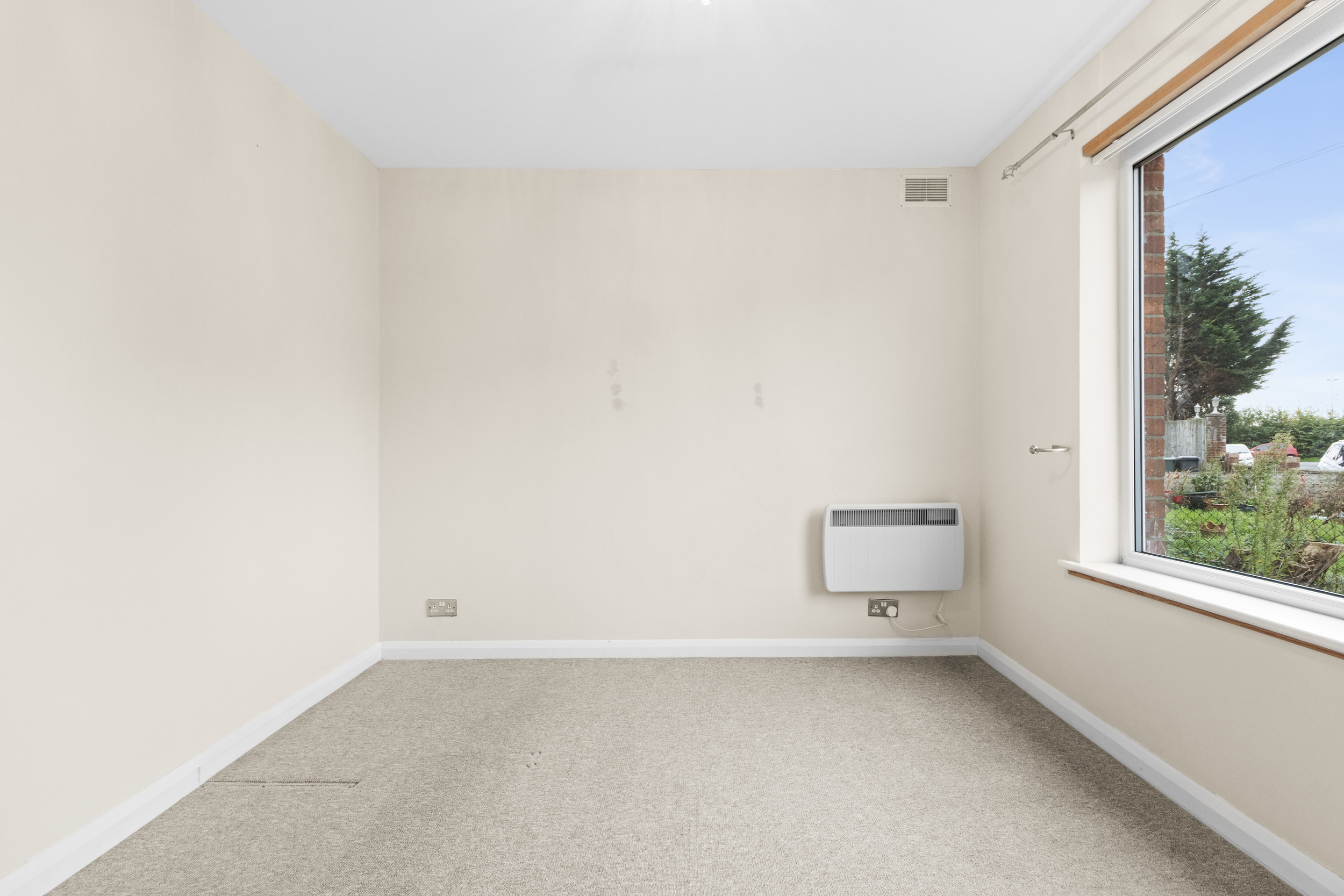 Back through the inner hall is the double bedroom, a tranquil retreat designed with comfort in mind. The double-glazed front window enhances the sense of space and light while ensuring peace and quiet. The bedroom offers plenty of room for a double bed, wardrobe, and additional furniture, making it a cosy yet functional sanctuary.