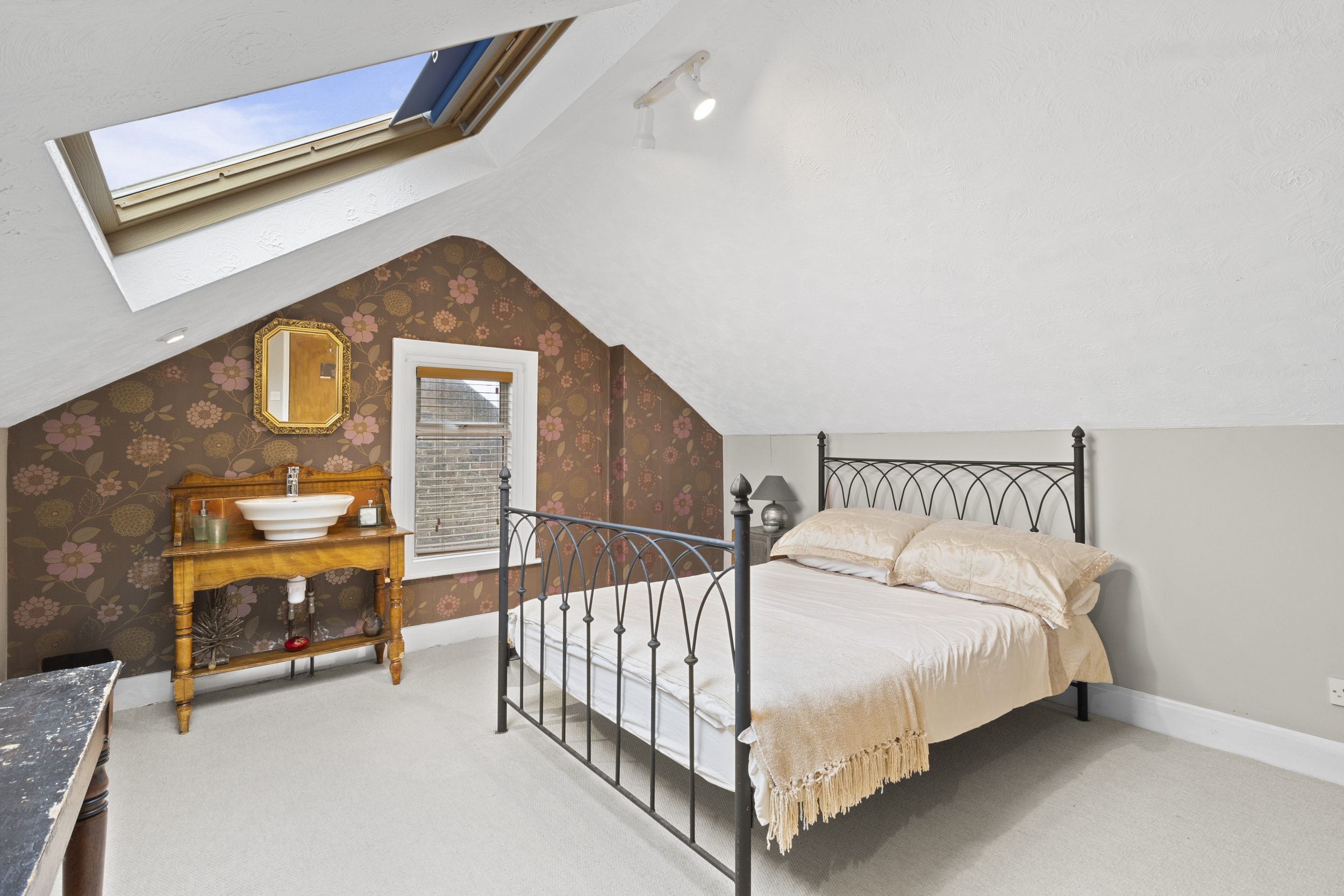 Completing the ground floor is the charming garden room, which features another beautiful fireplace. Sliding patio doors provide direct access to the rear garden, seamlessly blending indoor and outdoor living.