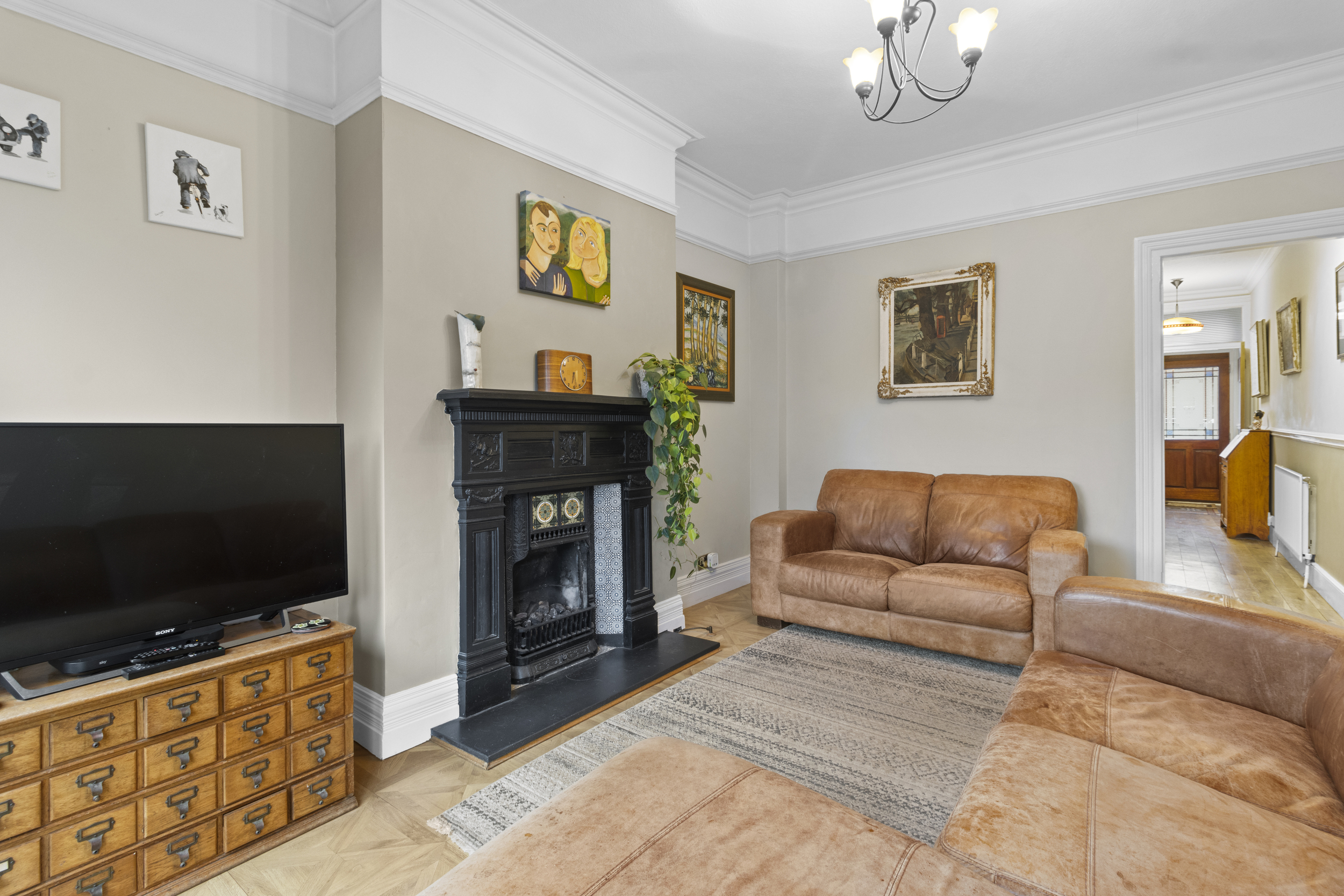 Upon entering the property, you are greeted by an internal vestibule that leads into a welcoming entrance hall. This elegant space features original period detailing and provides access to the main living areas.