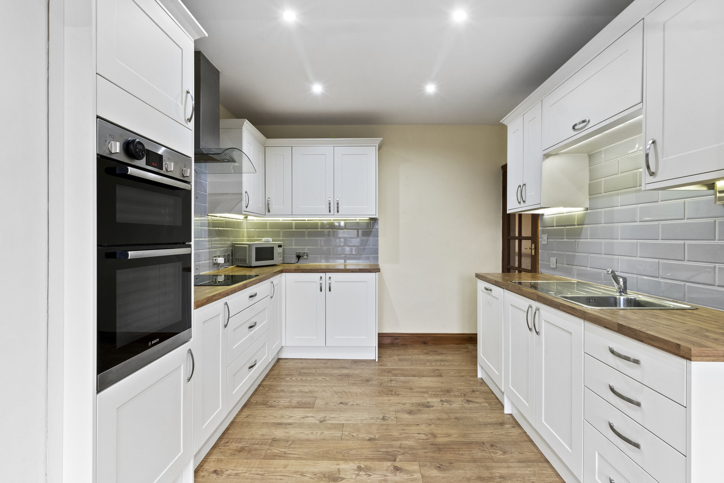 The well-appointed kitchen is a true focal point of the property, offering a range of wall-mounted and matching base units that provide ample storage and workspace. Thoughtfully designed with both functionality and aesthetics in mind, this space is perfect for those who enjoy cooking and entertaining. The kitchen also offers direct access to the stunning rear garden, seamlessly integrating indoor and outdoor living.