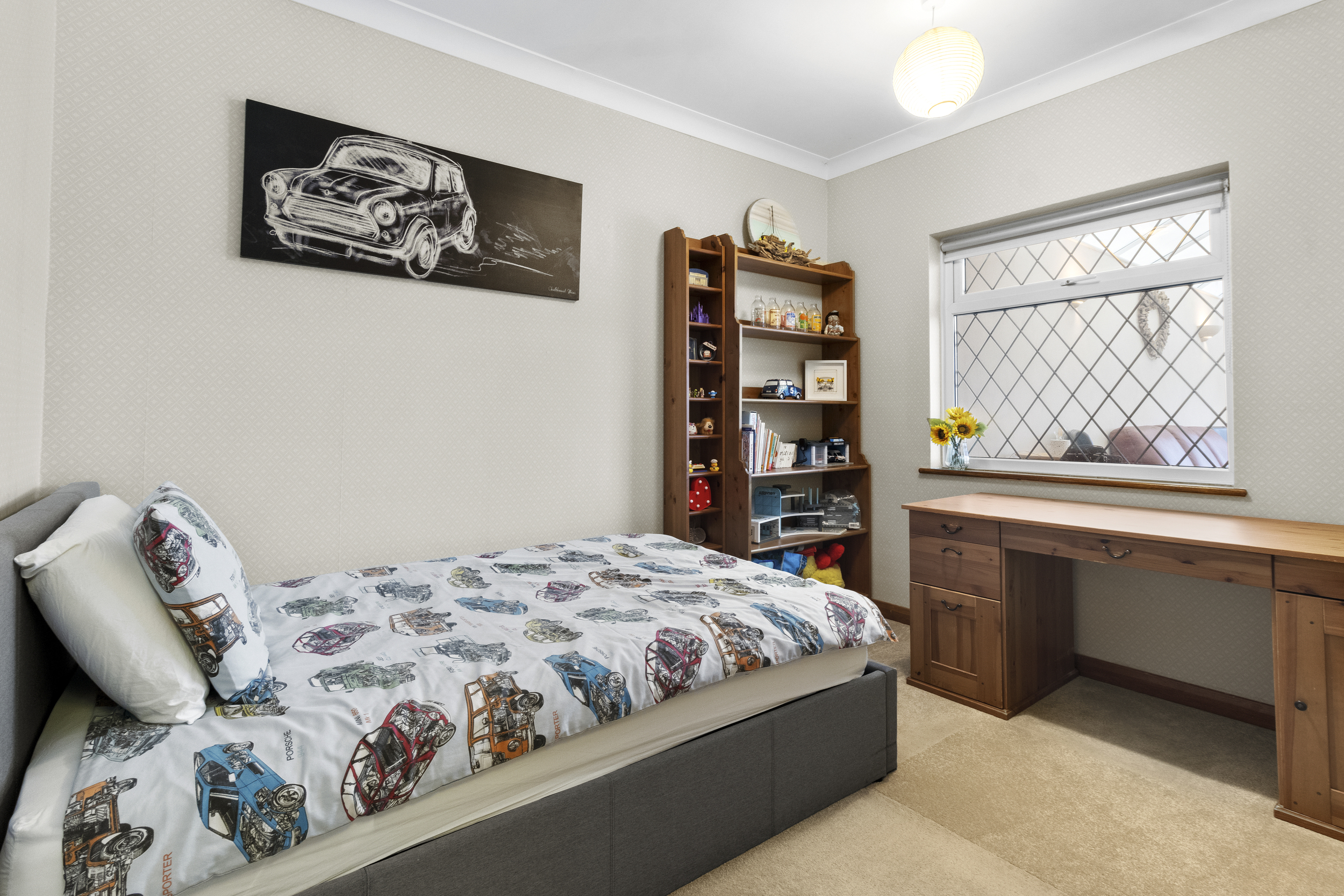 The property boasts four well-proportioned bedrooms. The principal bedroom, benefits from a stylish ensuite shower room, while bedrooms two and three are spacious doubles positioned to the side of the bungalow, whilst the main shower room has a walk in shower, wc and wash hand basin.