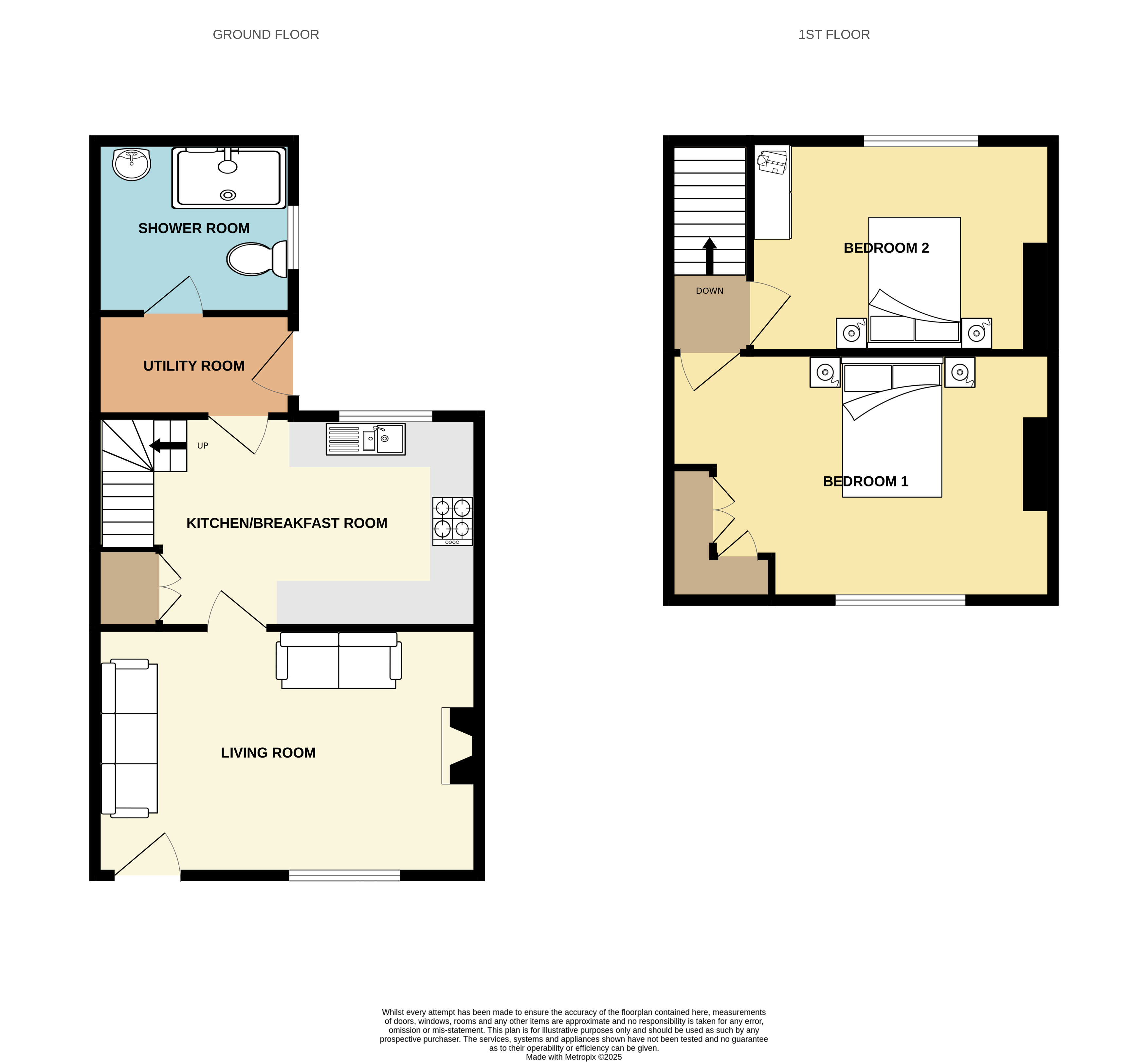 Beyond the kitchen, you’ll find a practical utility room, which offers additional storage space and room for a freestanding fridge freezer. A double-glazed rear door provides access to the garden, allowing for easy outdoor access. Adjacent to the utility room, is the modern ground floor shower room.