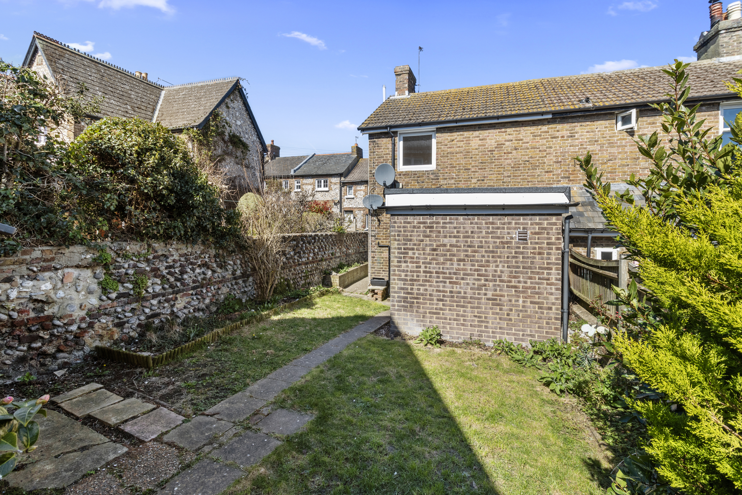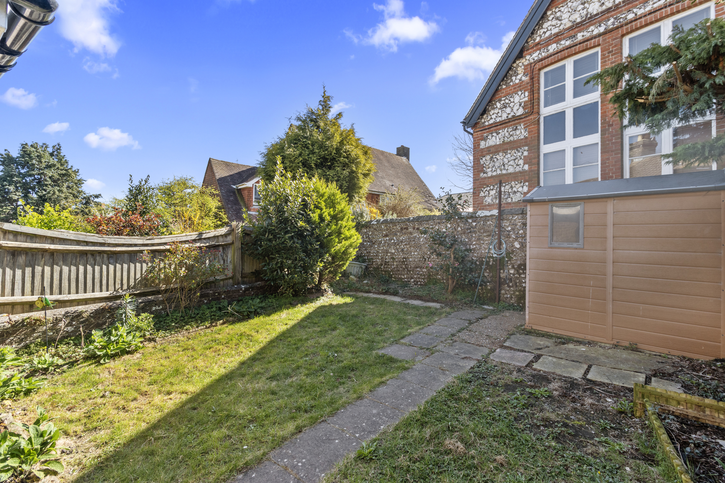 At the front, the property features a quaint and well-maintained garden, bordered by a charming brick wall, enhancing the home’s kerb appeal.