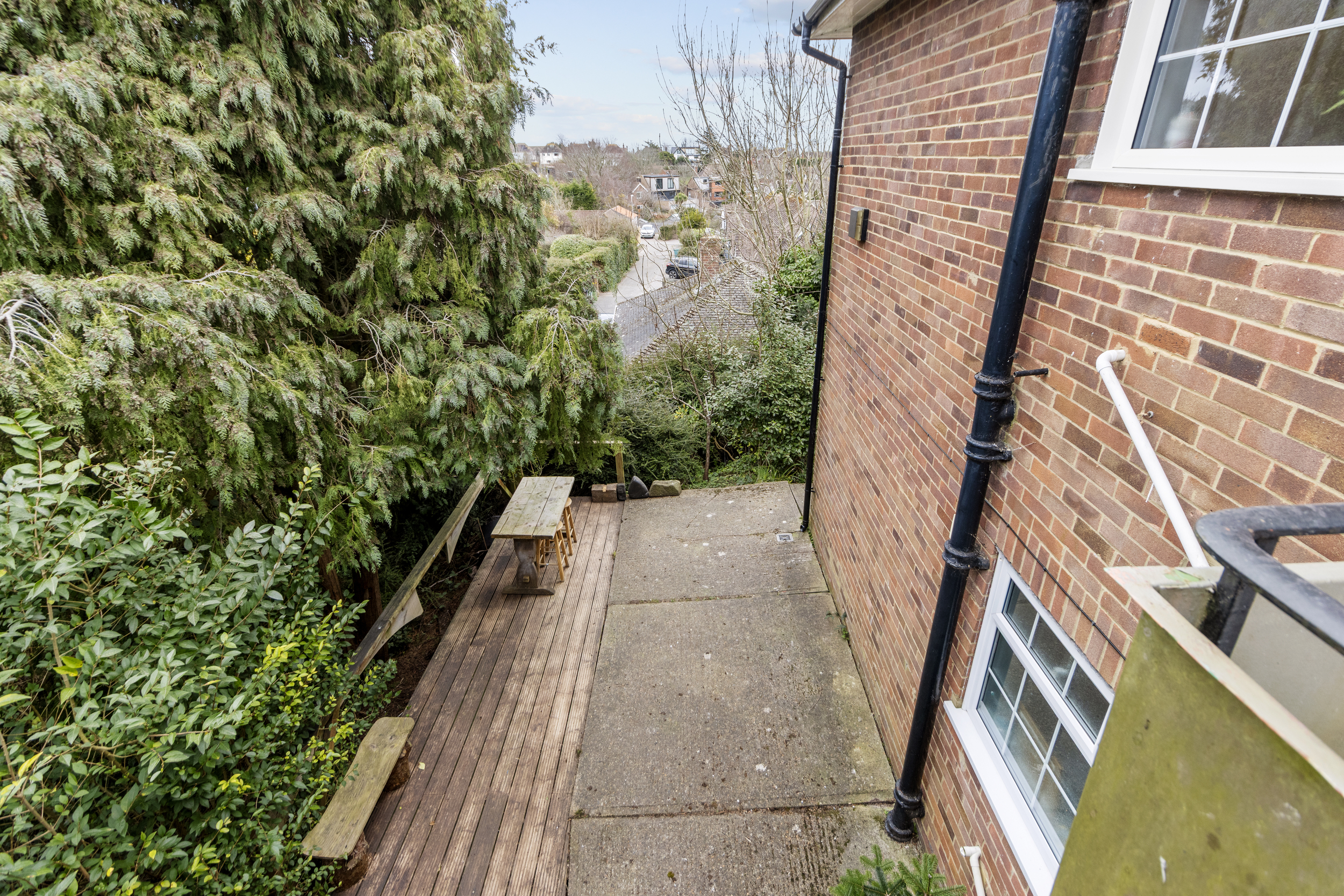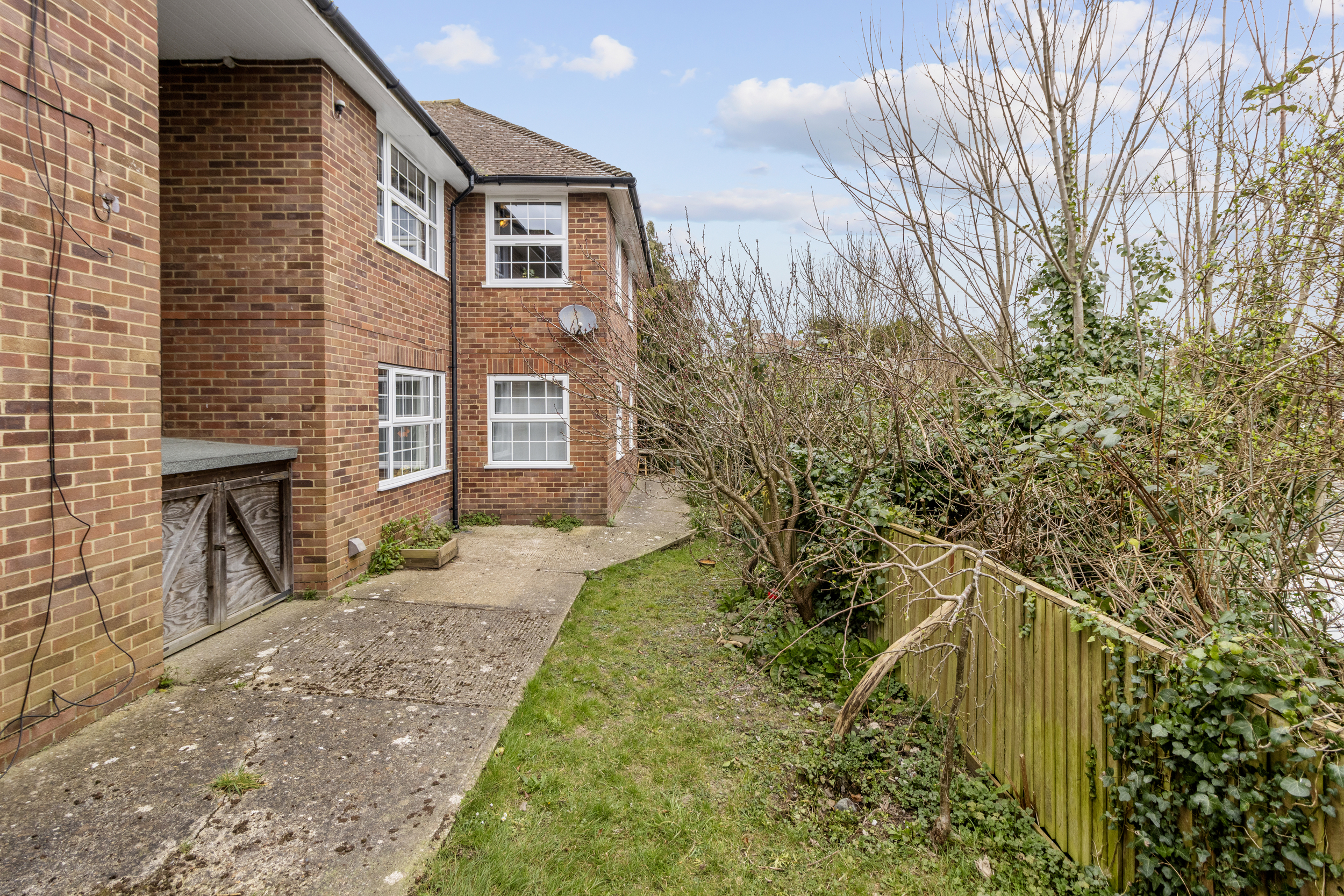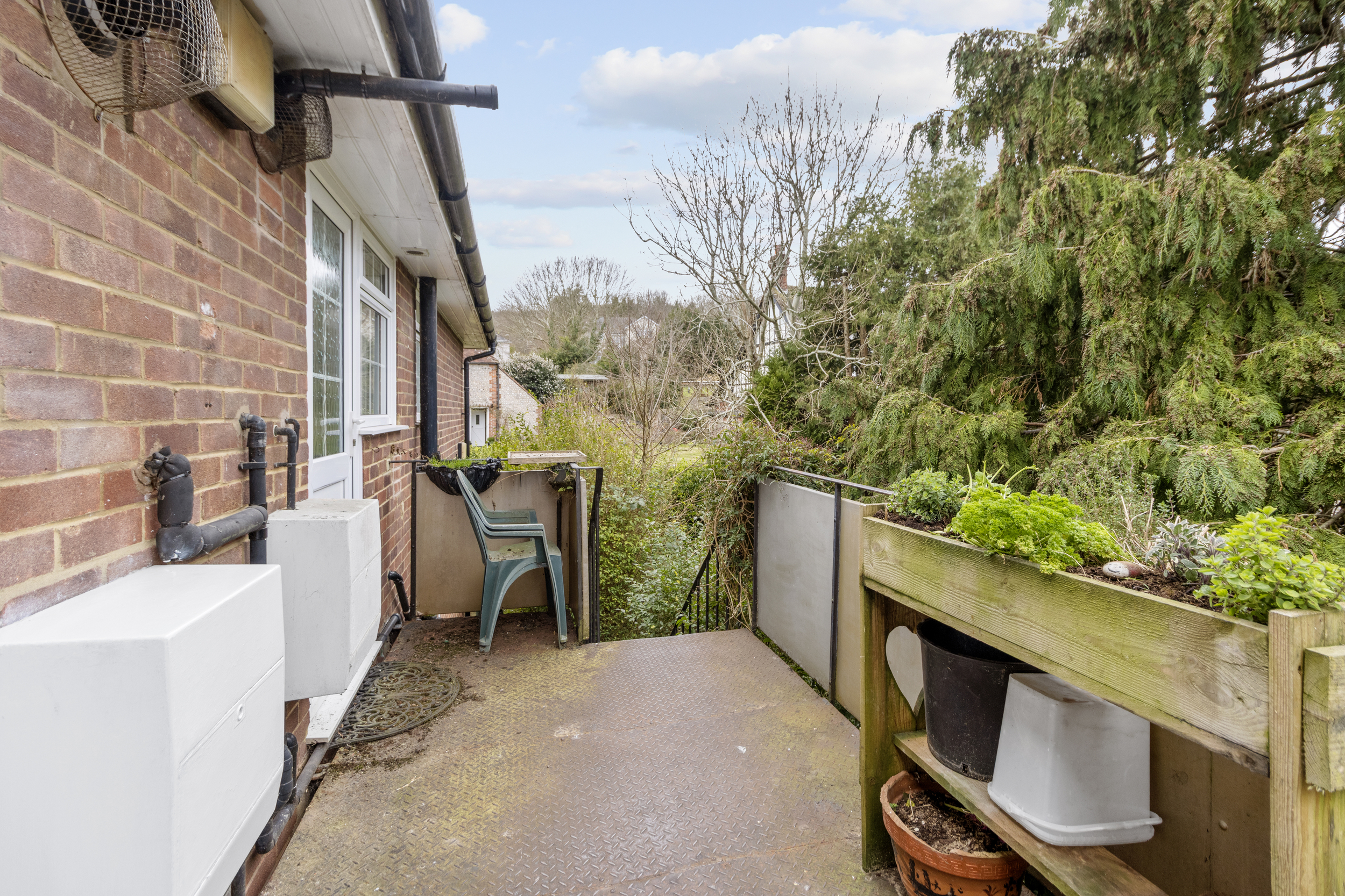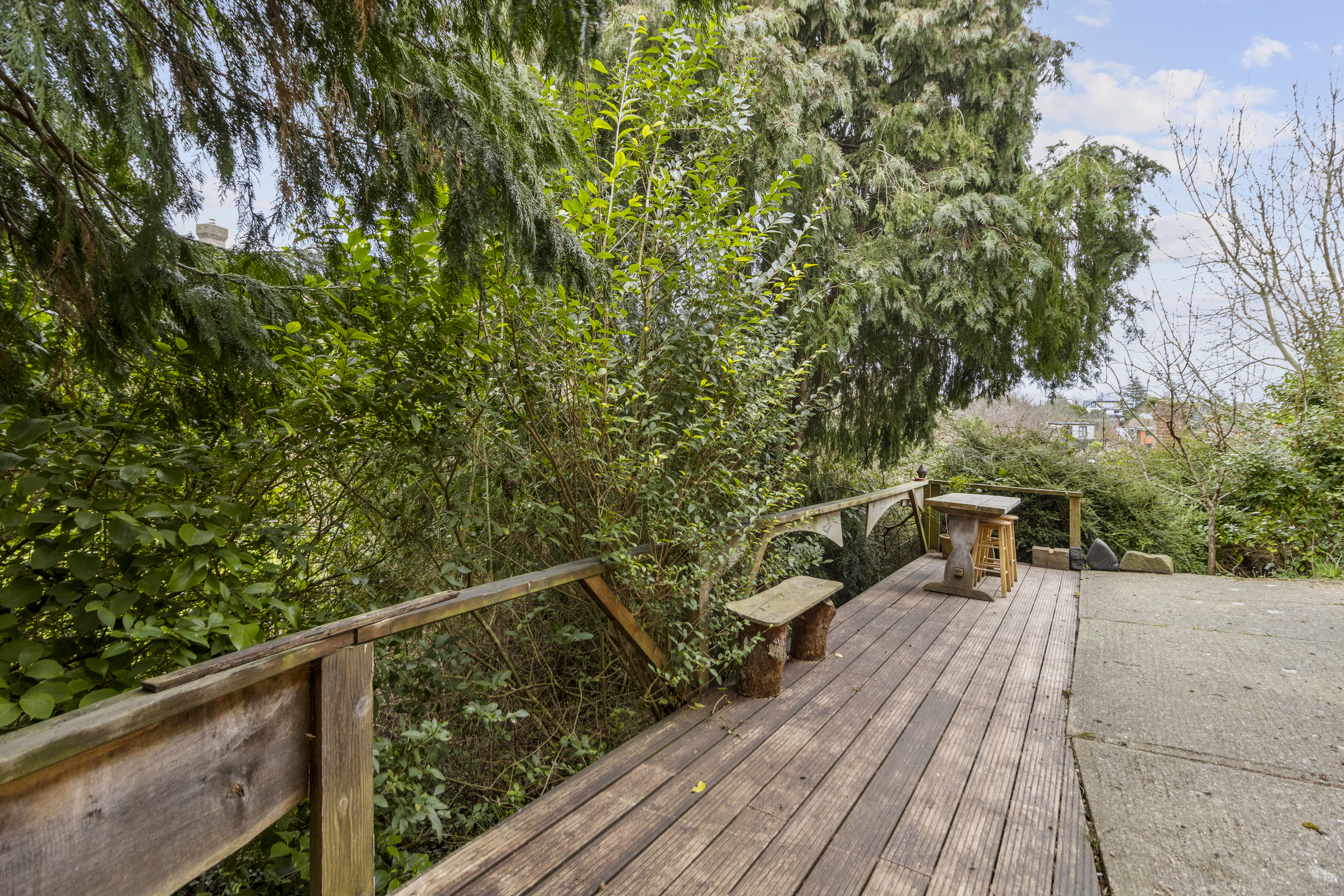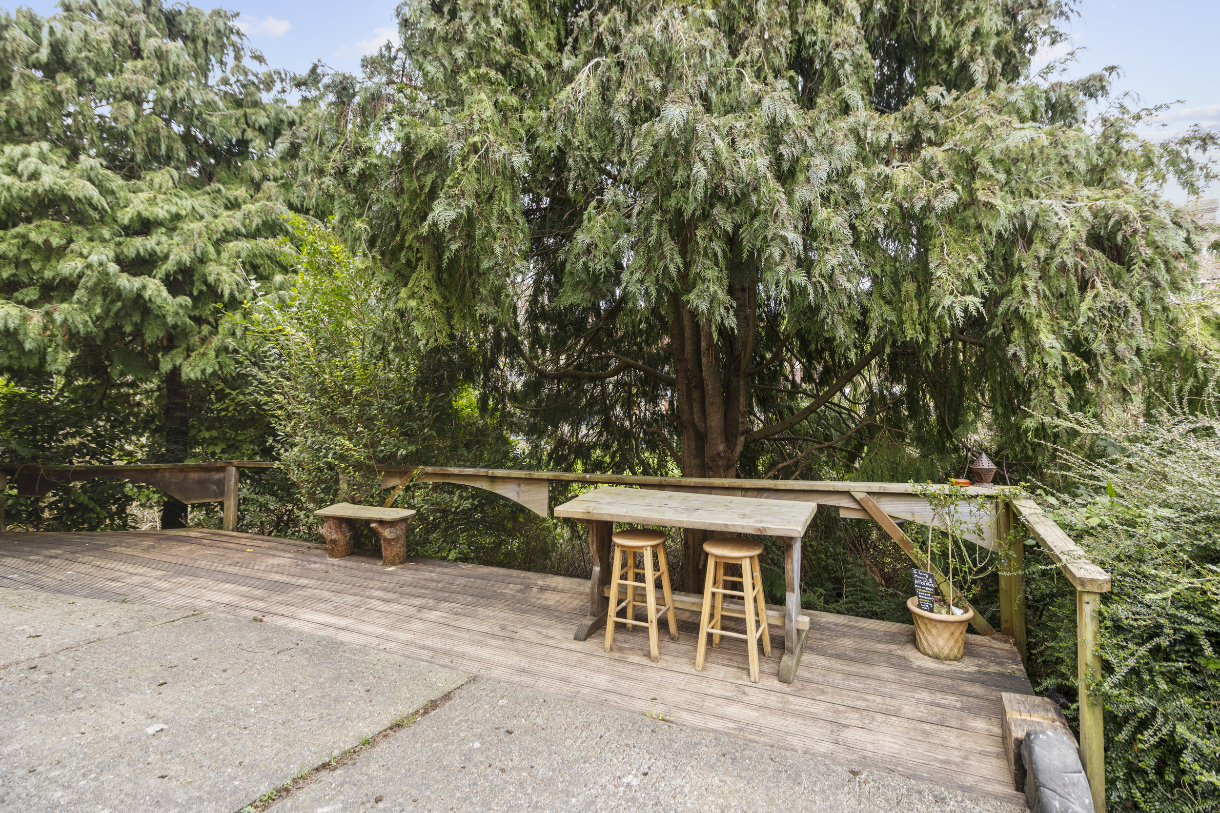 One of the most appealing aspects of this home is its access to beautifully maintained communal gardens. These outdoor spaces are a true delight, featuring a variety of settings to enjoy, including a hard-standing seating area, a wooden deck, and a sloped grass and tree-lined section. While slightly overgrown in places, this area provides a natural and peaceful escape, perfect for those who appreciate greenery and the chance to explore a more untamed outdoor space.
