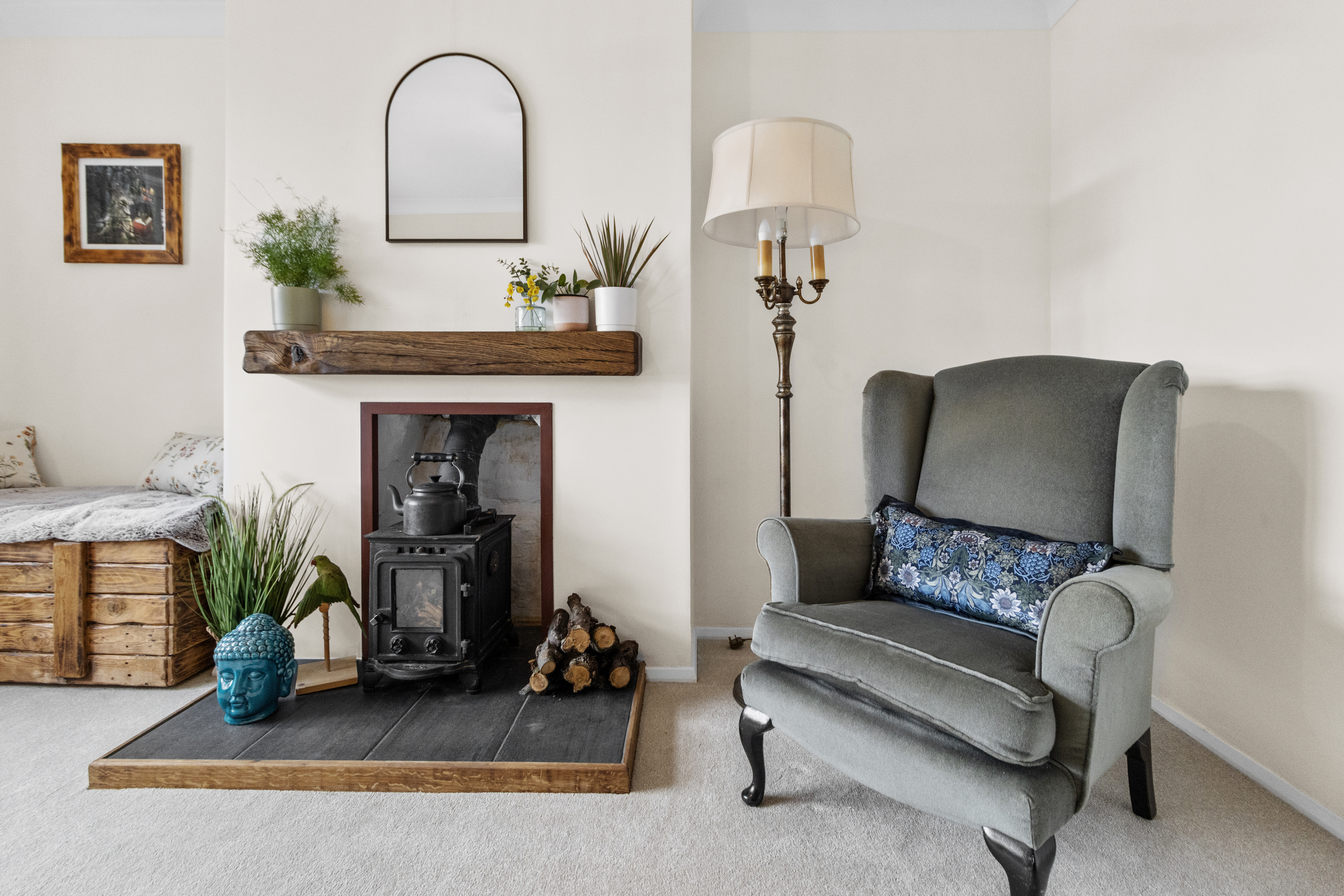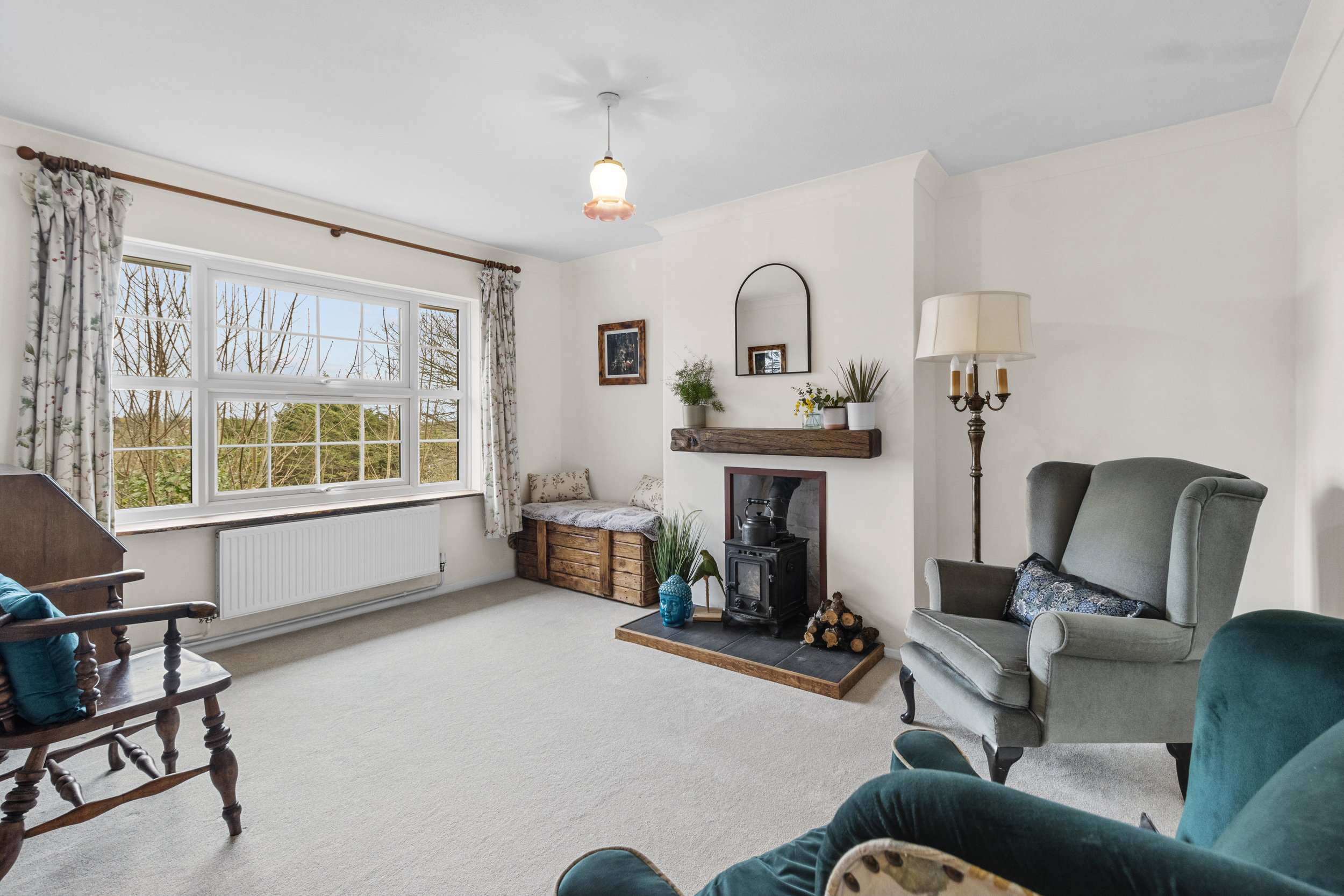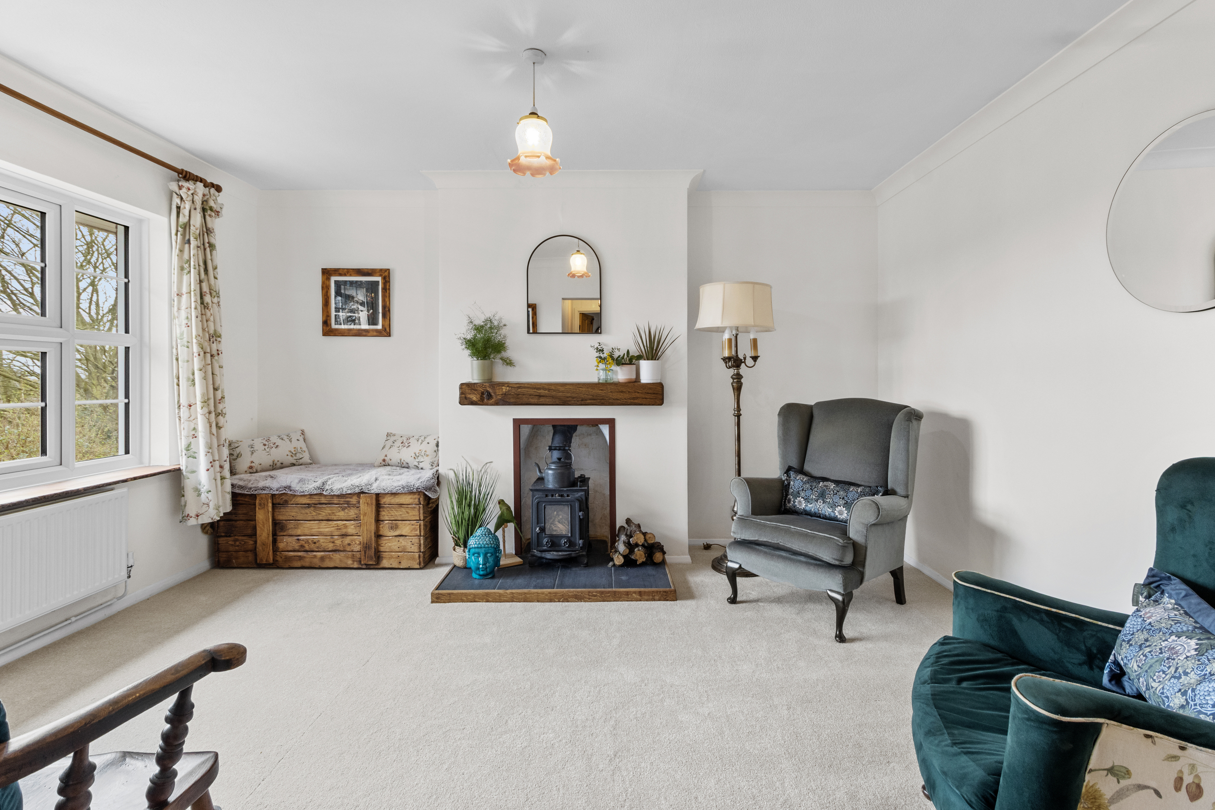 As you step into the well-maintained communal entrance hall, a staircase leads up to the first floor, where the flat’s private entrance welcomes you into a wonderfully spacious living and dining area. This inviting space is filled with natural light and enjoys delightful views to the rear, enhancing the overall sense of peace and relaxation. A standout feature of this room is the charming log burner, which adds warmth and character, making it an ideal spot to unwind on cooler evenings. The generous proportions of the room allow for a versatile layout, comfortably accommodating both a cosy lounge area and a dining space for entertaining guests.