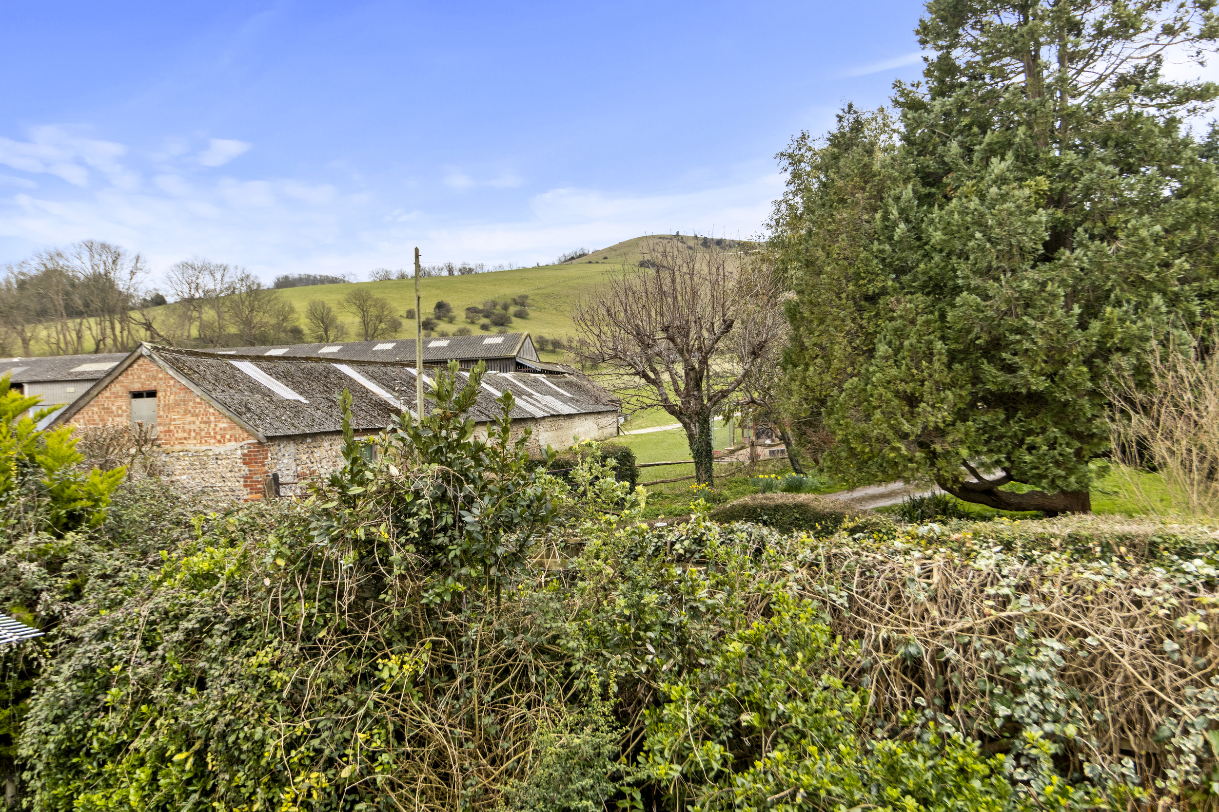 The rear garden is fully paved, creating a low-maintenance outdoor space ideal for alfresco dining, gardening enthusiasts, or simply enjoying the tranquillity of the countryside setting. Mature hedge borders add privacy and a charming aesthetic, while a potting shed offers practical storage for garden tools and equipment. The property also benefits from side access, ensuring ease of movement around the home.