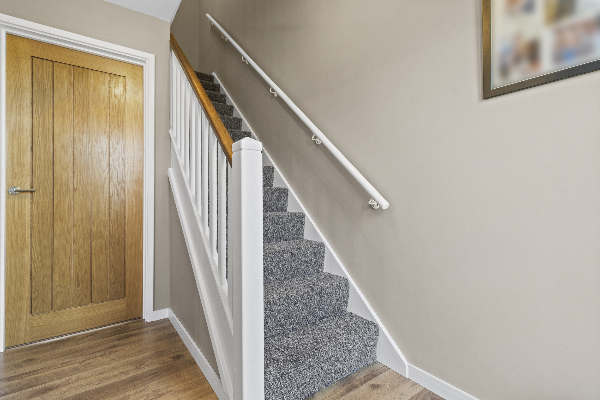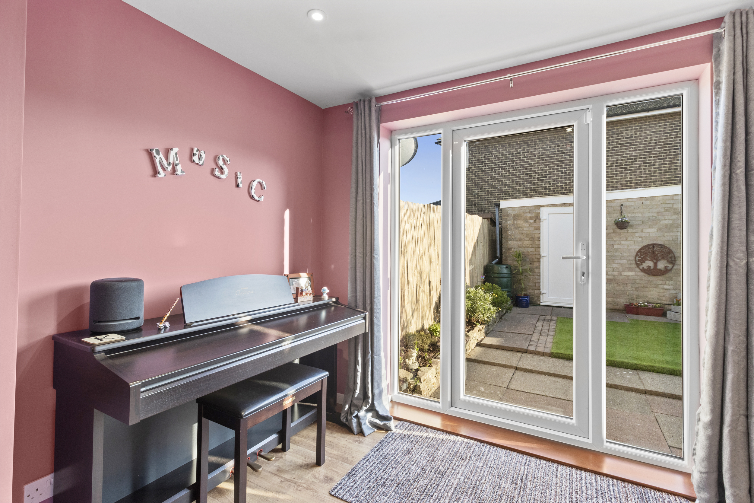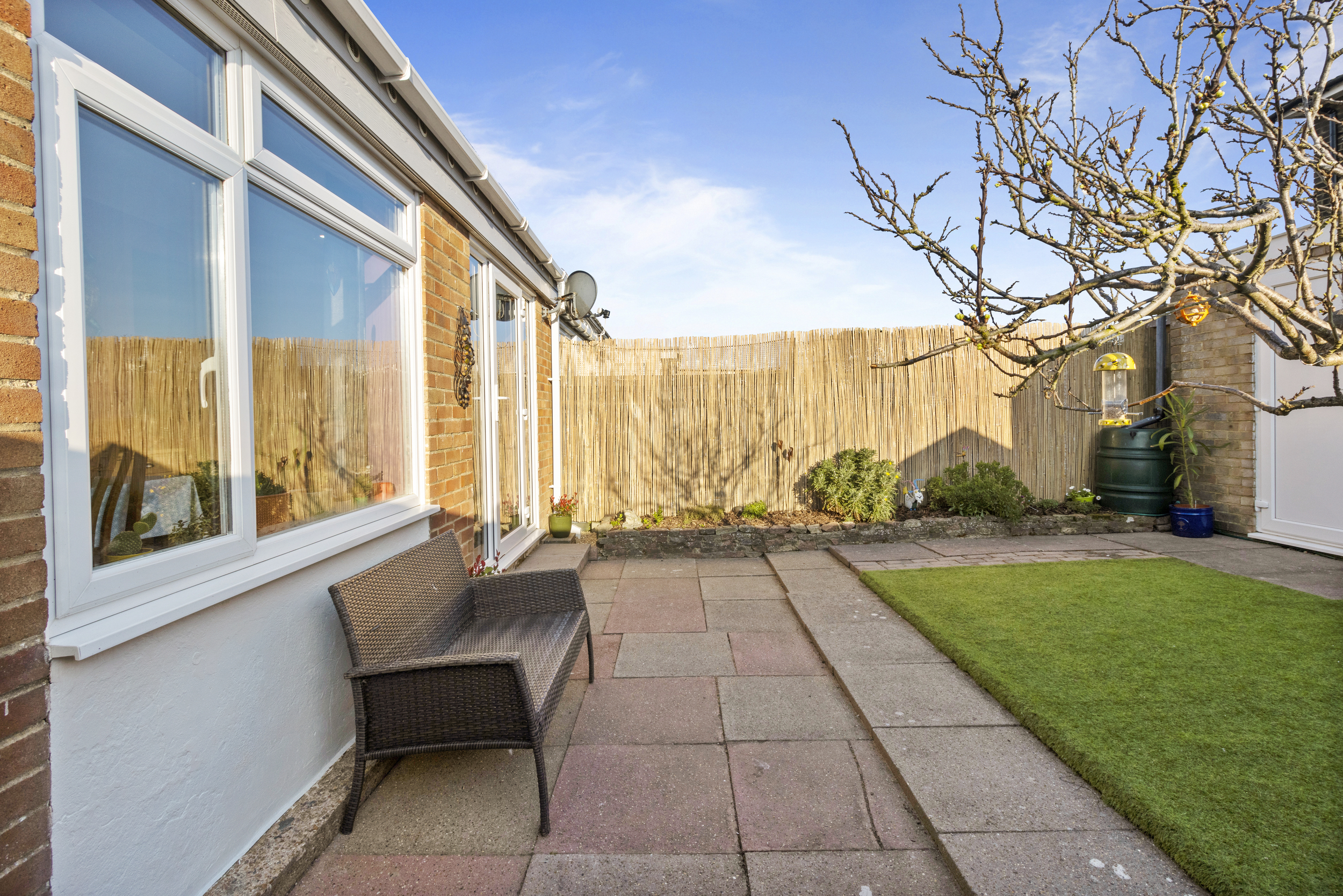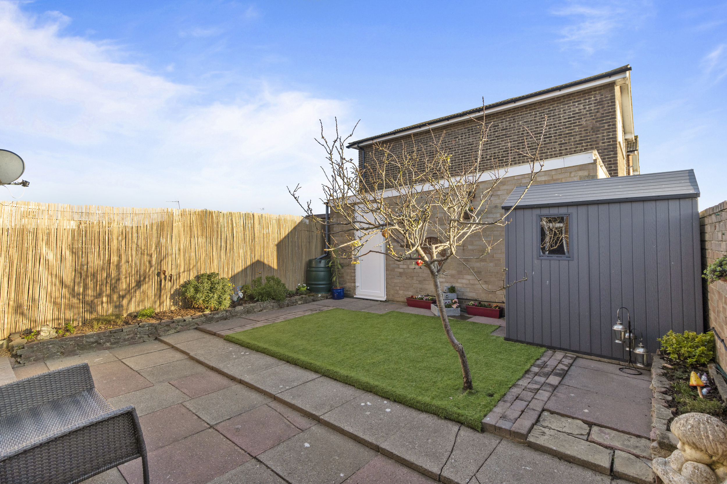 Externally, the property boasts a well-maintained front garden, featuring a newly laid lawn and a charming pathway leading to the front door. The rear garden is fully enclosed, providing a private and secure outdoor retreat. Thoughtfully designed for minimal maintenance, it features a paved patio area, ideal for outdoor dining and relaxation, which leads to an astro-turfed section, offering a vibrant and practical green space. The added benefit of side access enhances convenience, while a door leads directly into the garage.