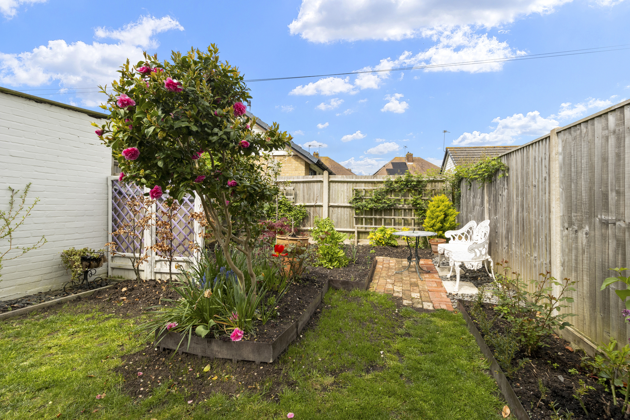 Externally, the property offers just as much appeal. To the front, a brick-blocked driveway provides convenient off-road parking, while a neat garden area with flower and shrub displays adds a splash of colour and kerb appeal. Gated side access leads to the rear garden—a real highlight of this home. Fully enclosed and well-maintained, the garden features a spacious patio area perfect for outdoor dining or relaxing, an area of lawn ideal for children or pets to enjoy, and a charming vegetable patch for those with green fingers. A brick-built storage shed offers additional practicality and storage space.