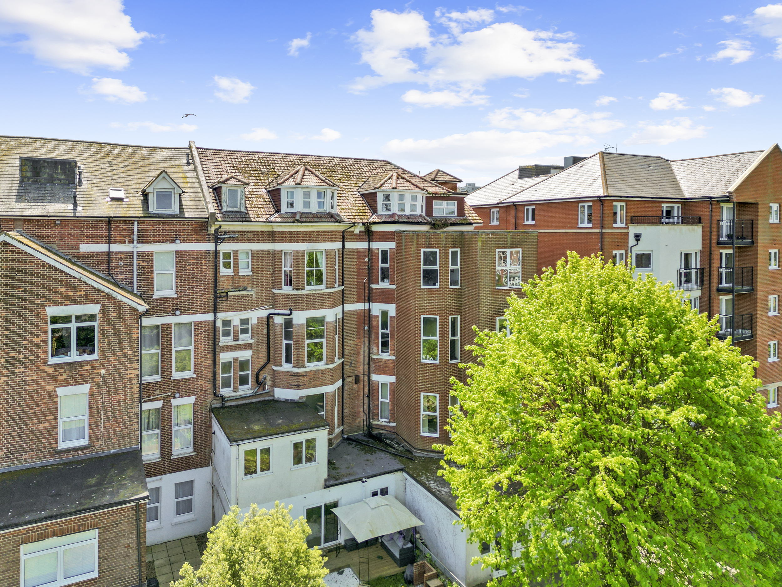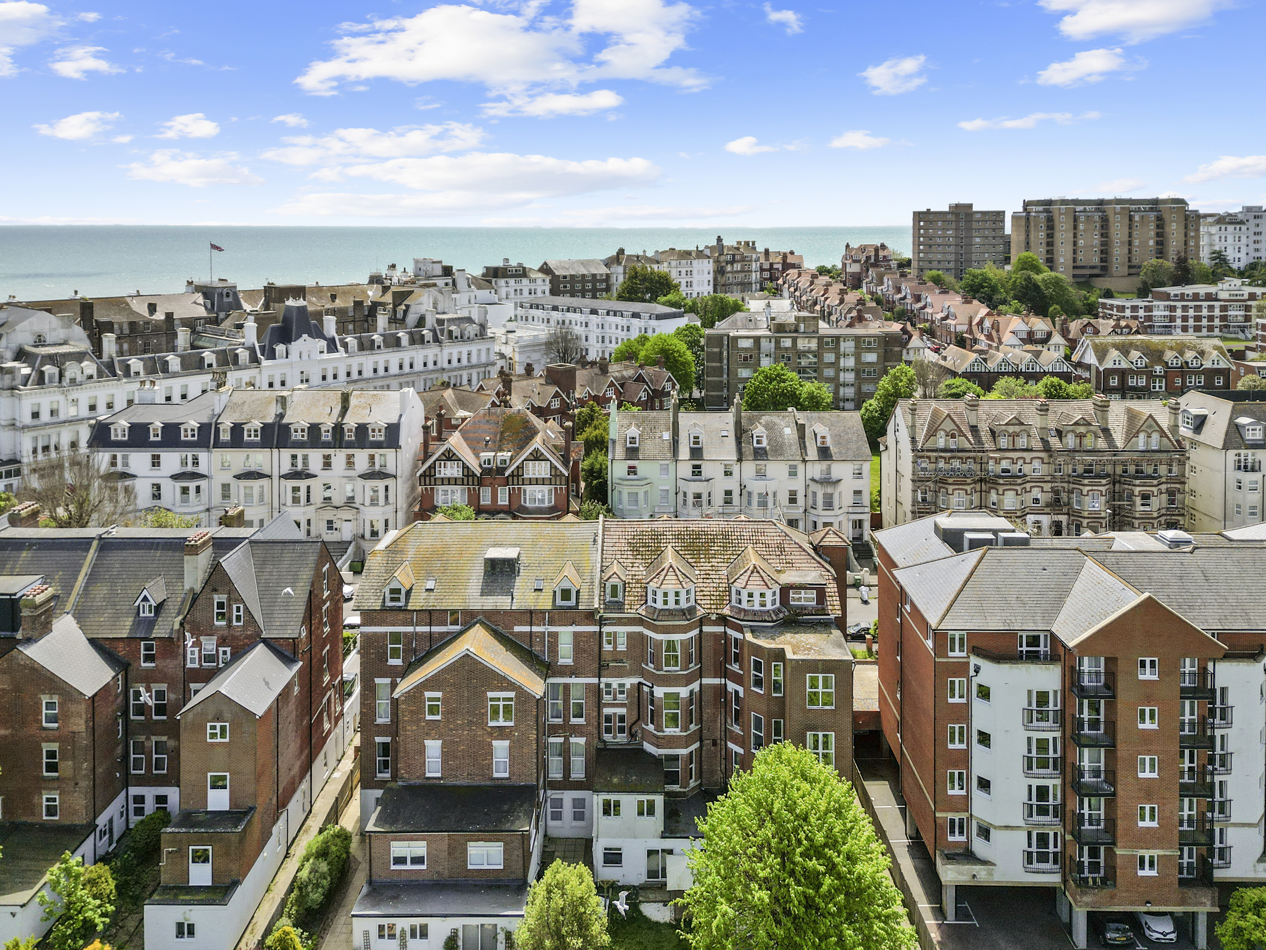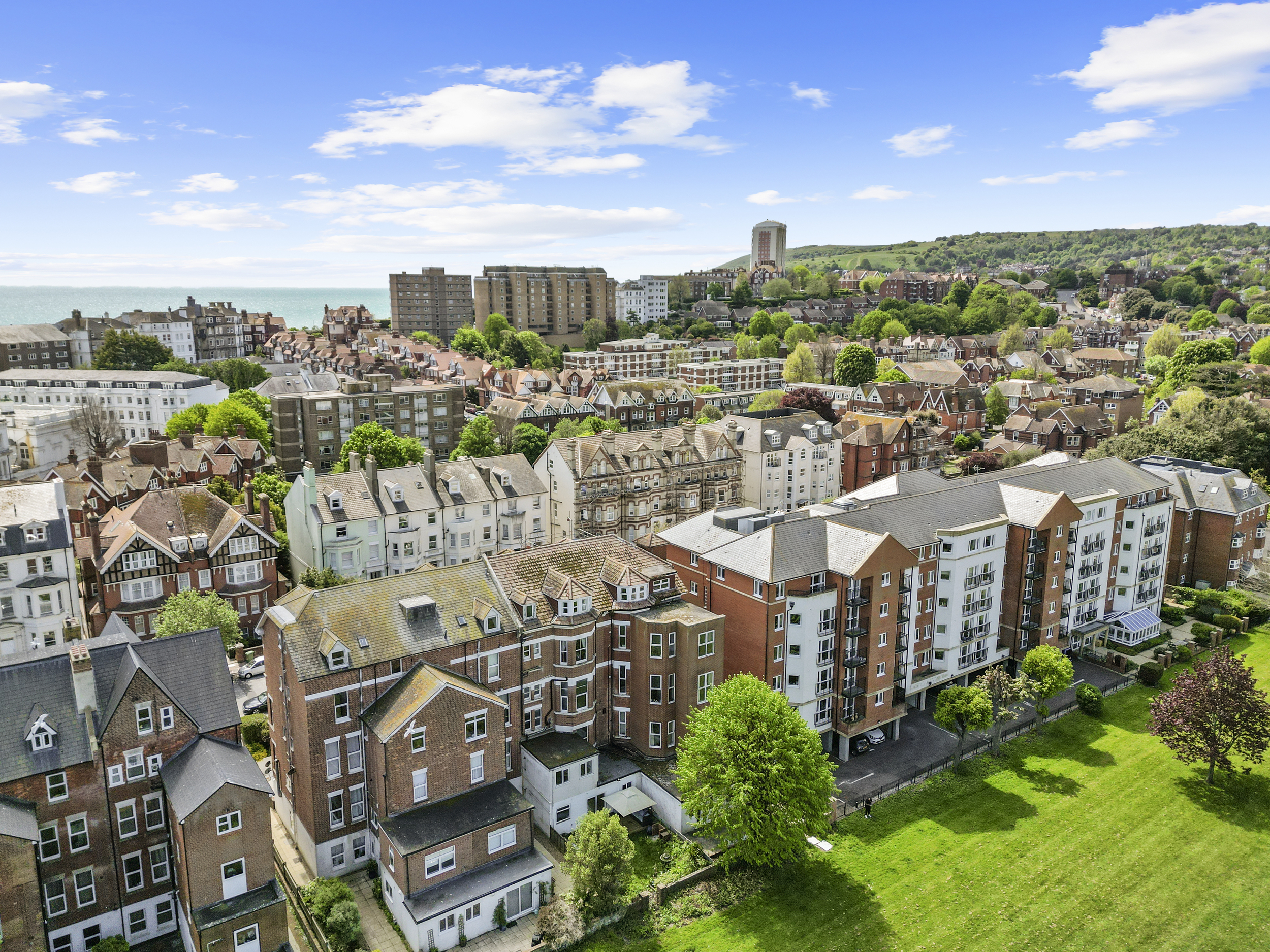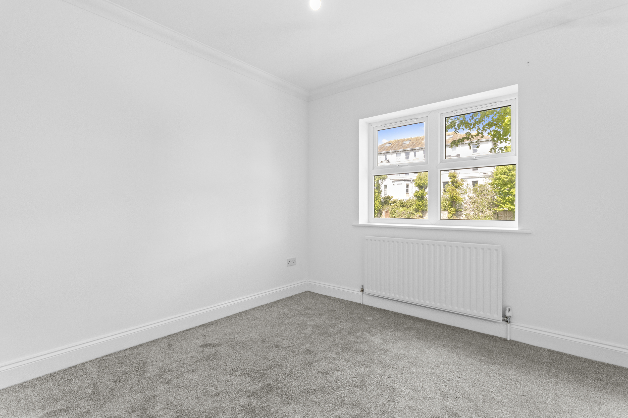 Externally, the property truly excels. The private garden, accessible from the living room or a secure side gate, is laid mainly to patio, providing a low-maintenance yet attractive outdoor space that can be enjoyed year-round. It serves as a private retreat, ideal for alfresco dining or simply relaxing with a good book. Beyond this, residents also benefit from access to expansive communal gardens to the rear, beautifully maintained and bordered by mature trees. These shared grounds offer a serene setting for picnics, socialising, or simply soaking up the sun, and contribute significantly to the peaceful and green environment that characterises this part of Eastbourne.