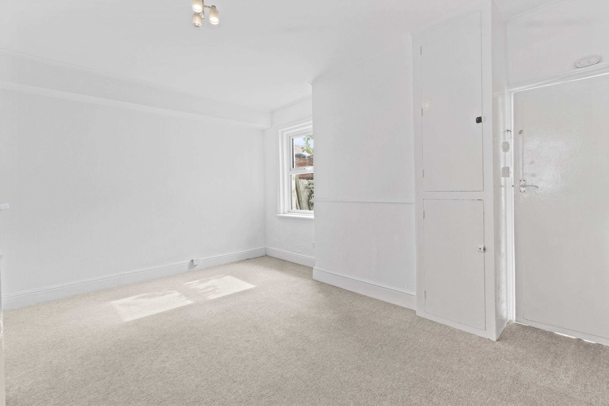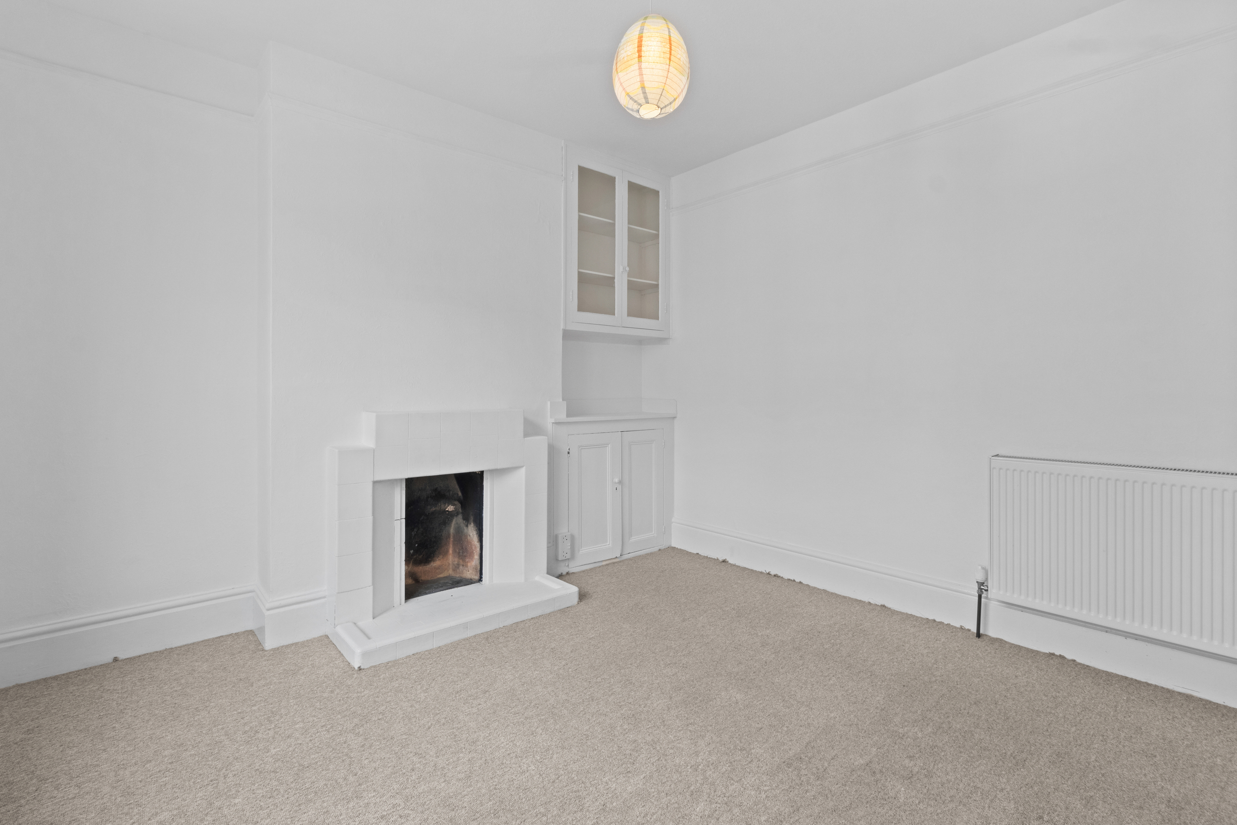 To the front of the property is a welcoming living room, well-proportioned and featuring a large window that floods the space with natural light. A feature fireplace acts as a charming focal point, adding a cosy ambiance and a touch of period charm.
