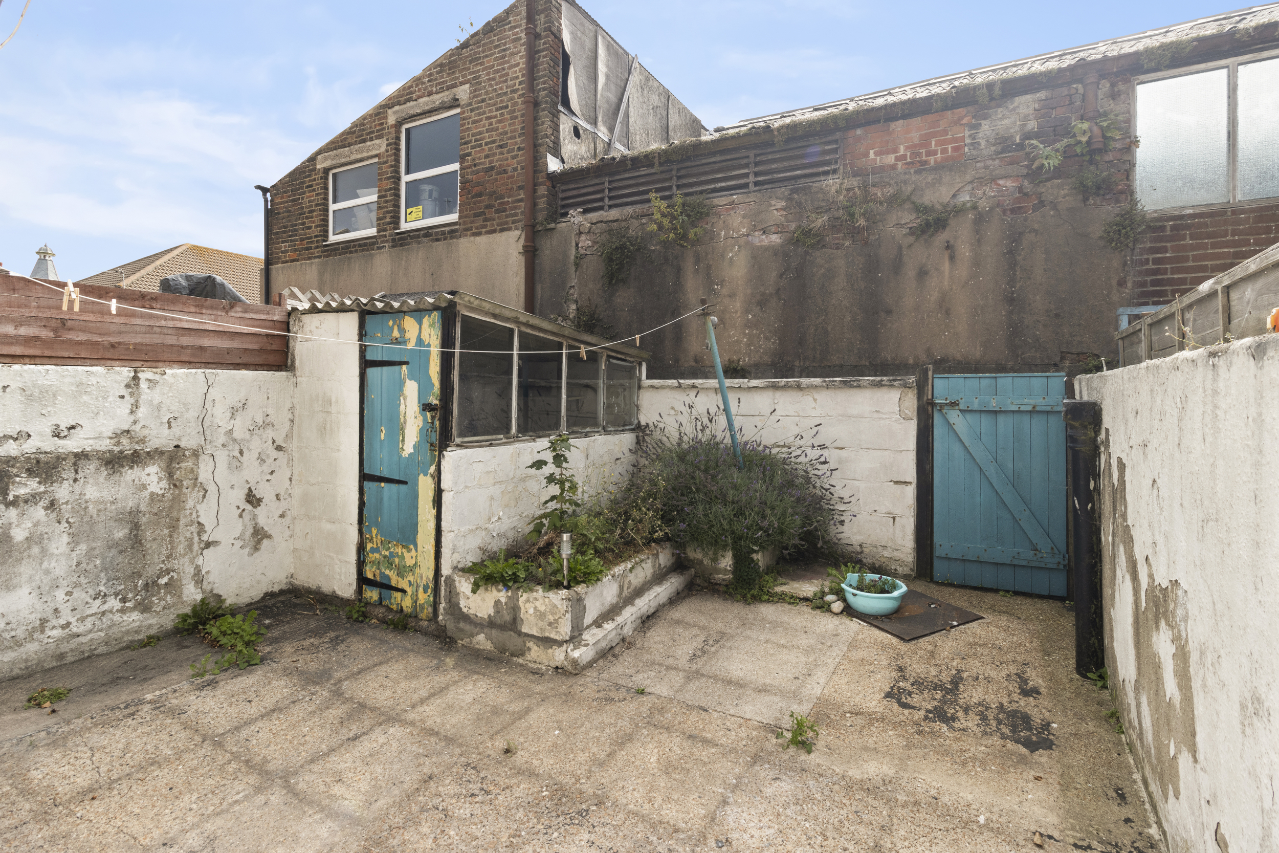 To the rear, the property boasts a fully enclosed courtyard-style garden, offering a private and low-maintenance outdoor space ideal for relaxing, dining al fresco, or even some container gardening. With a little imagination, this outdoor space could be transformed into a tranquil retreat.