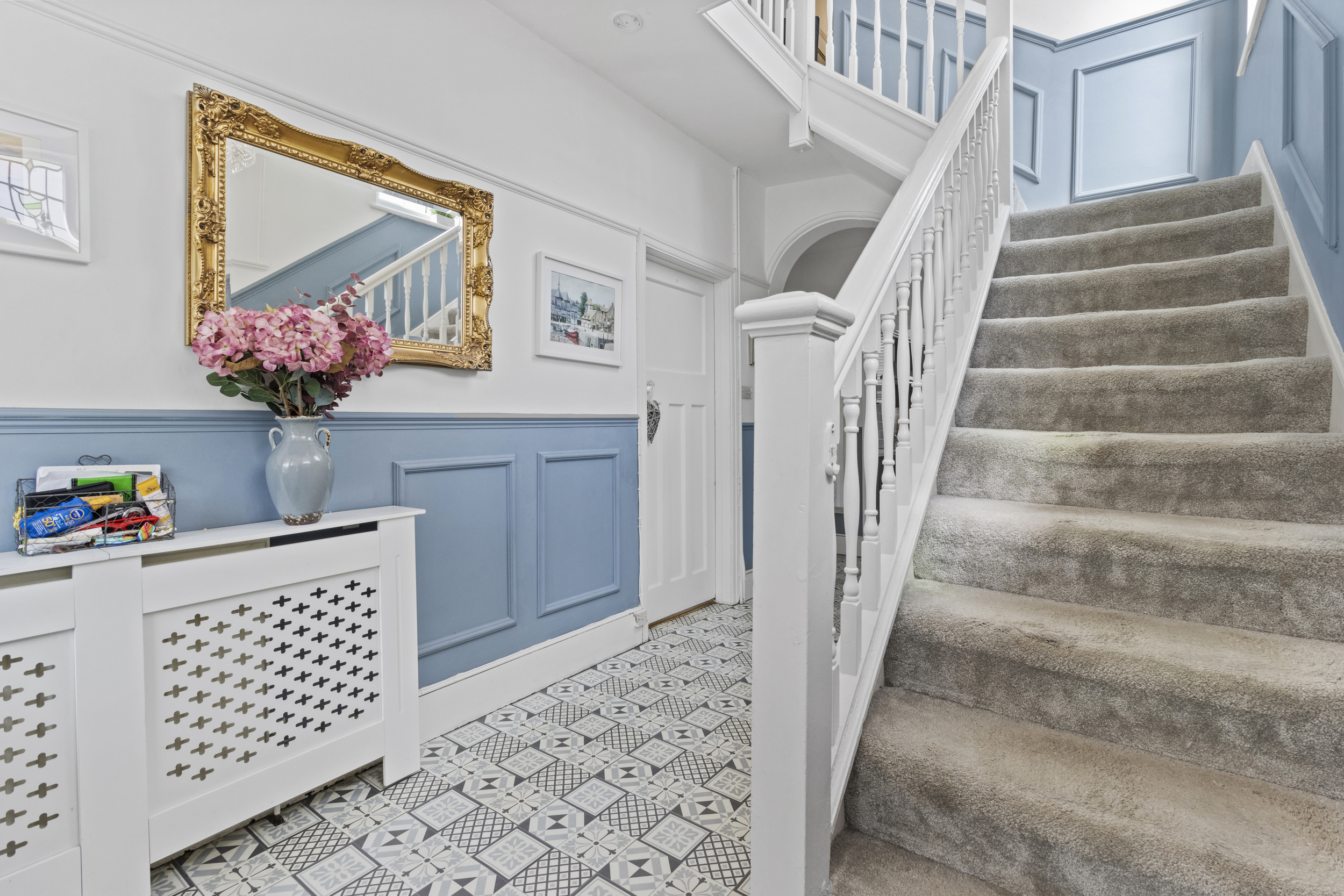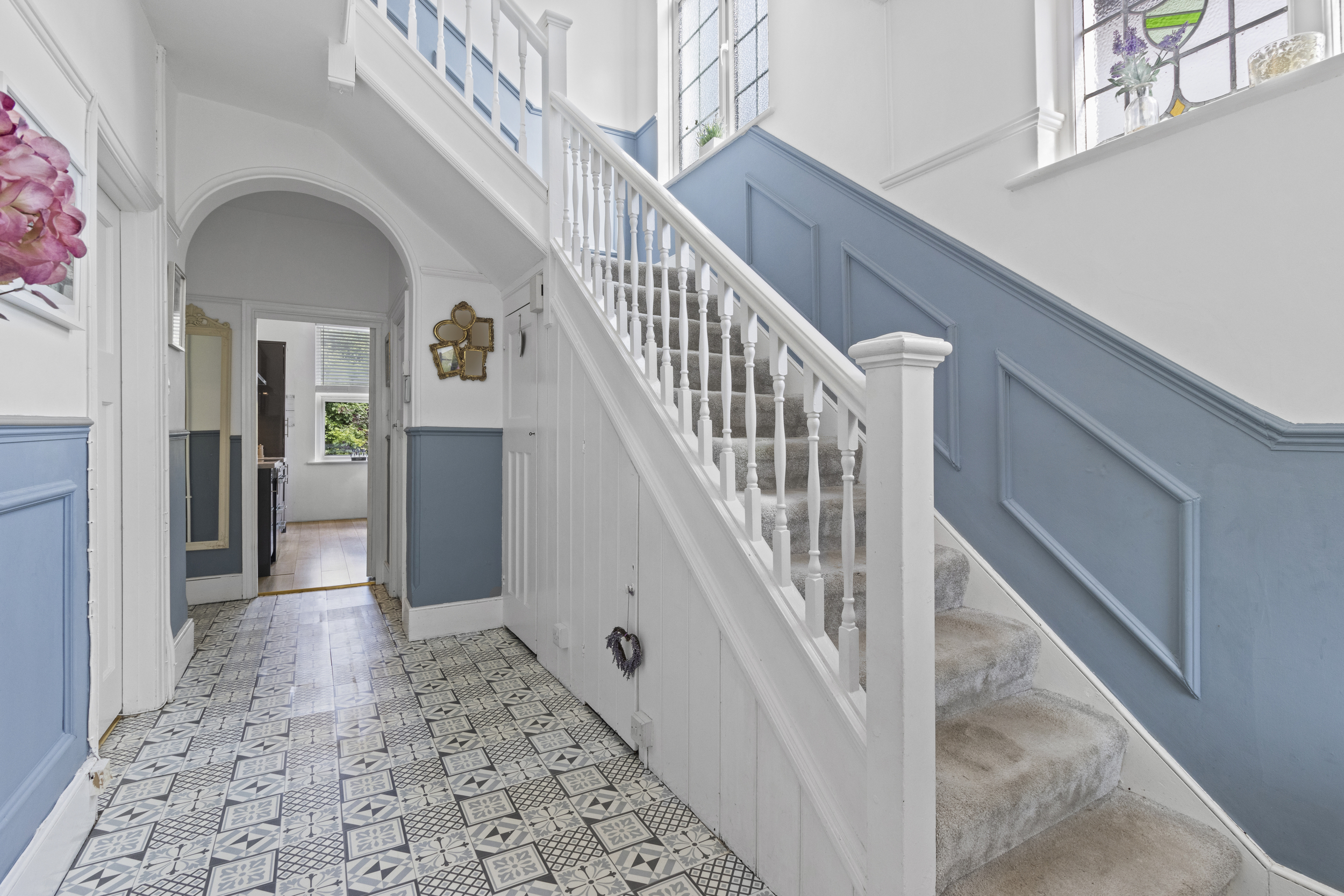 Upon arrival, a welcoming storm porch provides shelter and a charming first impression, leading into a bright and spacious entrance hall. The entrance hallway immediately sets the tone, offering a warm and inviting atmosphere with ample room for coats, storage furniture, and movement throughout the ground floor.