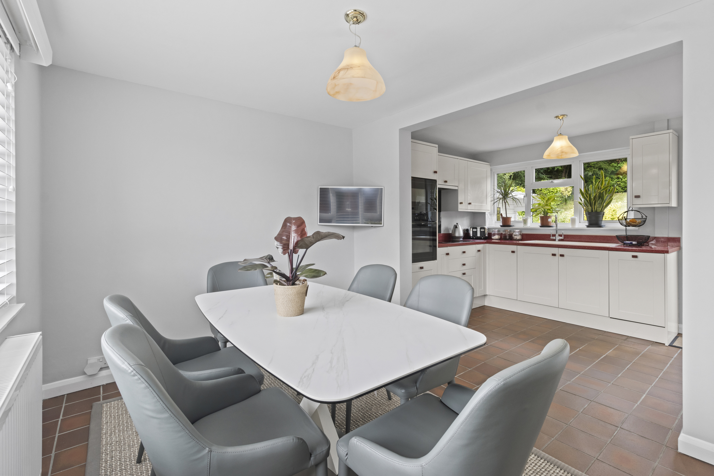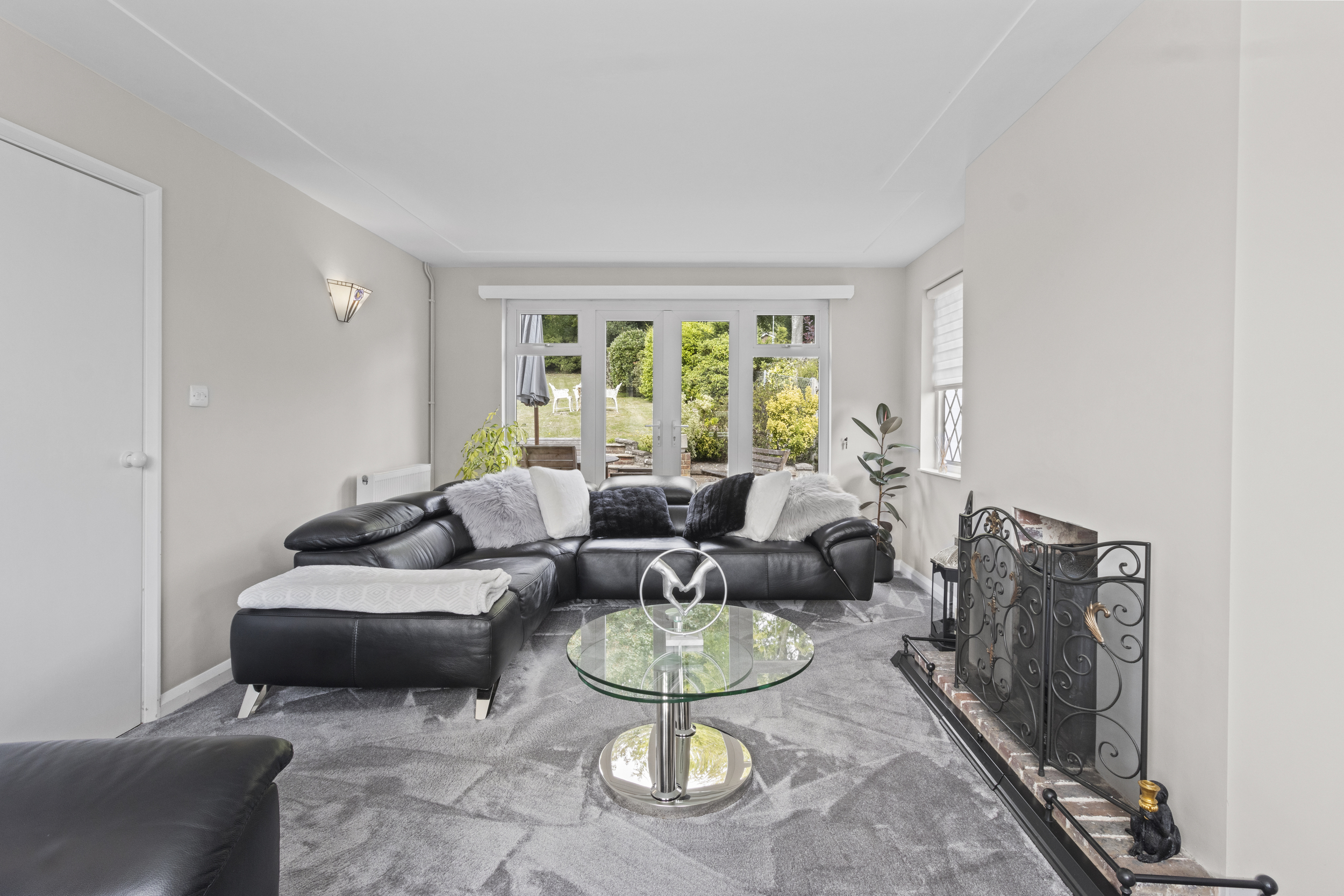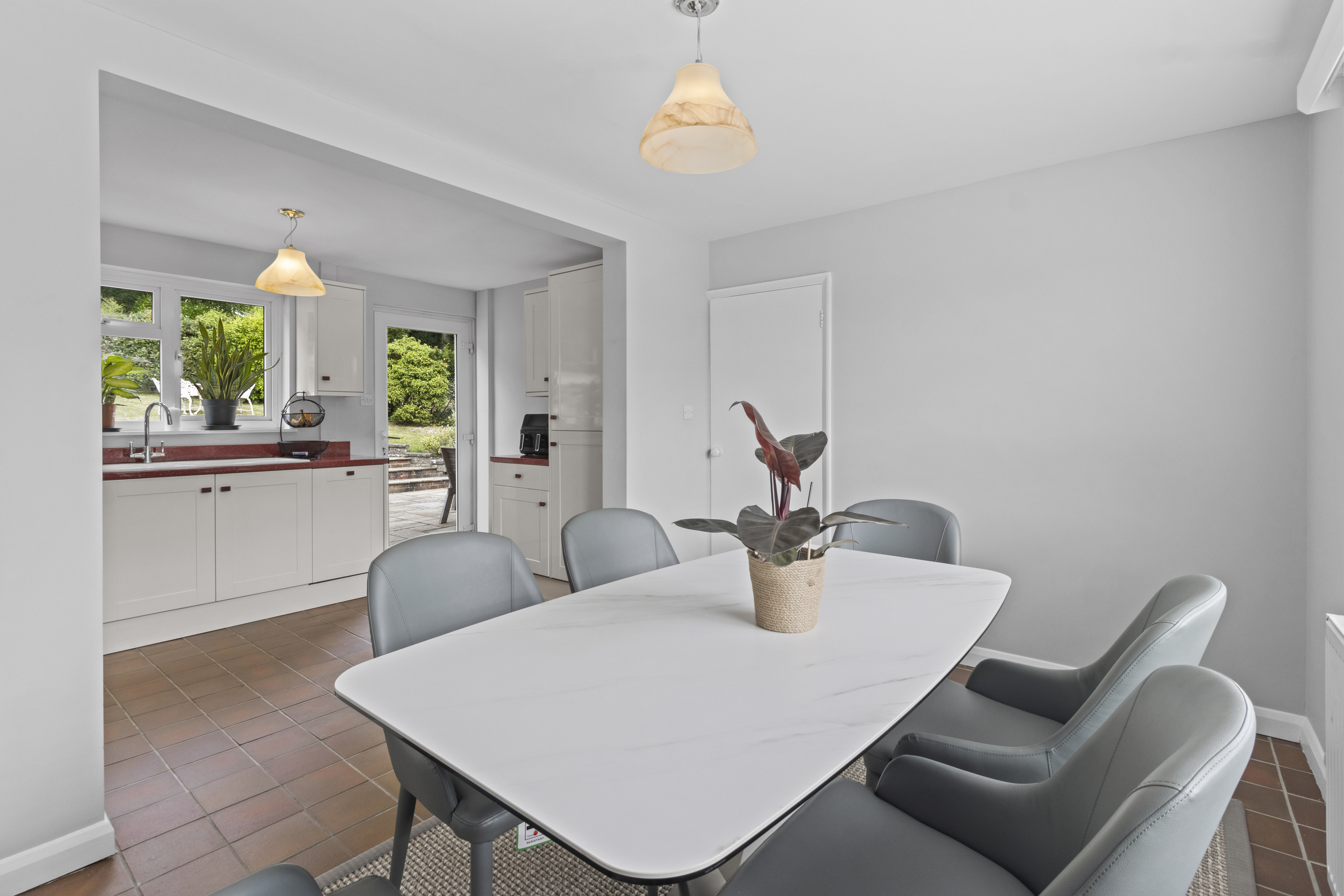 Upon entering, you are greeted by a spacious entrance hall that provides access to the ground floor accommodation and stairs to the first floor. To the right lies the impressive triple-aspect living room, filled with natural light and enjoying views to the front, side, and rear. A feature inset wood burner creates a cosy focal point, while double glazed doors open directly onto the rear garden, seamlessly linking indoor and outdoor living.