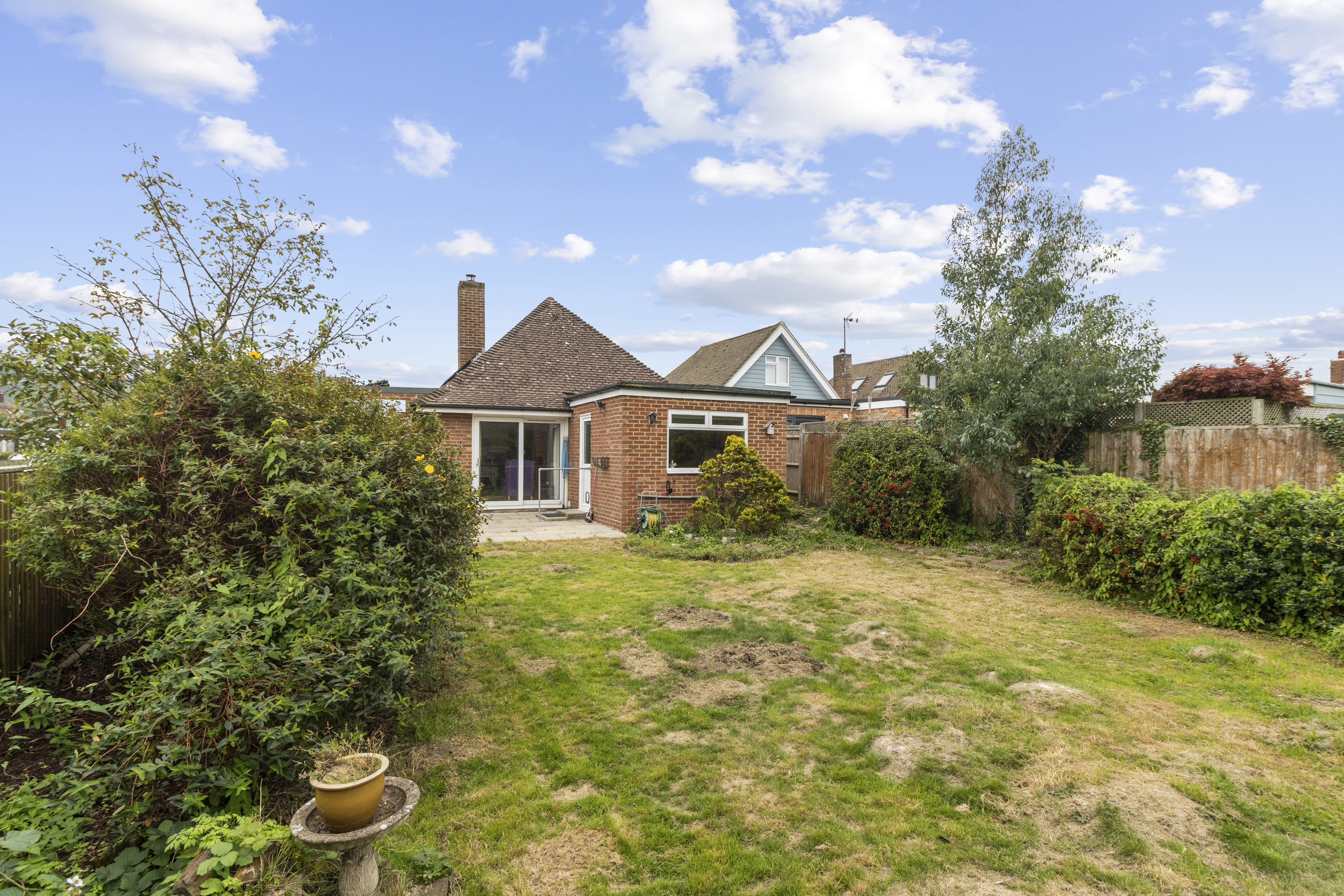 The rear garden is a real highlight – fully enclosed and offering a good degree of privacy. Immediately adjoining the bungalow is a paved patio area, ideal for outdoor seating and dining, which leads onto a neatly kept lawn with established shrub borders. This attractive and manageable space is well-suited for relaxation, gardening, or entertaining.