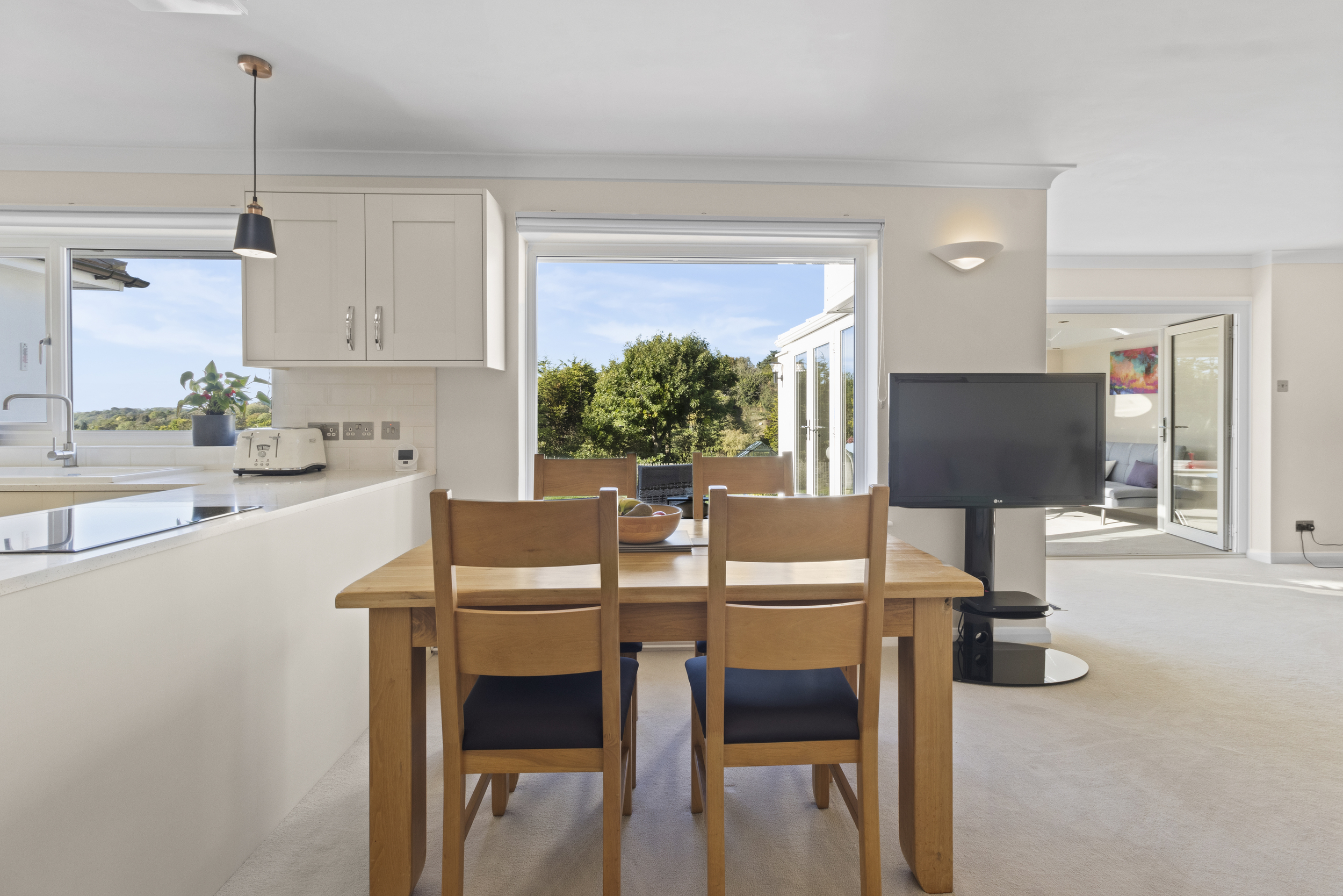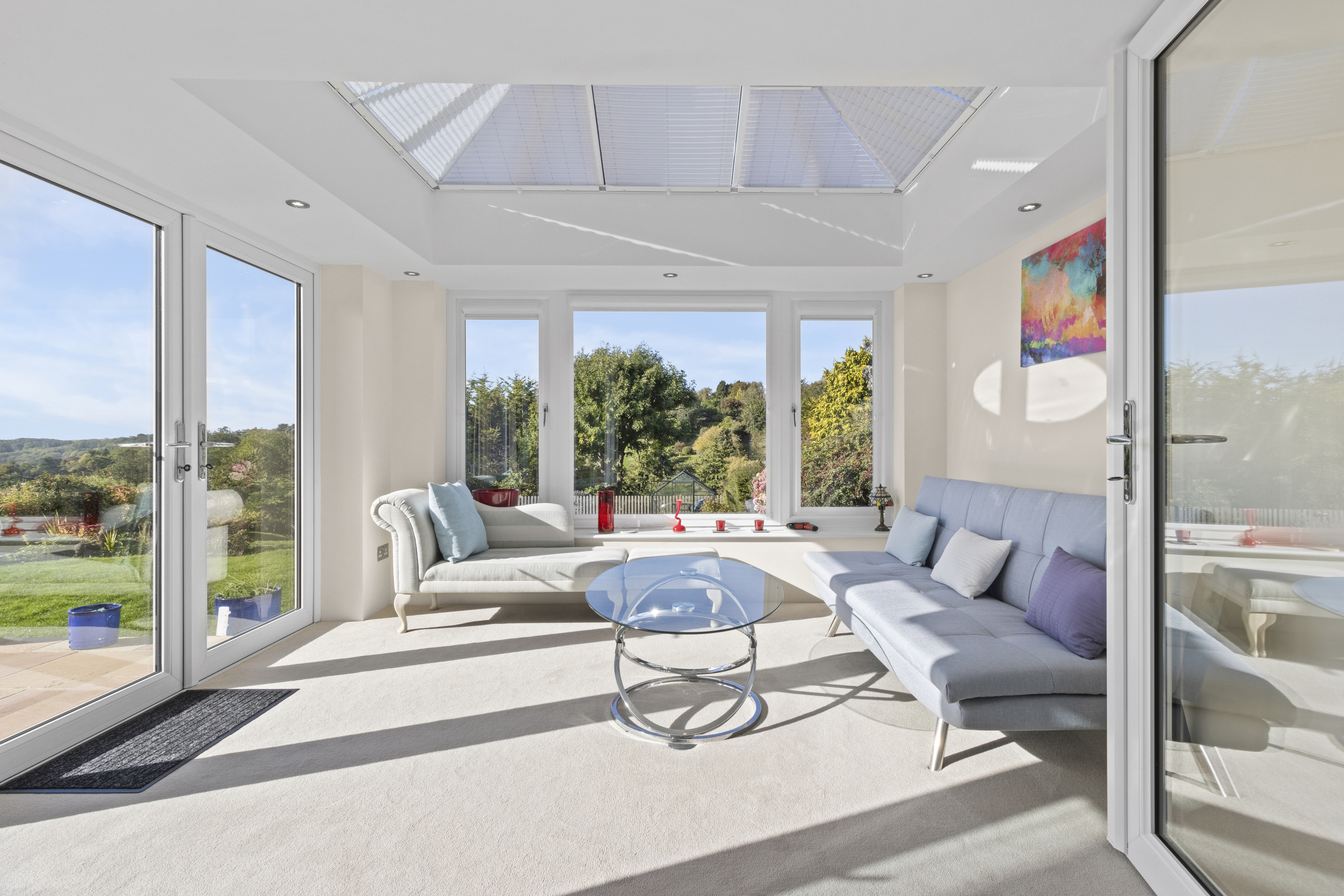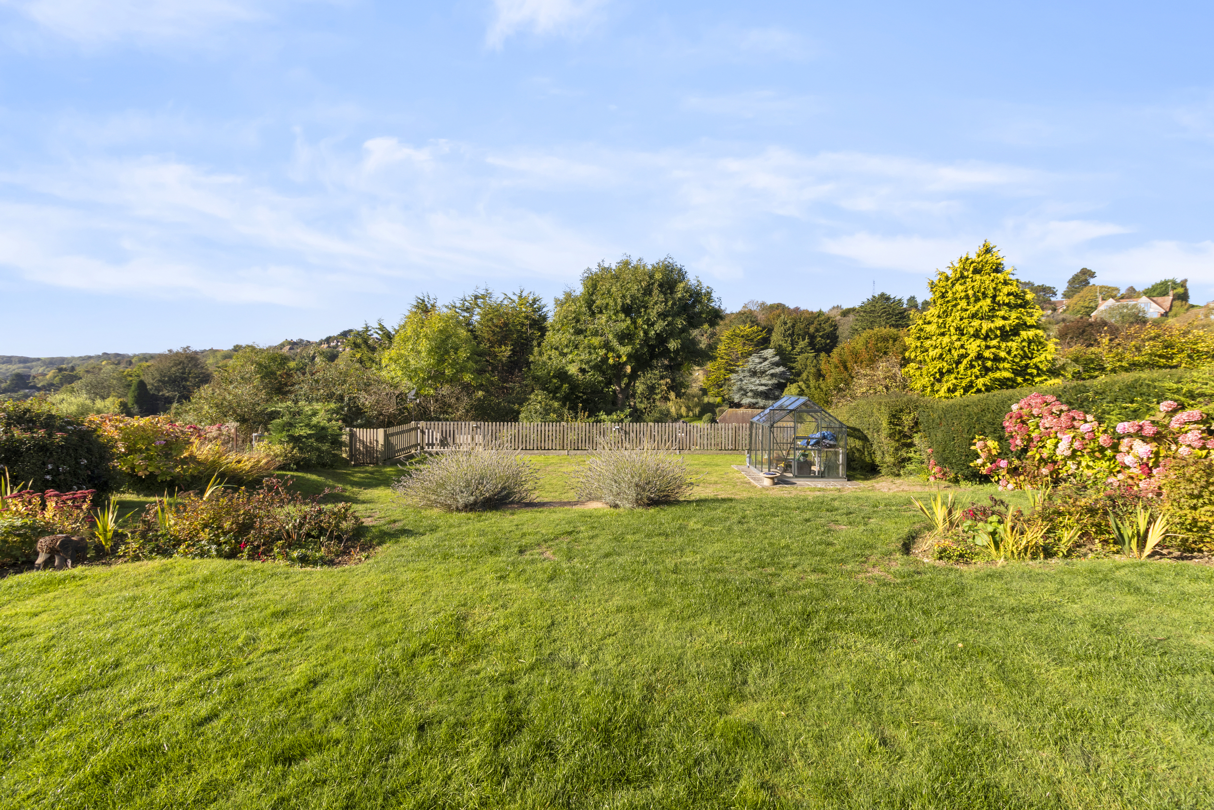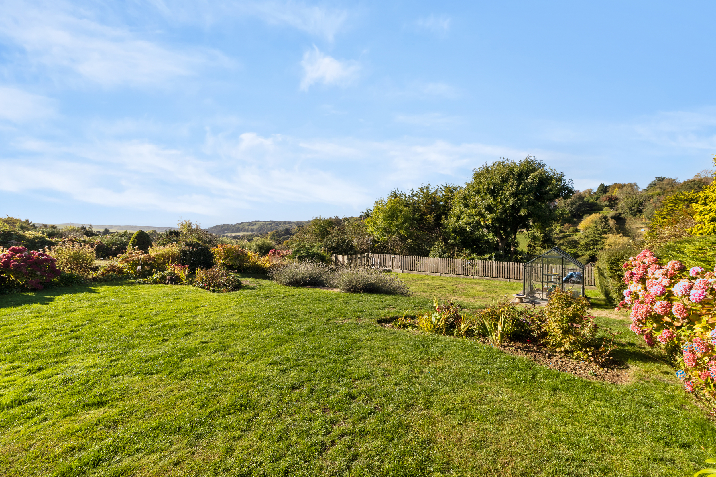 The rear garden is one of the property’s true highlights. Rarely does a home combine such a level plot with panoramic views across open countryside.