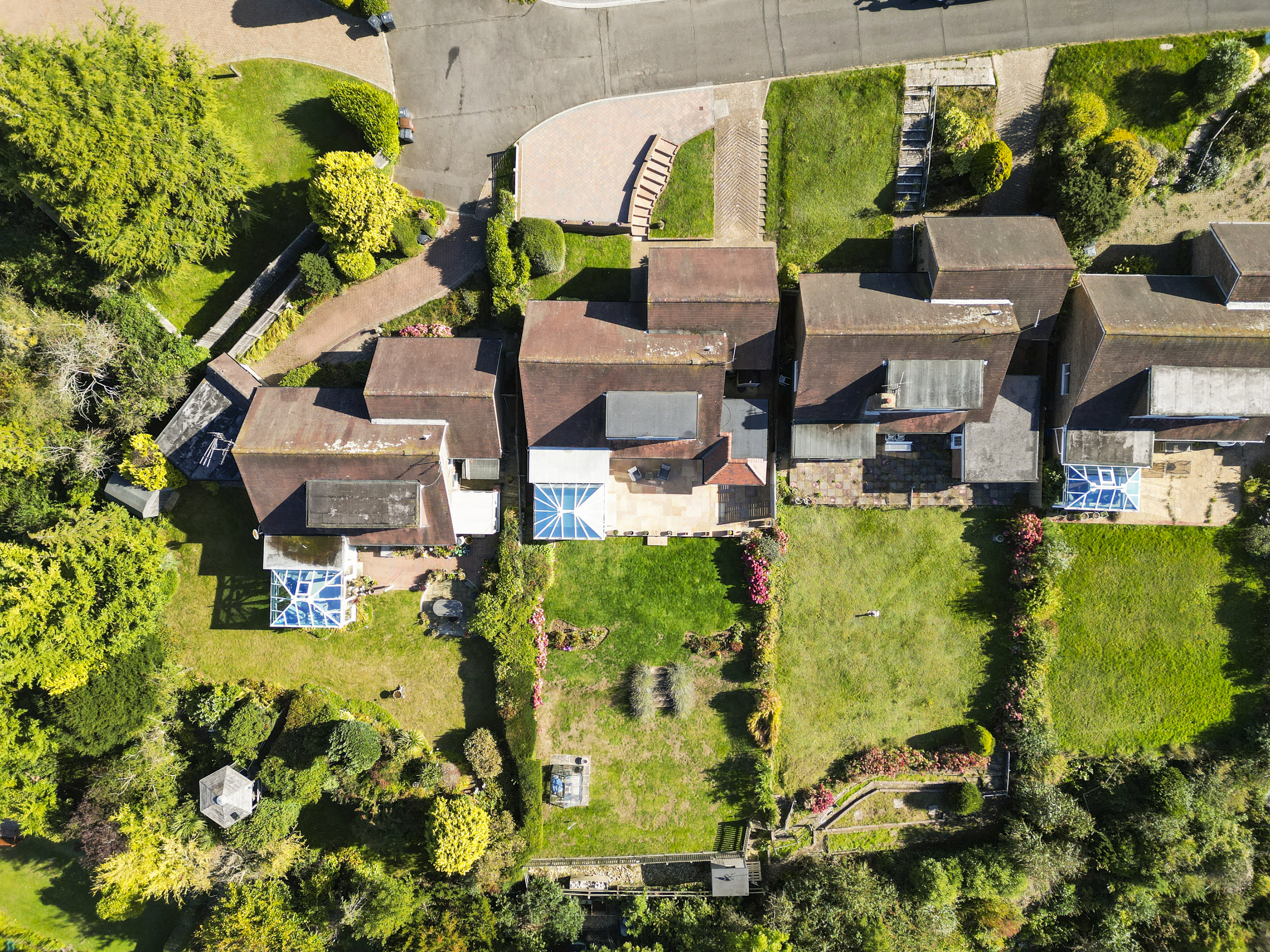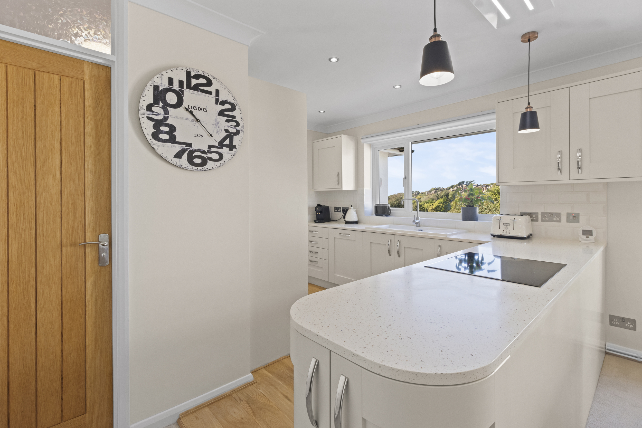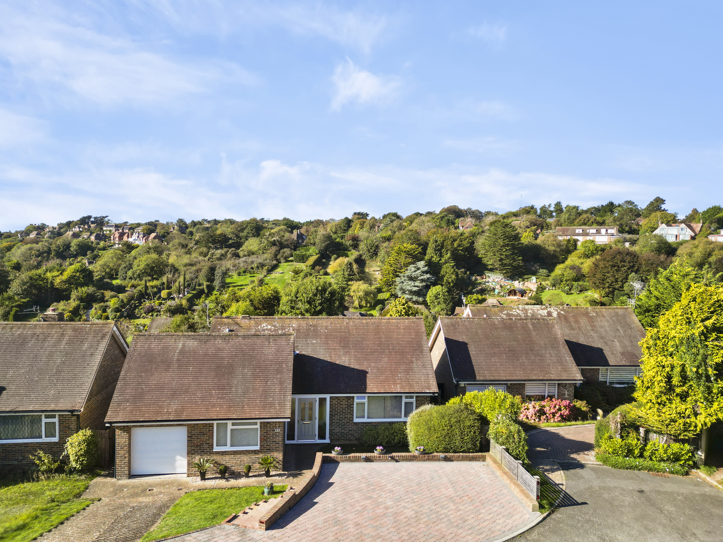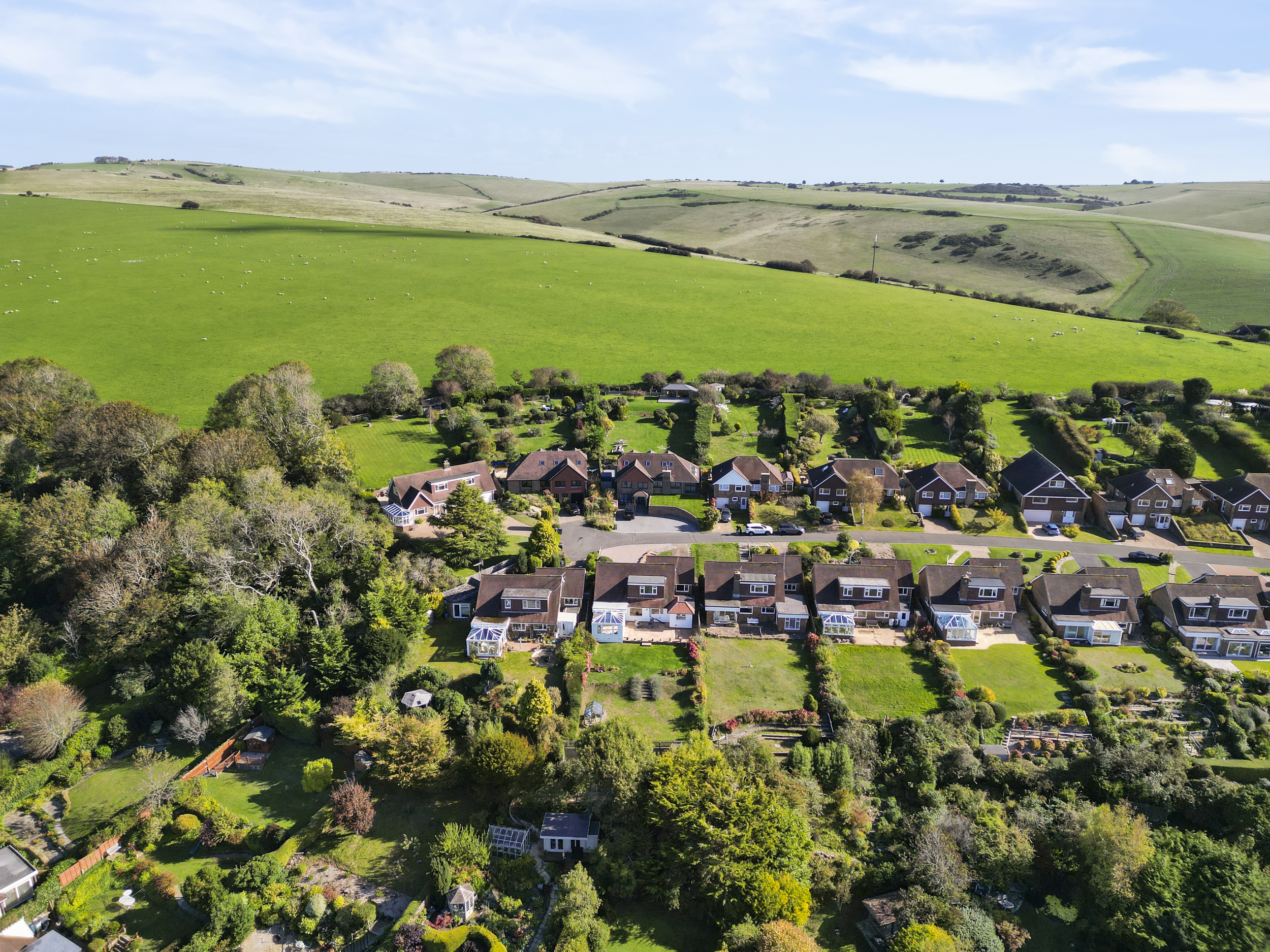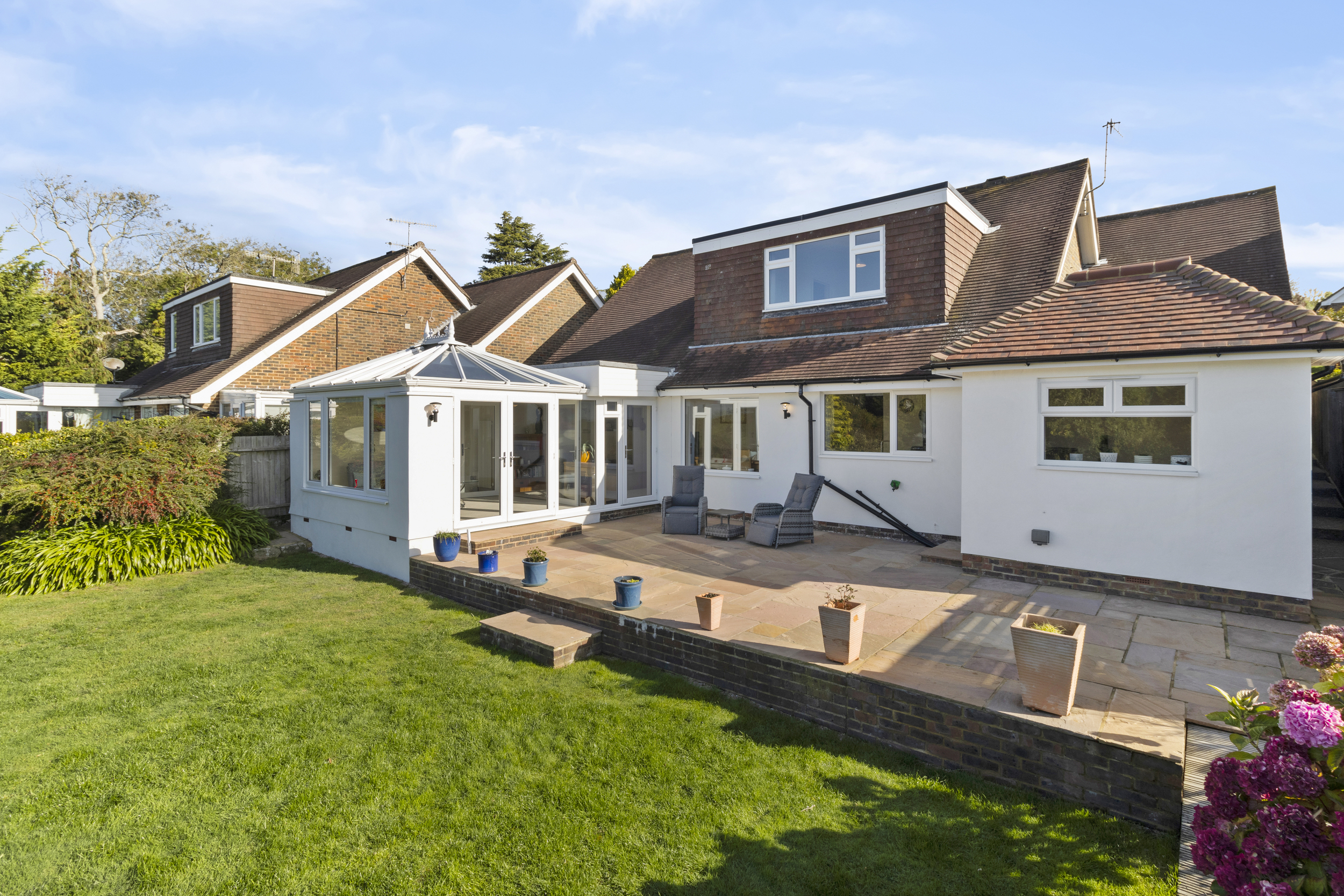 Enviably located on the south-westerly side of Michel Dene Road, the property occupies one of the finest plots in the area — a position that captures stunning elevated views across the surrounding downland countryside and offers glimpses of the sea beyond. The home’s southerly aspect ensures an abundance of natural light throughout the day, while its level rear garden makes it particularly appealing — a rarity in this elevated coastal setting.