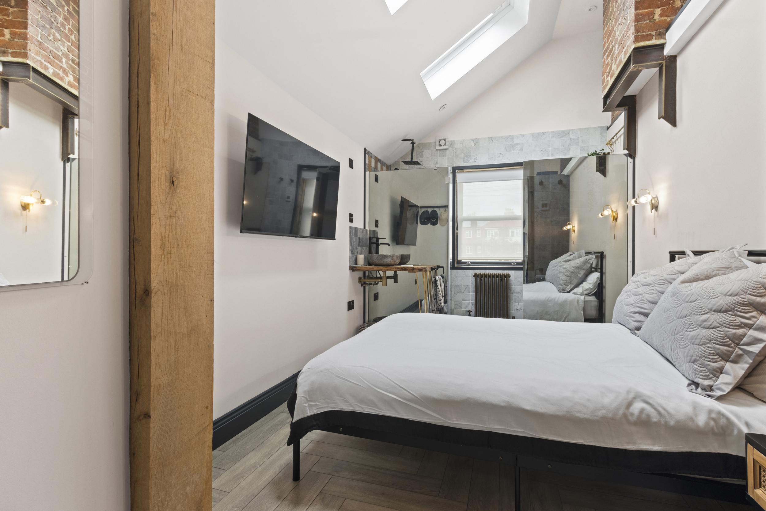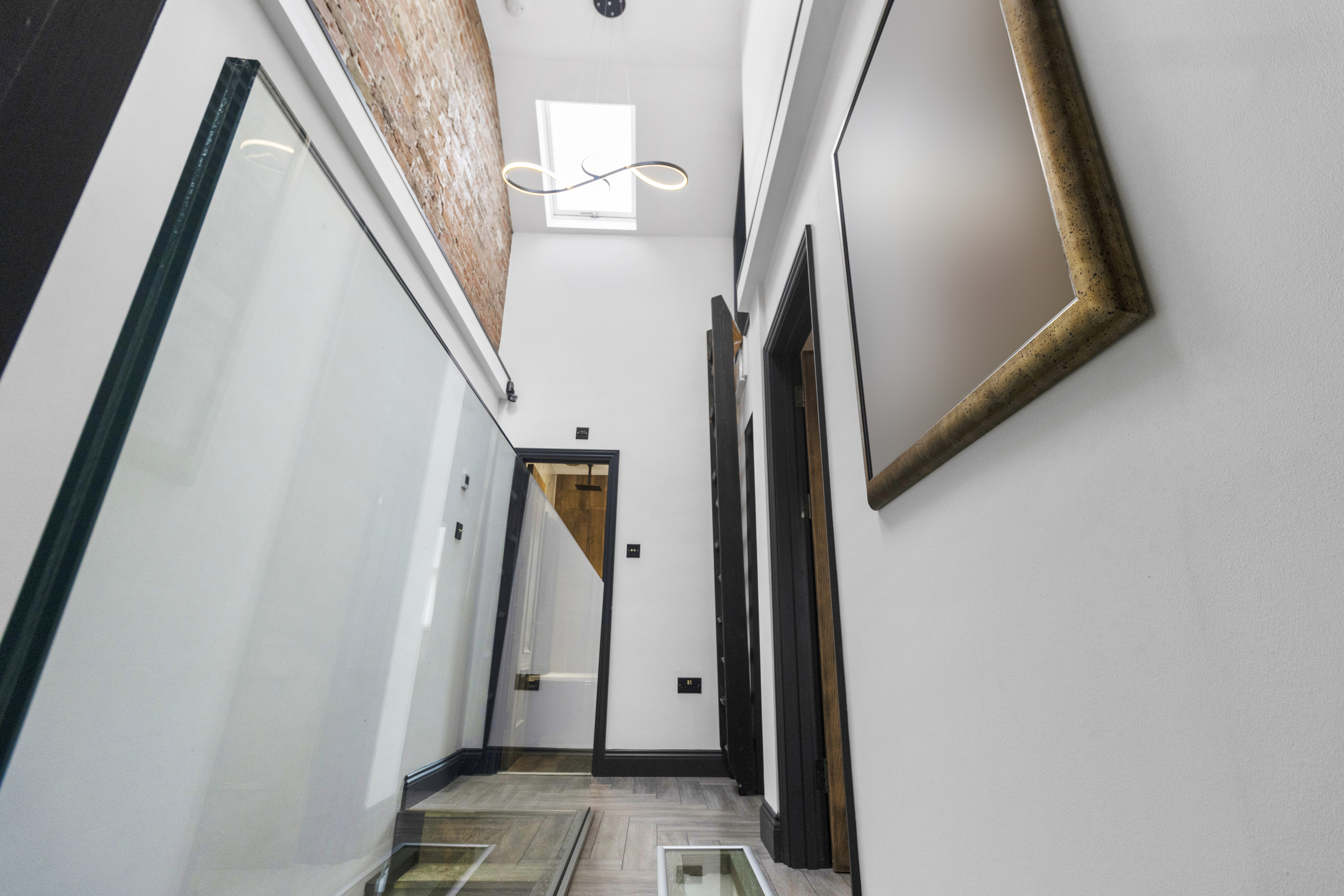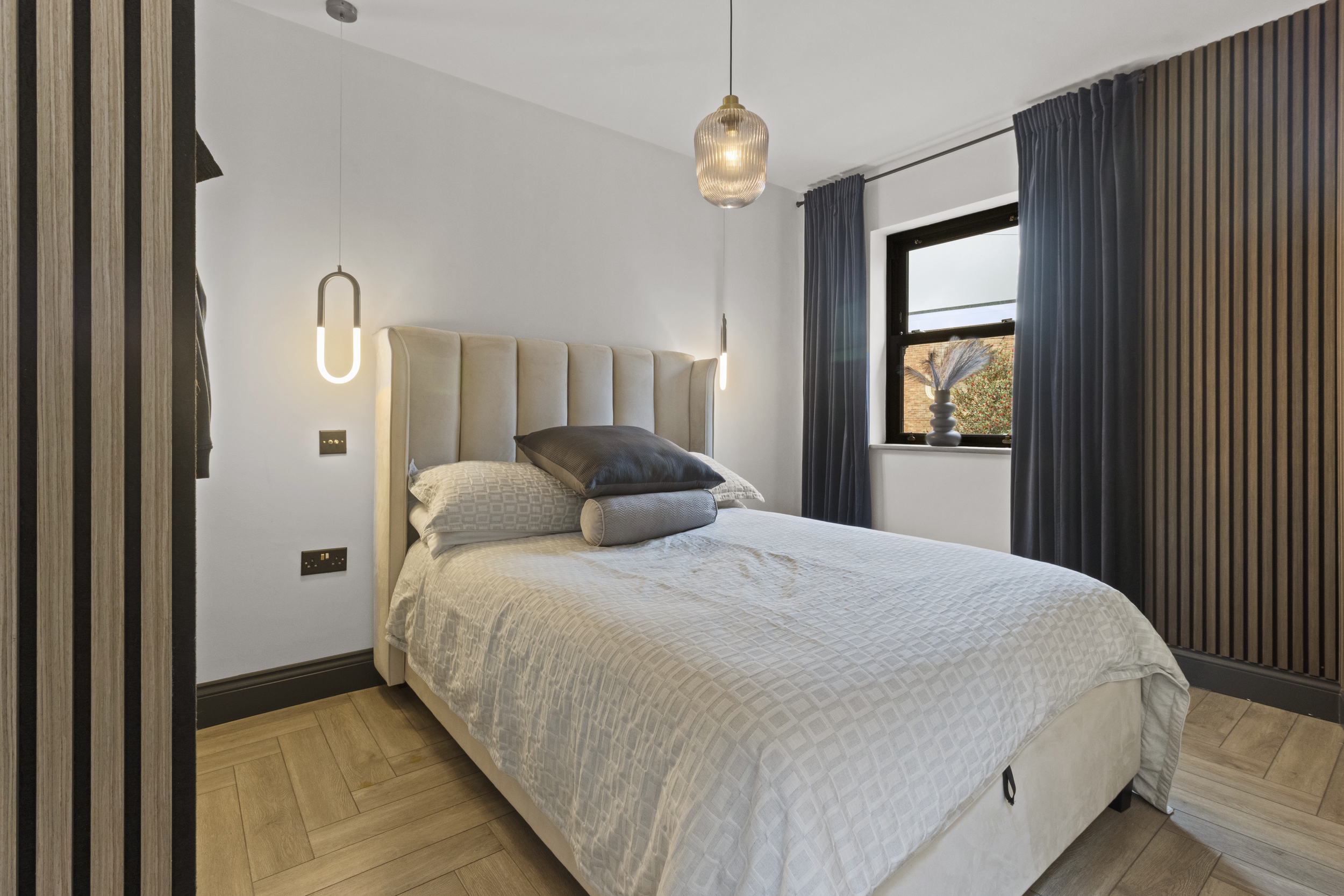 The upstairs accommodation is equally impressive, with three well-proportioned double bedrooms, each fitted with bespoke wardrobes to maximise storage and maintain a clutter-free aesthetic.
